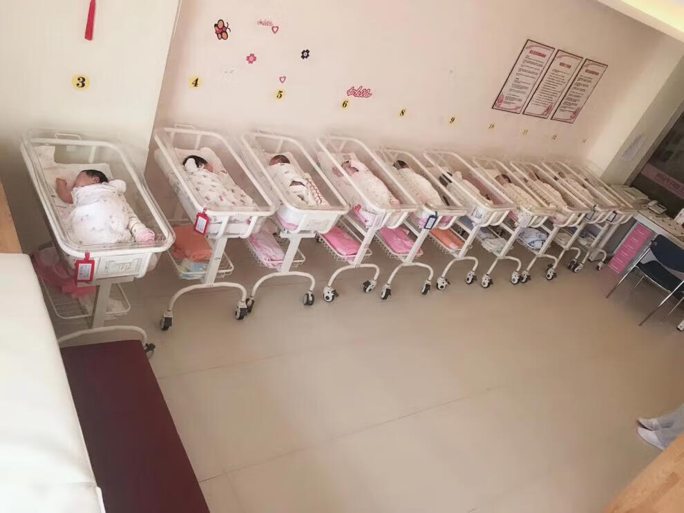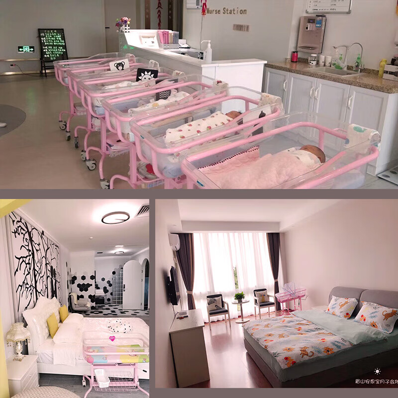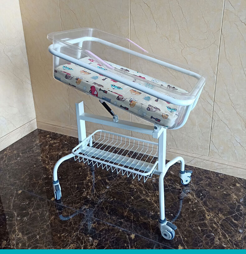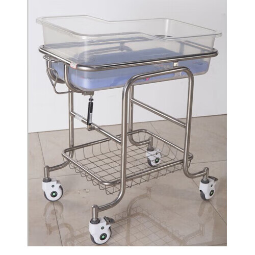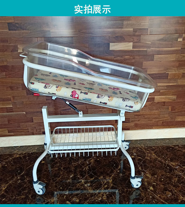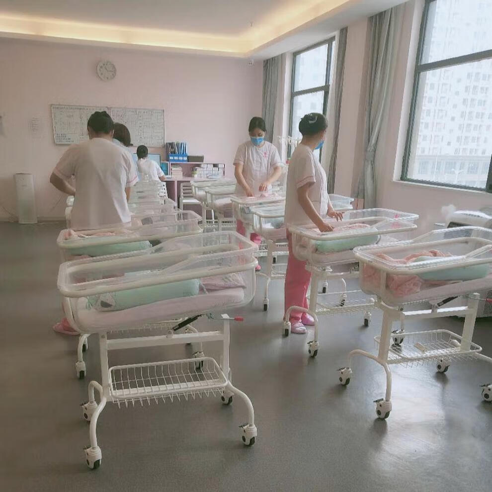 Confinement center crib anti-vomiting newborn crib obstetrical care bed abs mobile medical home stroller pink high-profile wheels plus brown silk mattress (with mosquito net)