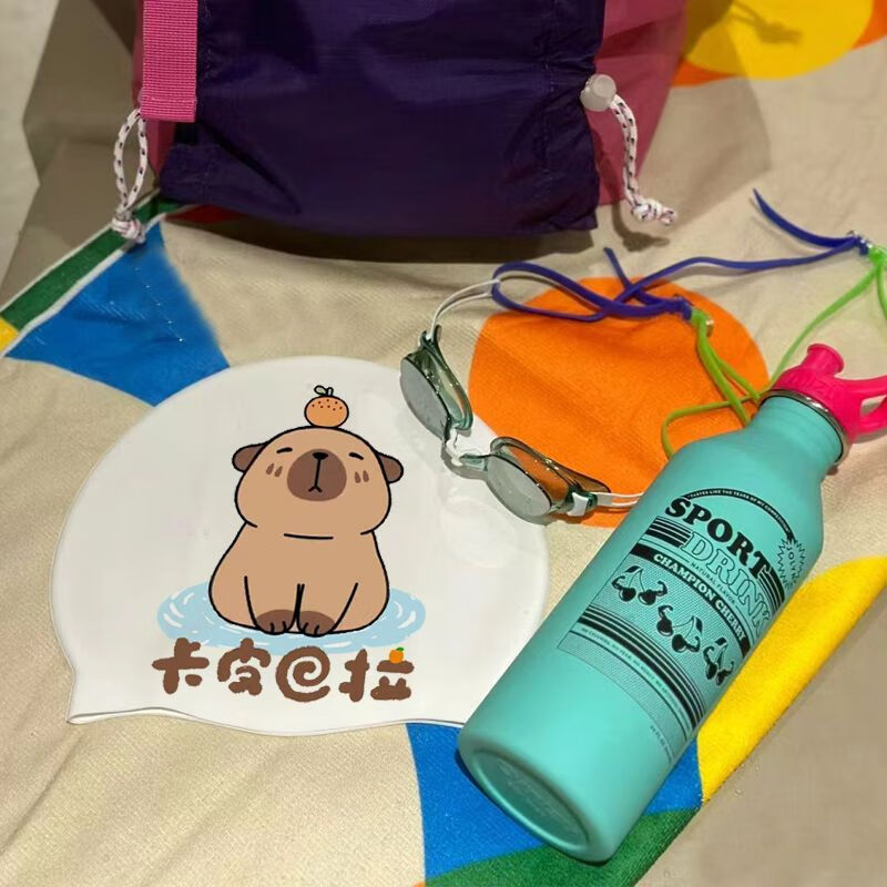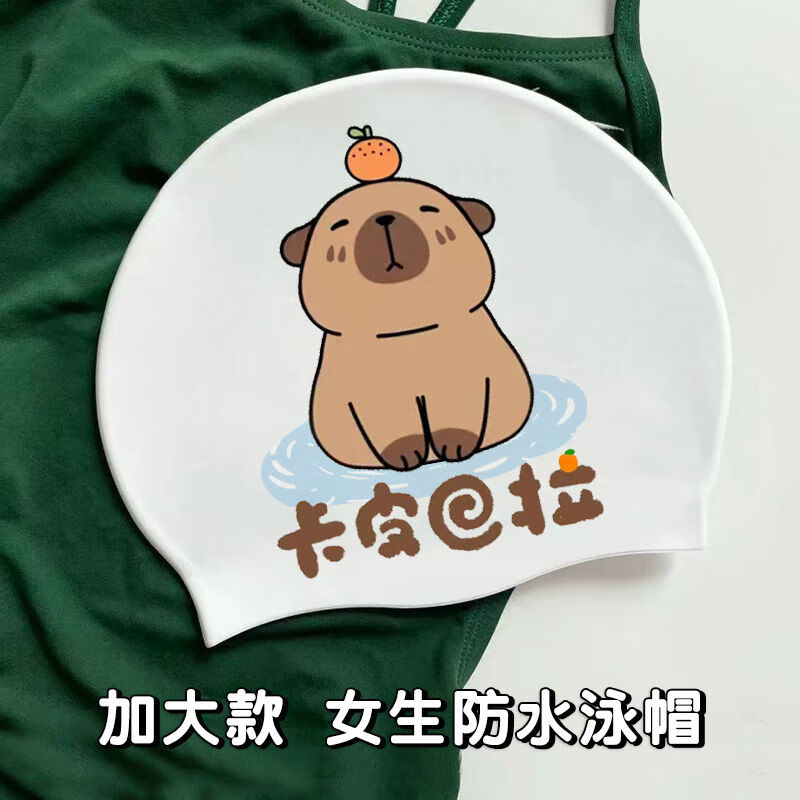 Zailu Bu Le Head Kapi Bara Waterproof Swimming Cap for Girls, Special Oversized Bu Le Head Long Hair Comfortable Silicone Ear Protection Cap Pi Bara Oversized Swim Cap + Nose Clip Earplugs