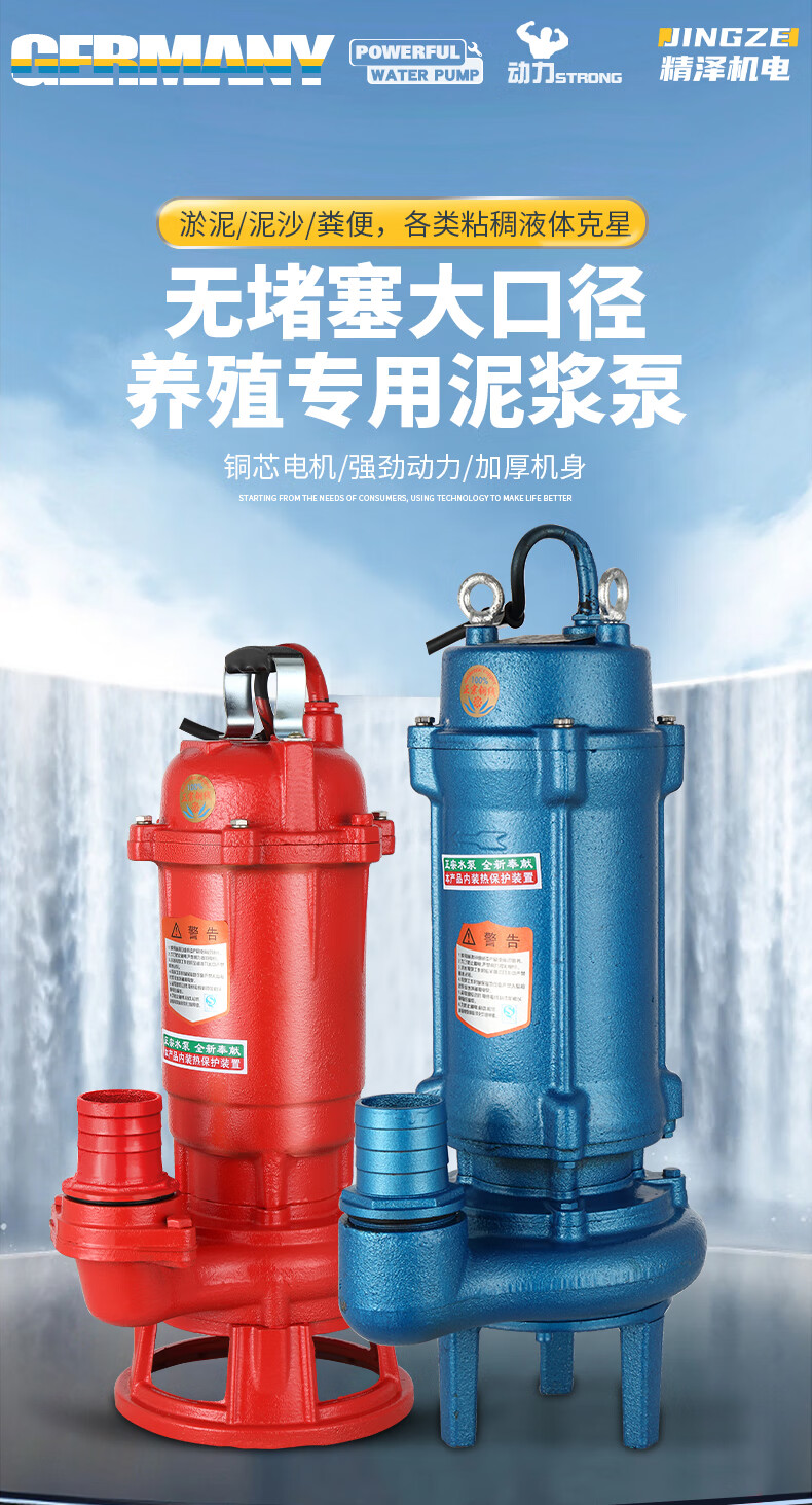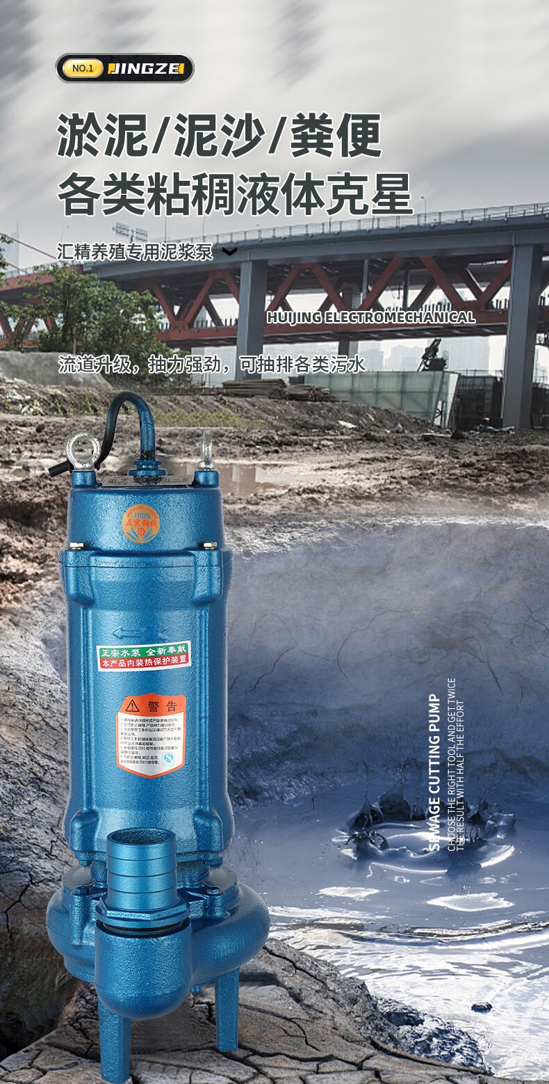 220v household non-clogging sludge pump cutting sewage pump mud pump to pump sediment, pond desilting and pumping feces mud two-phase electric non-clogging mud pump 2500 watts 2 inches