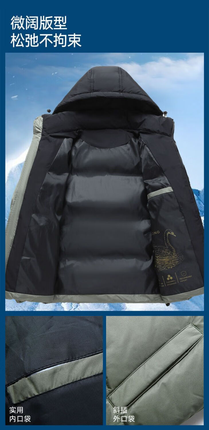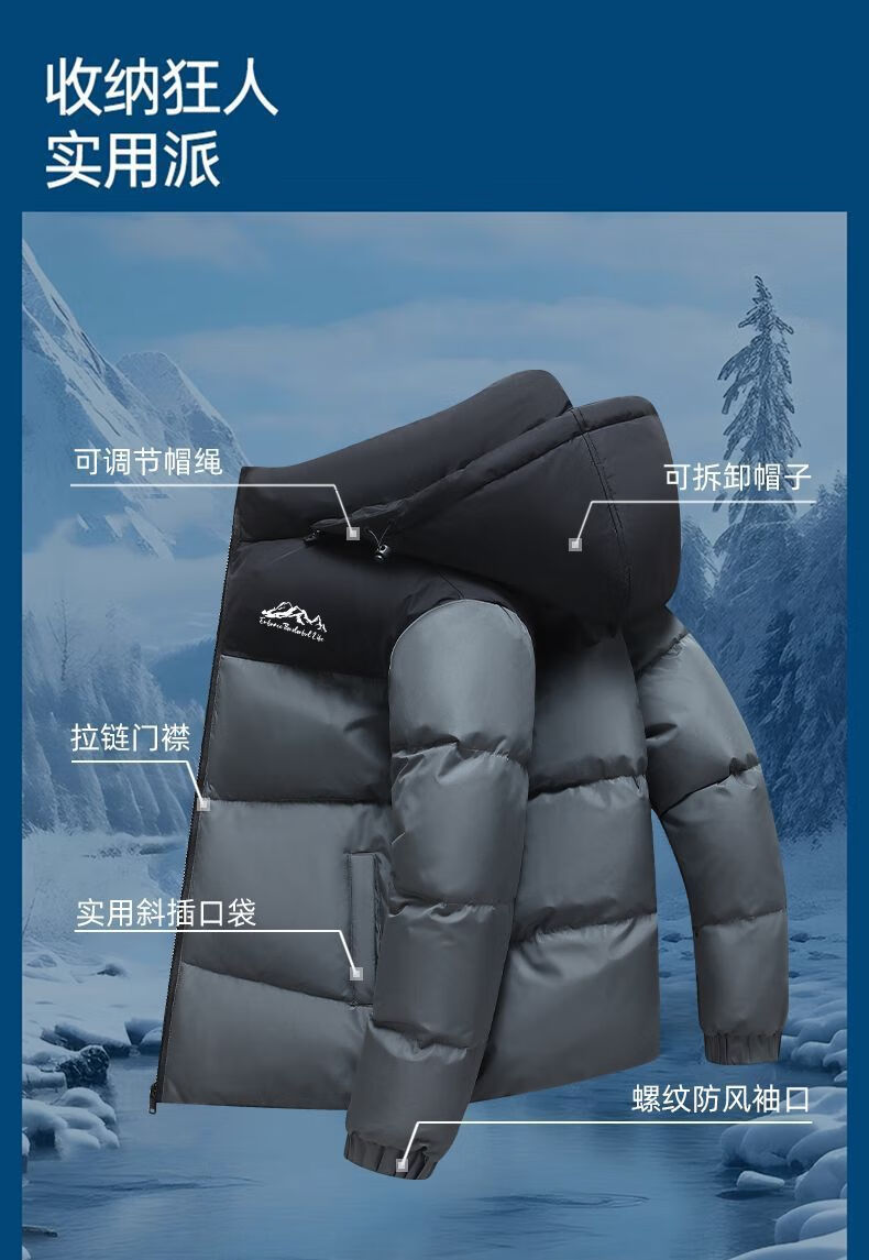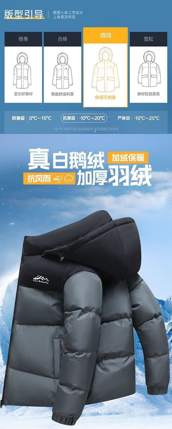ROMON goose down down jacket for men and women in winter thickened 2025 new contrasting color mountaineering jacket to prevent cold and warm bread jacket magic black new national standard goose down XL recommended 135-150Jin Jin equals 0.5 kg