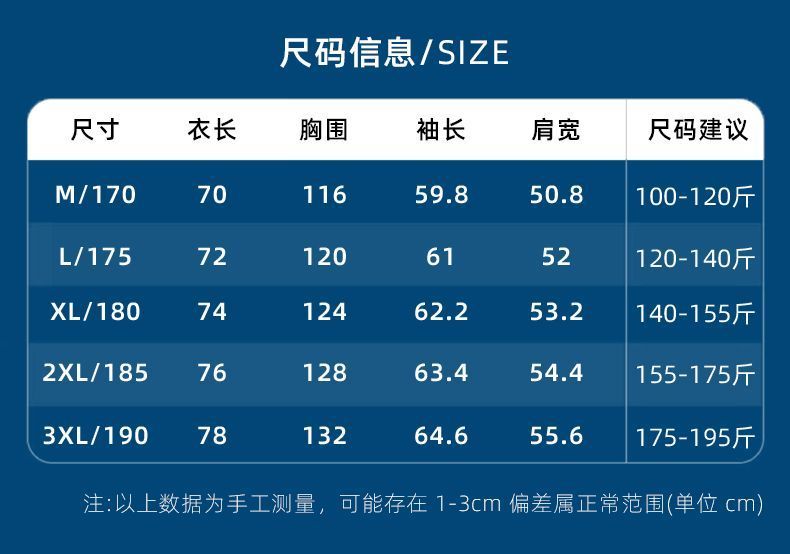 China (cm) 165 / 88-90 170 / 96-98 175 / 108-110 180 / 118-122 185 / 126-130