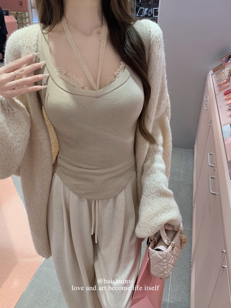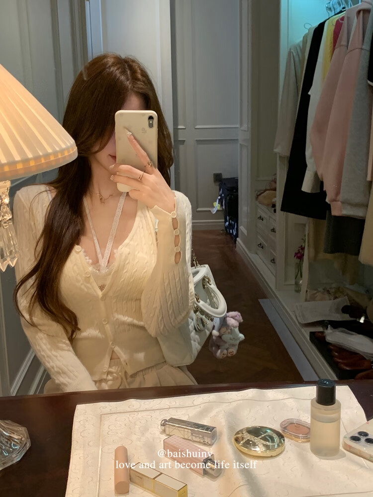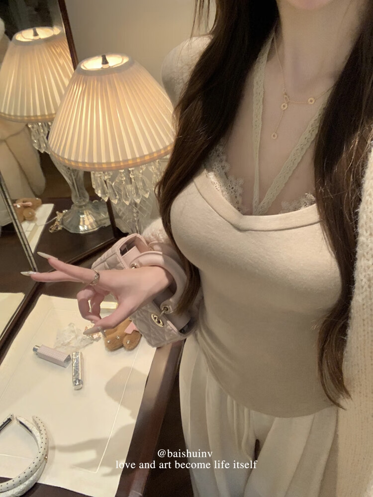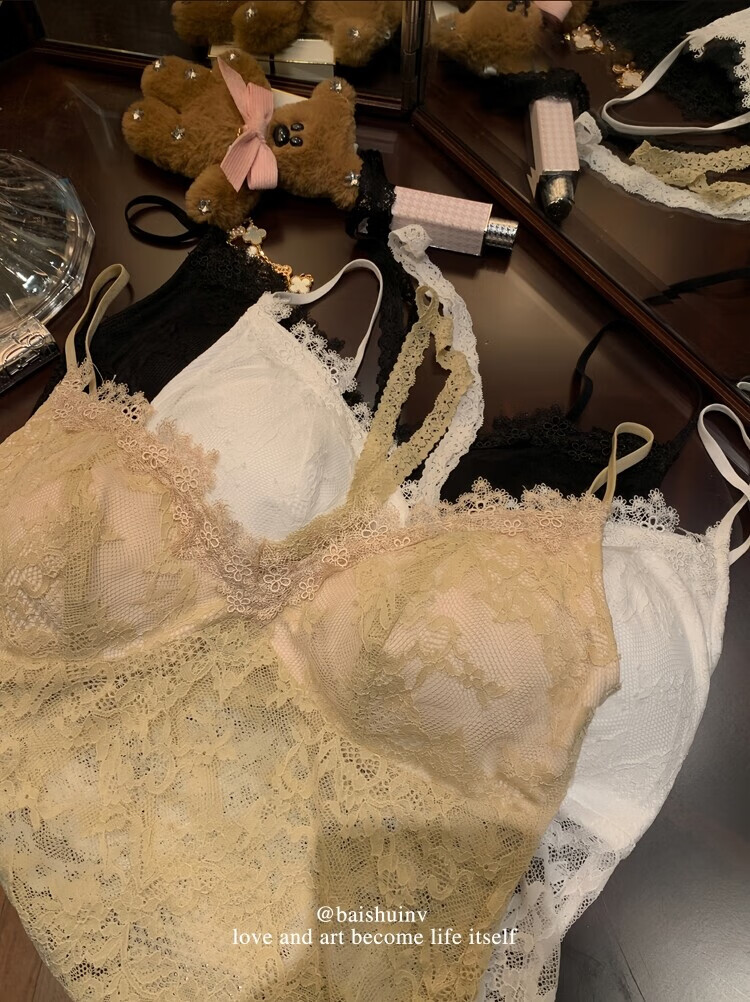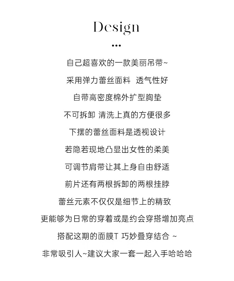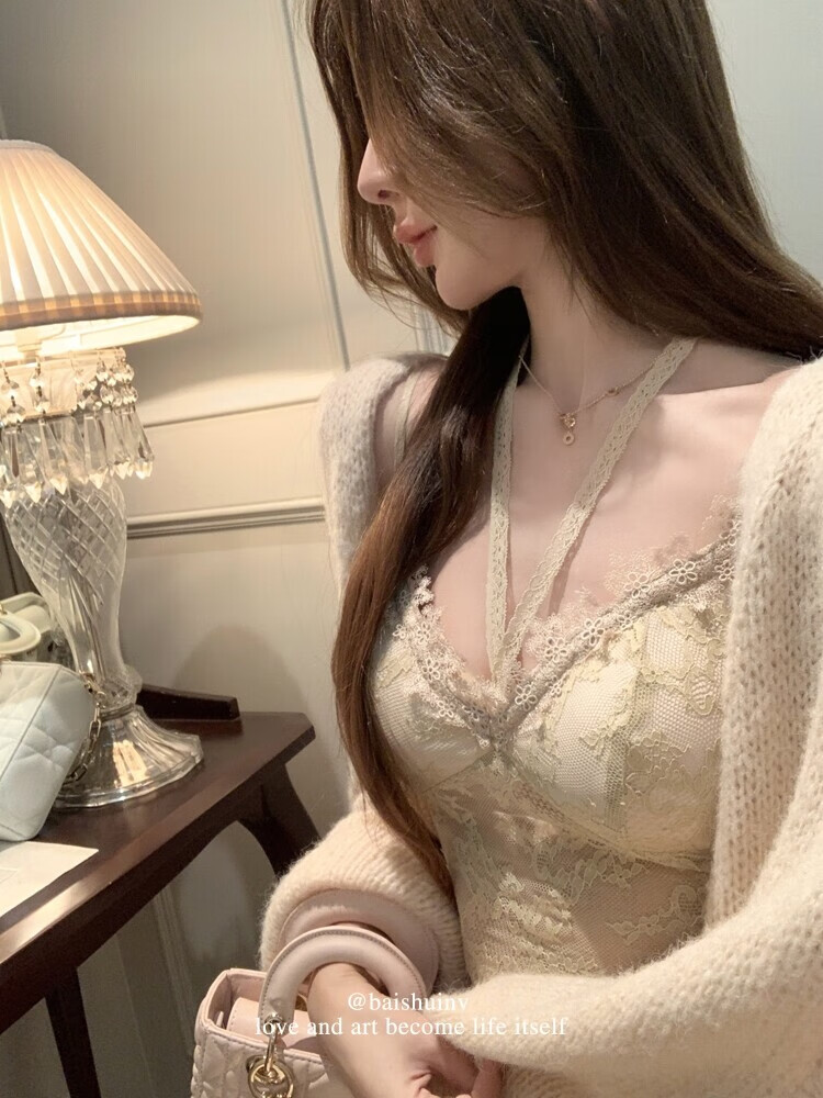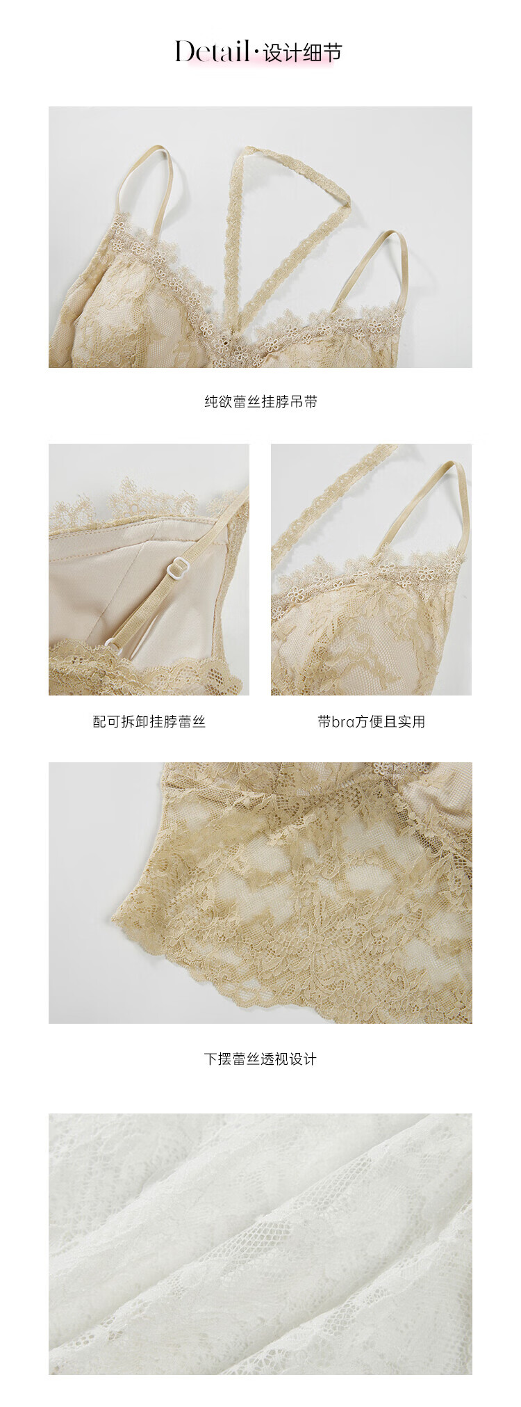嗲嗲 inner wear Christmas wear lace camisole women's lace hollow top with breast pads off-white (first batch) ready stock M