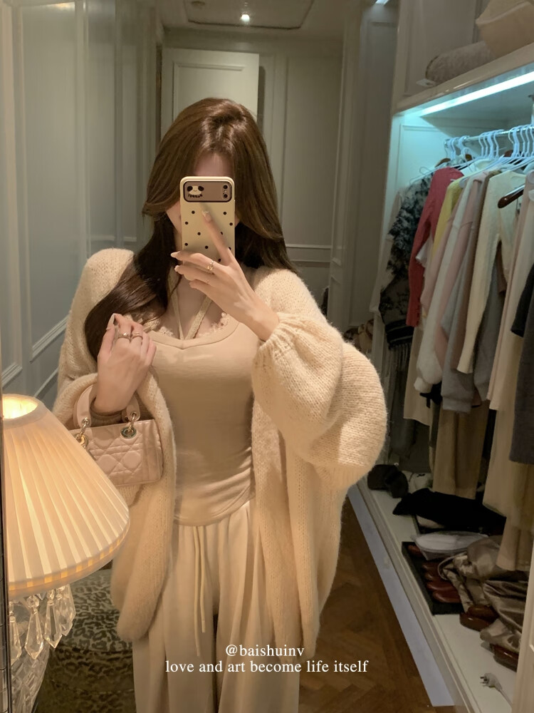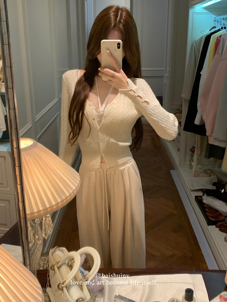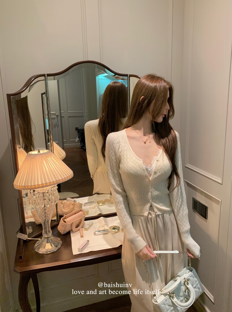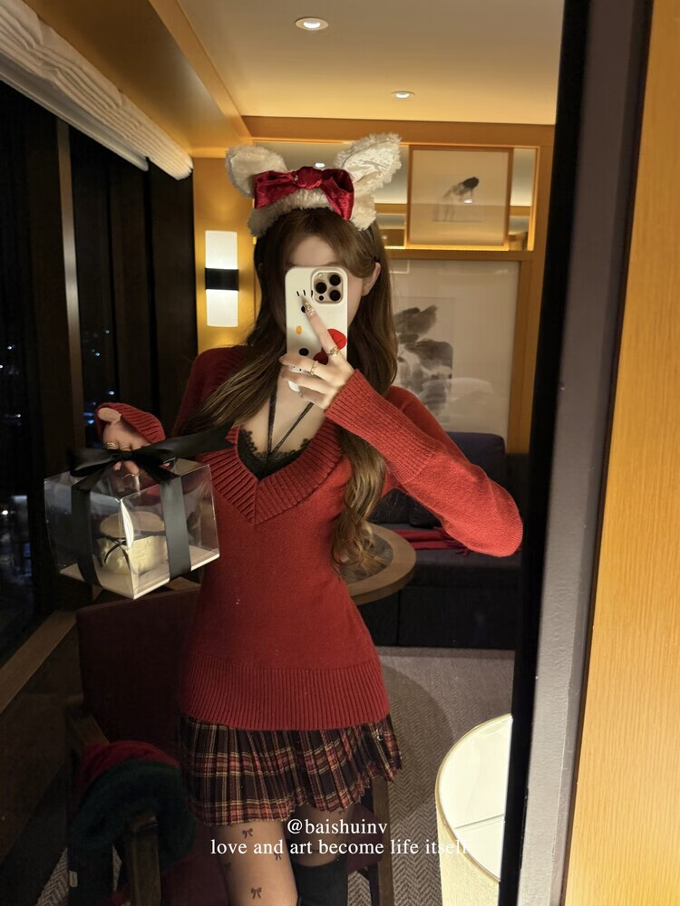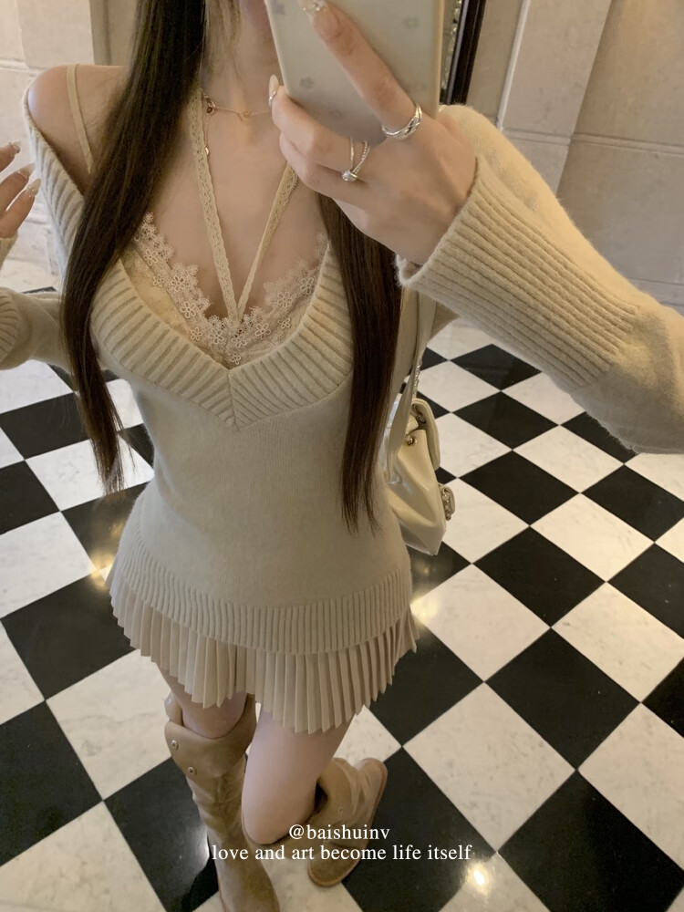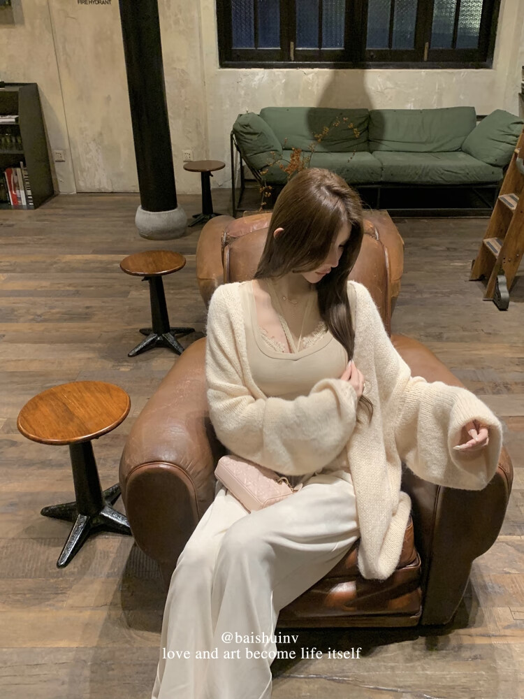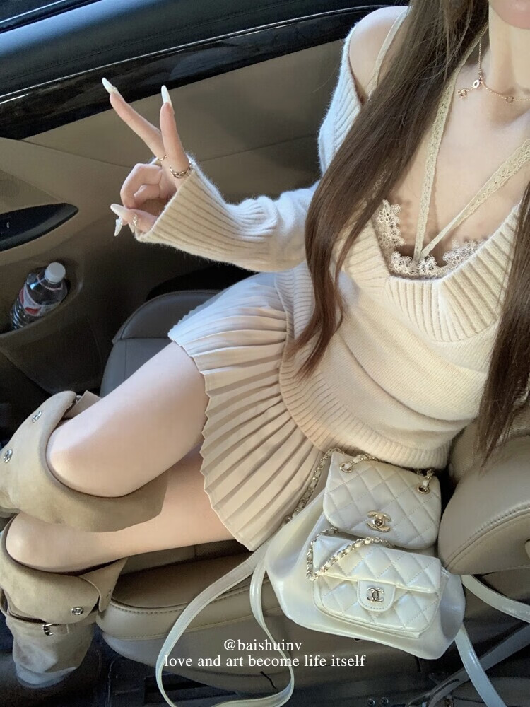 嗲嗲 inner wear Christmas wear lace camisole women's lace hollow top with breast pads off-white (first batch) ready stock M