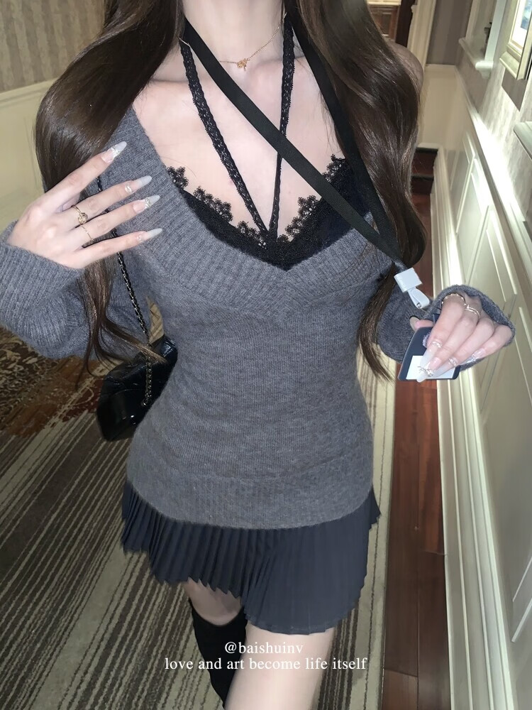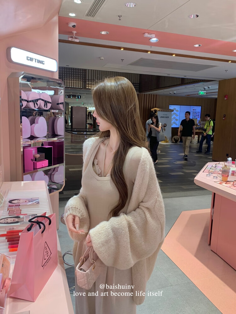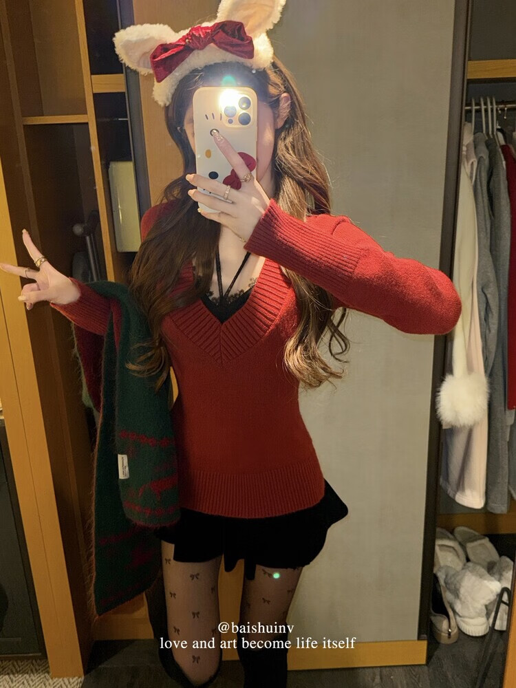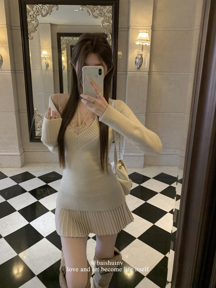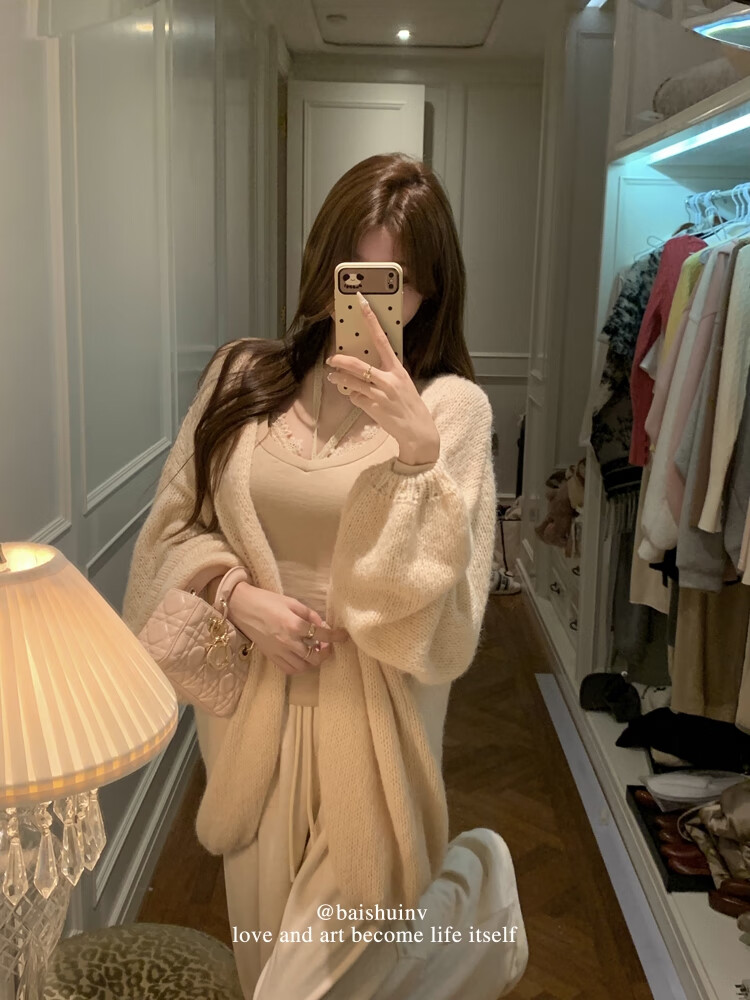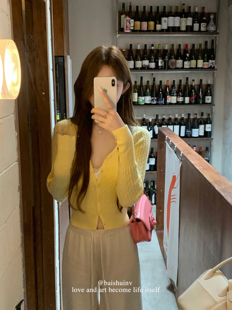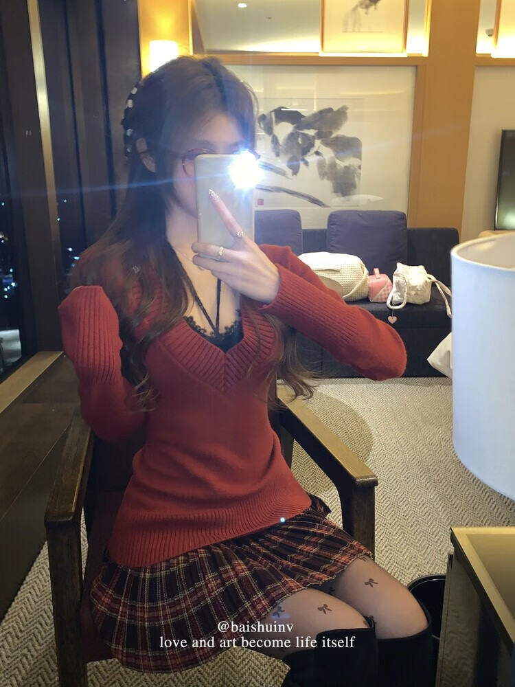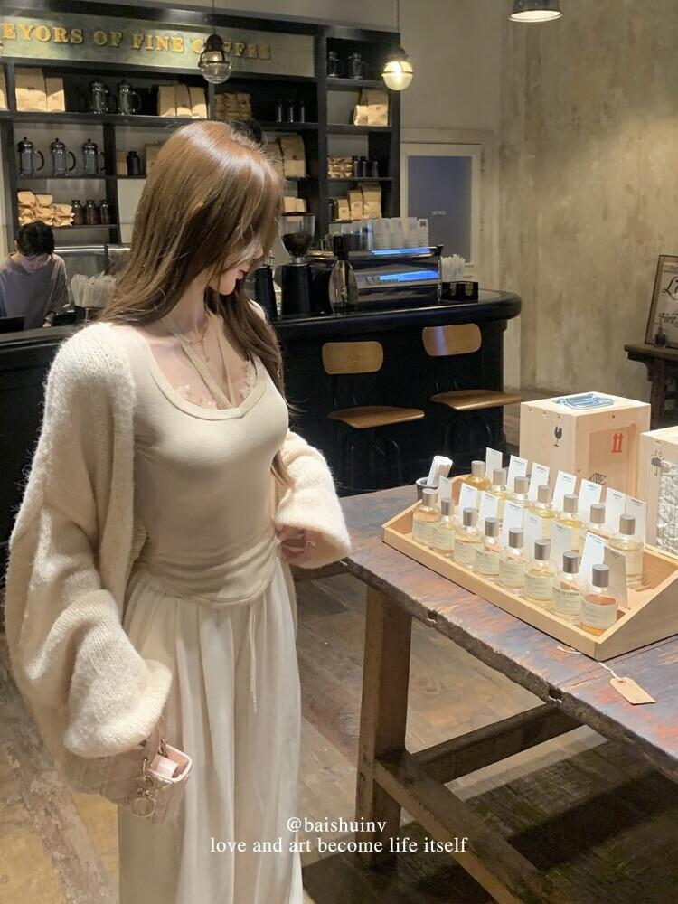 嗲嗲 inner wear Christmas wear lace camisole women's lace hollow top with breast pads off-white (first batch) ready stock M