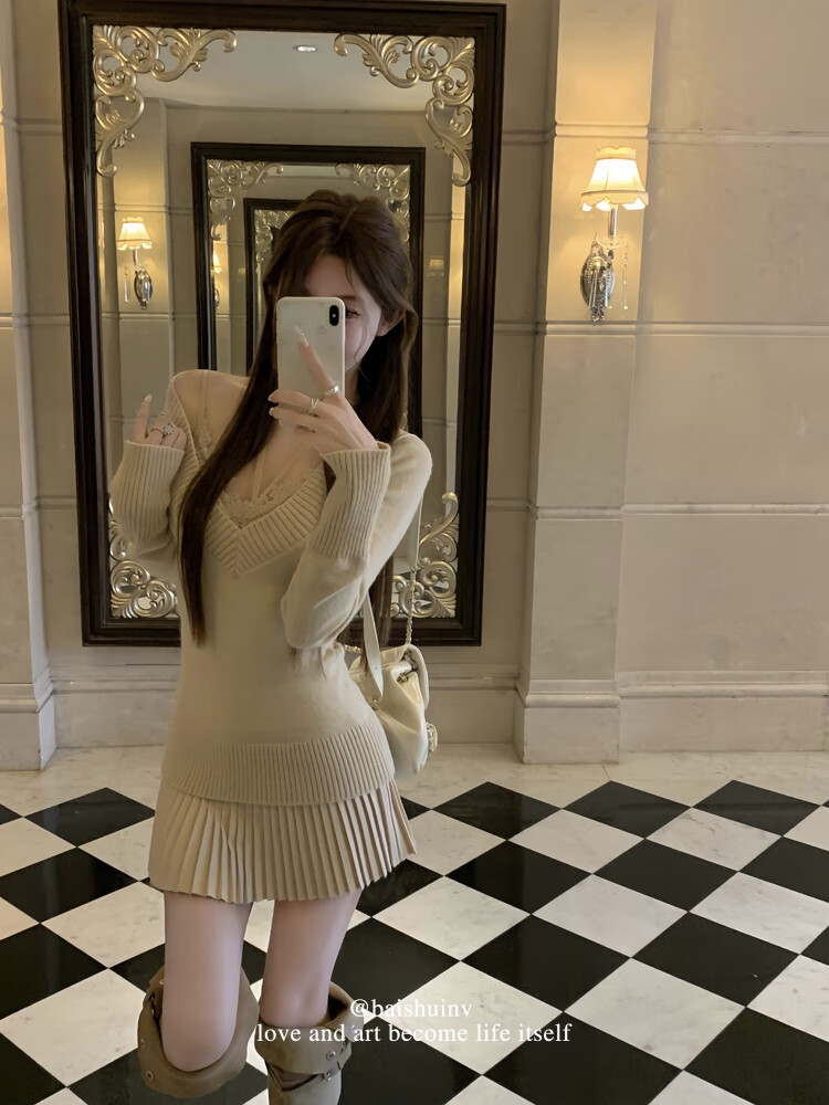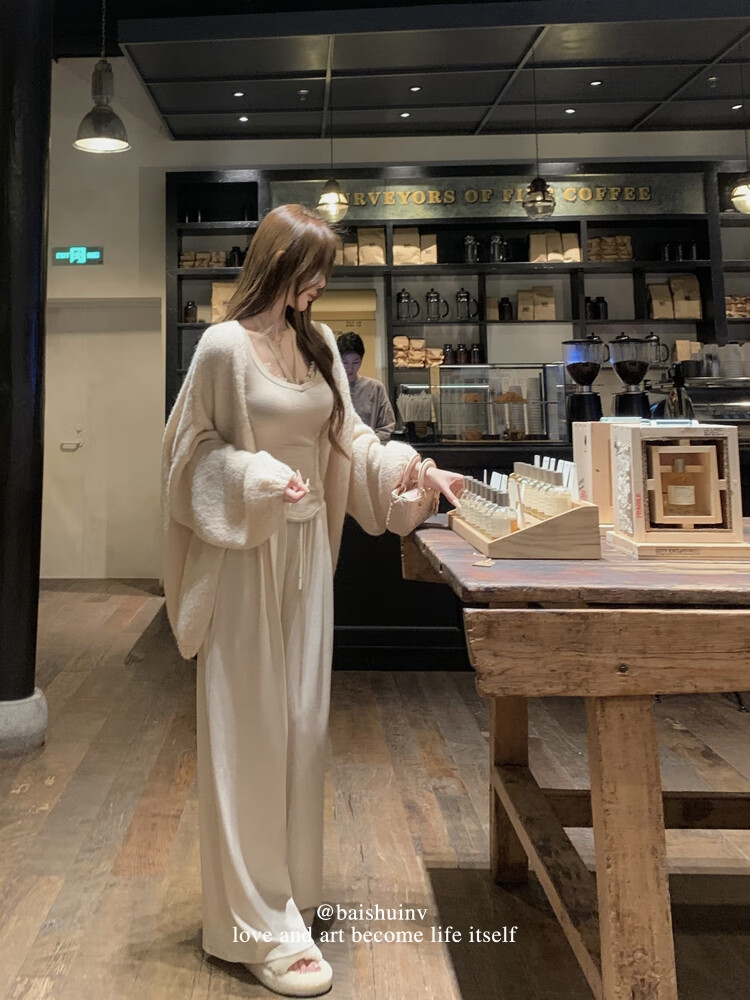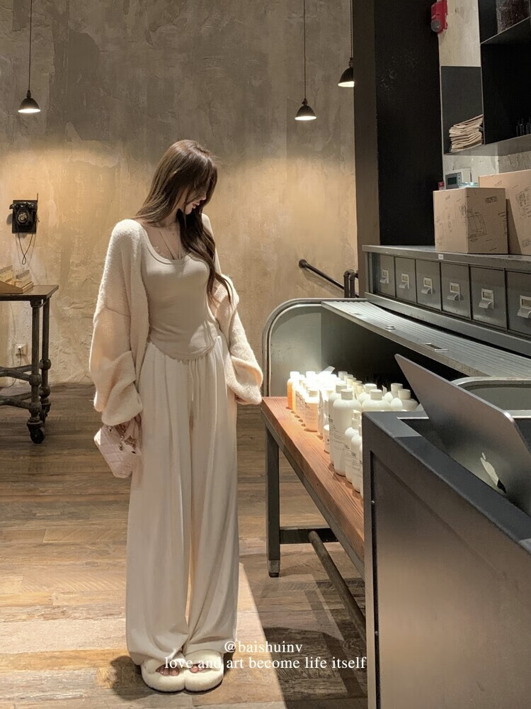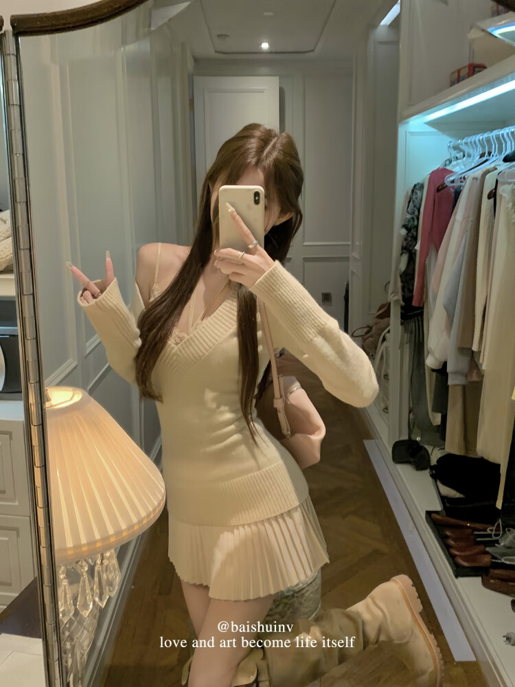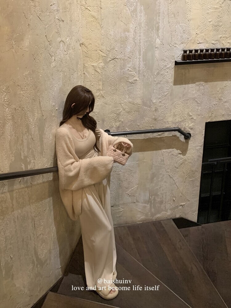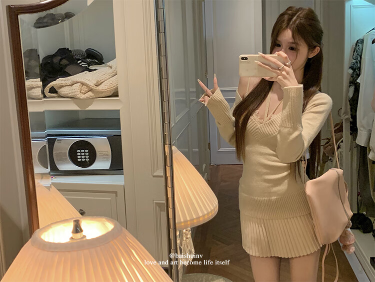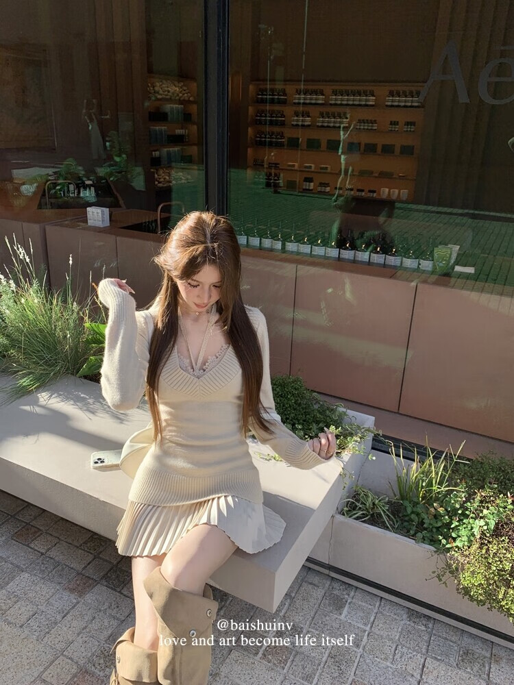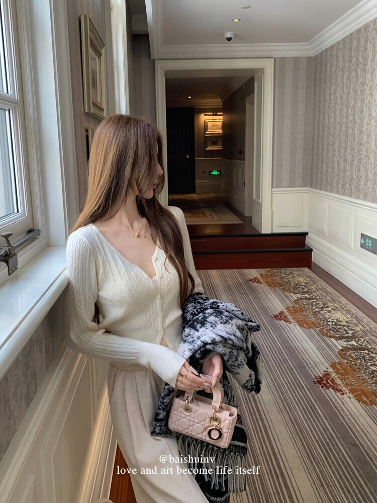 嗲嗲 inner wear Christmas wear lace camisole women's lace hollow top with breast pads off-white (first batch) ready stock M