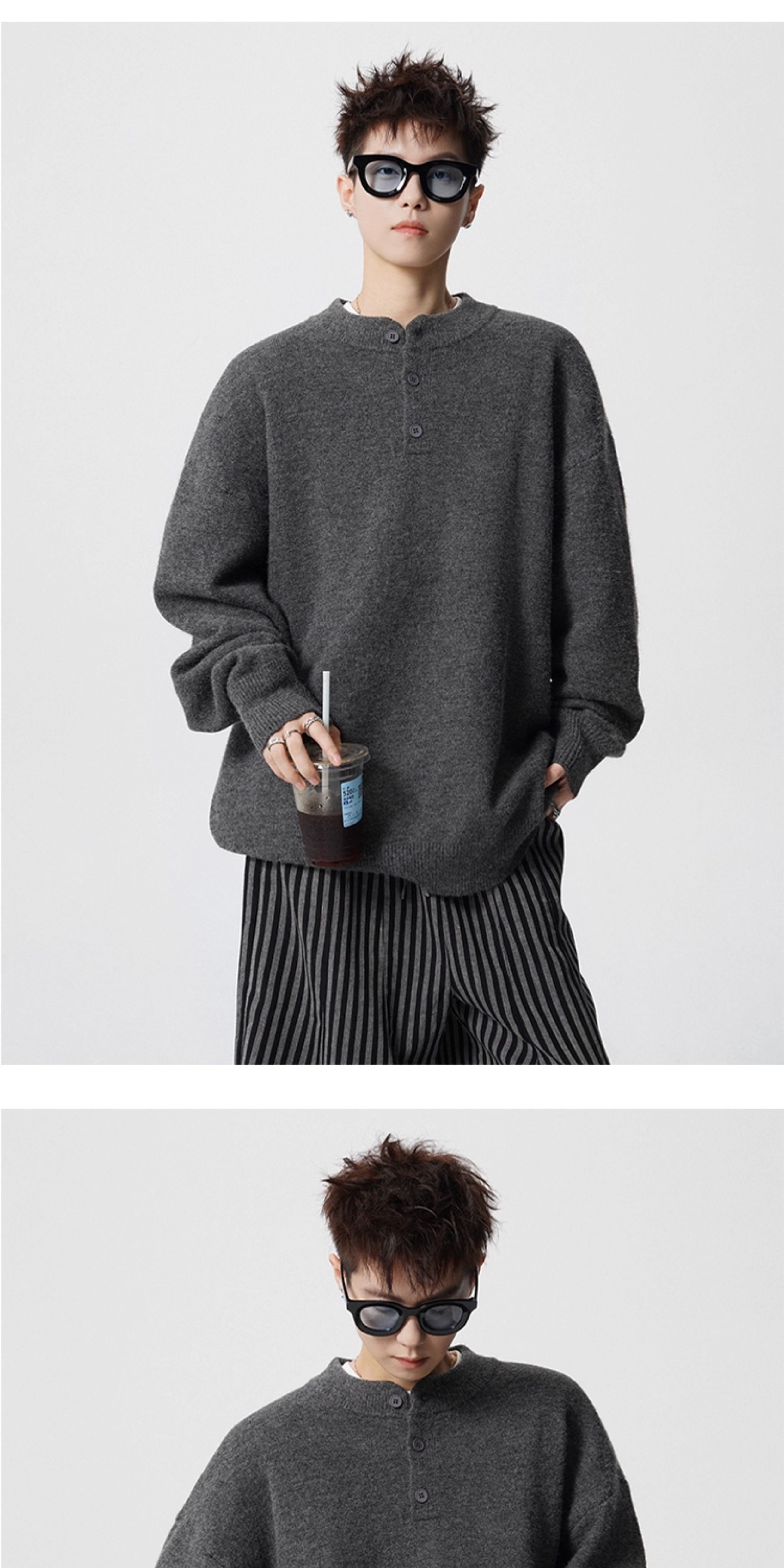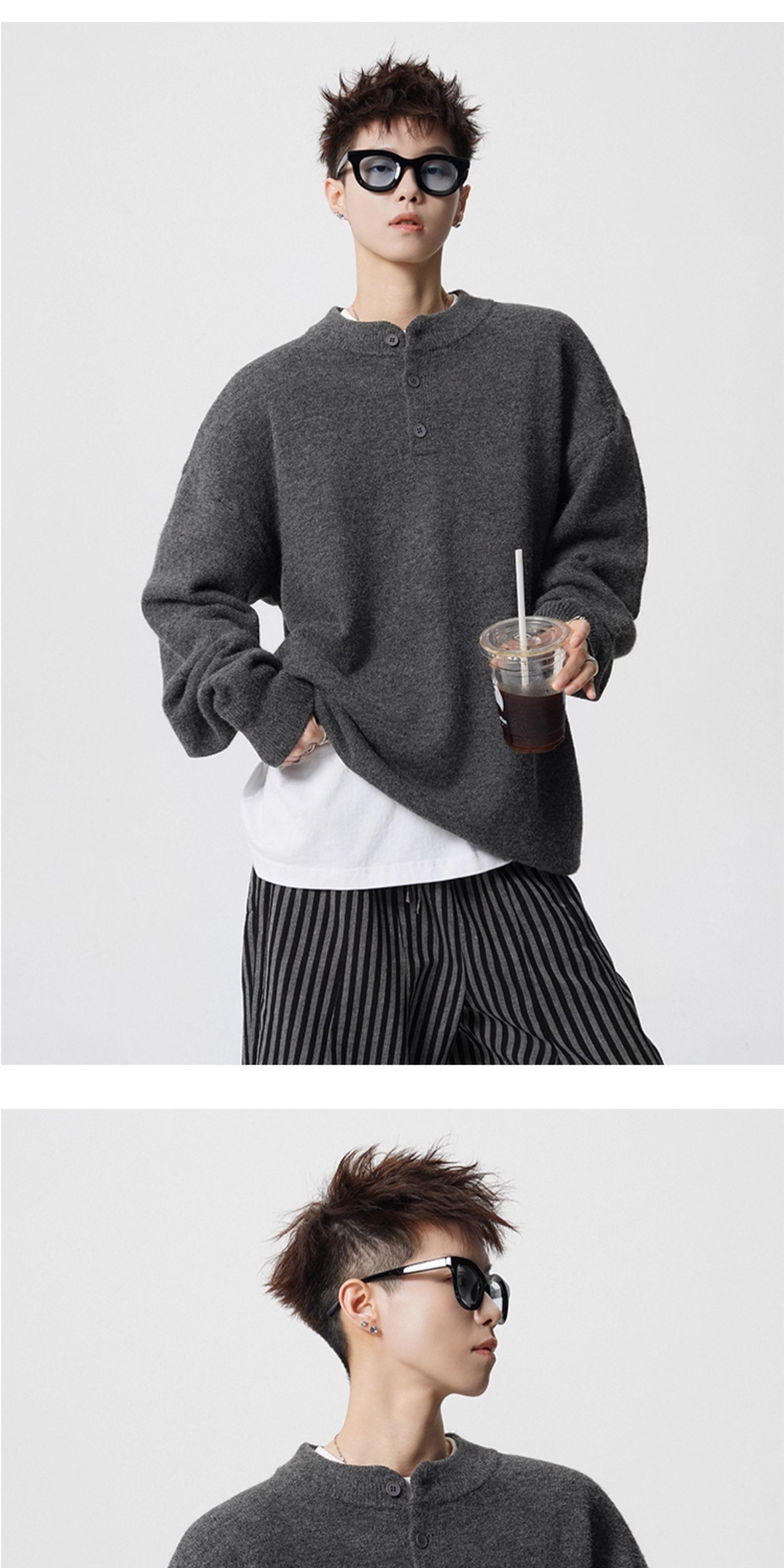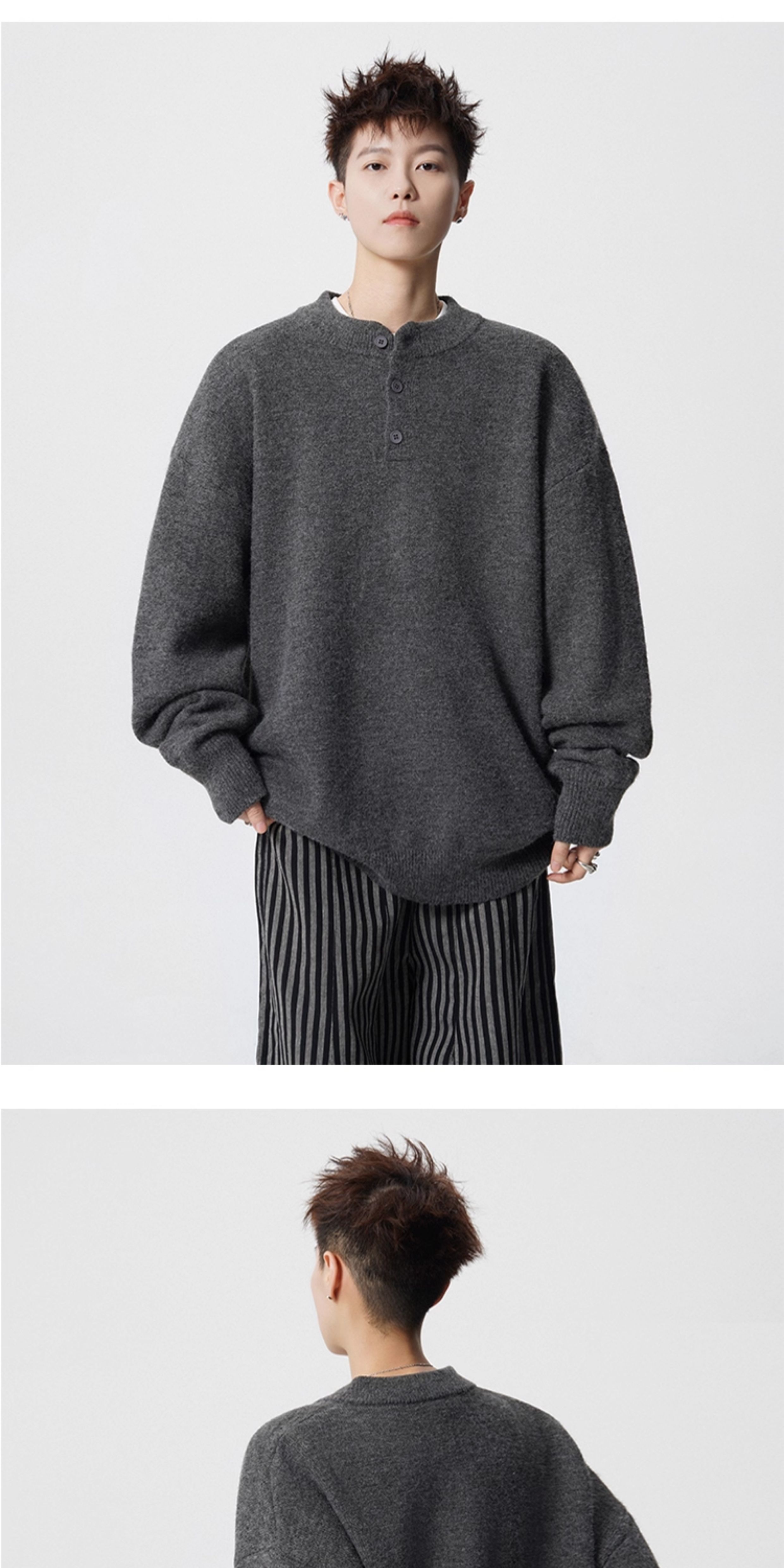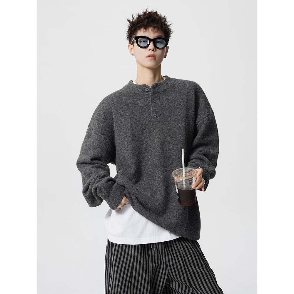 OEMG Henry collar bottoming sweater men's autumn and winter top warm sweater trendy brand lazy style high-end jacket Gray XL recommended 110-130Jin Jin equals 0.5 kg