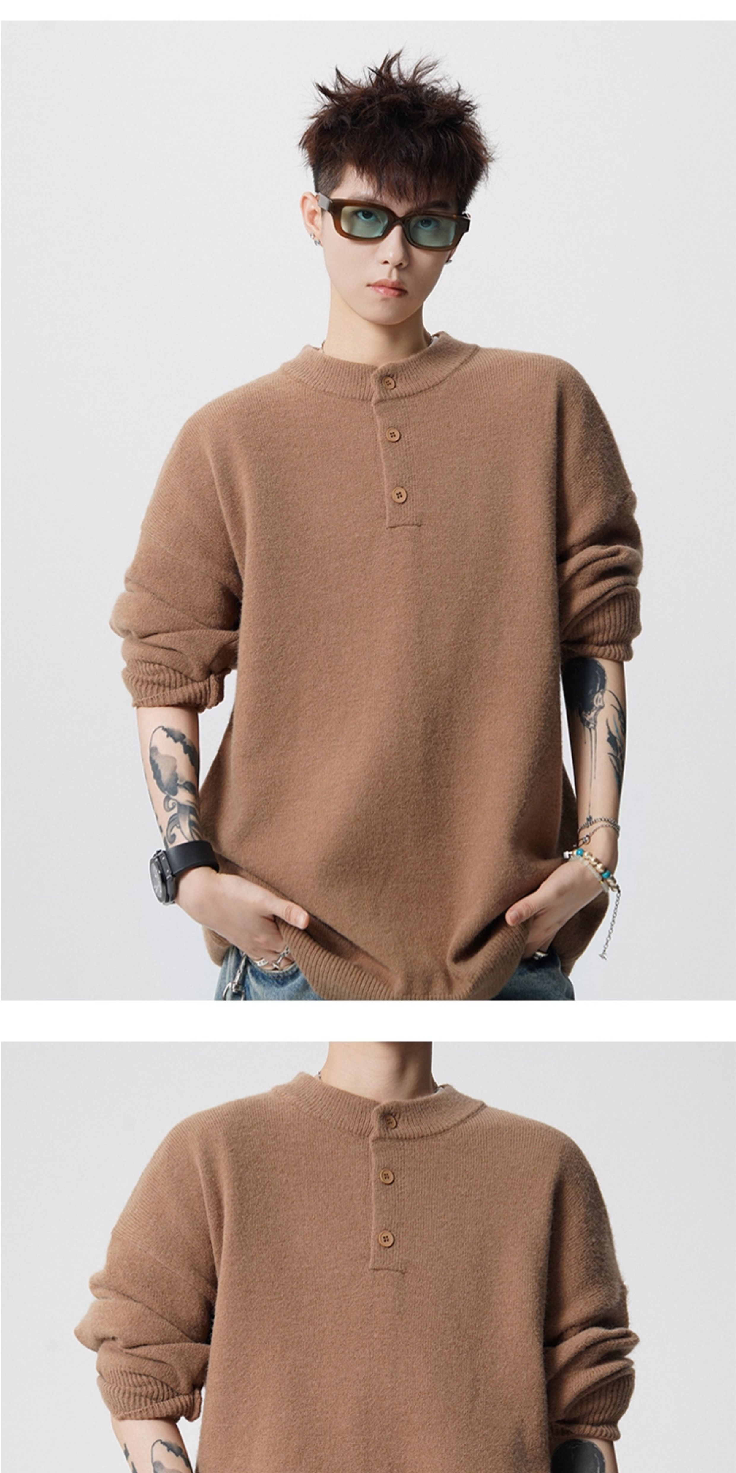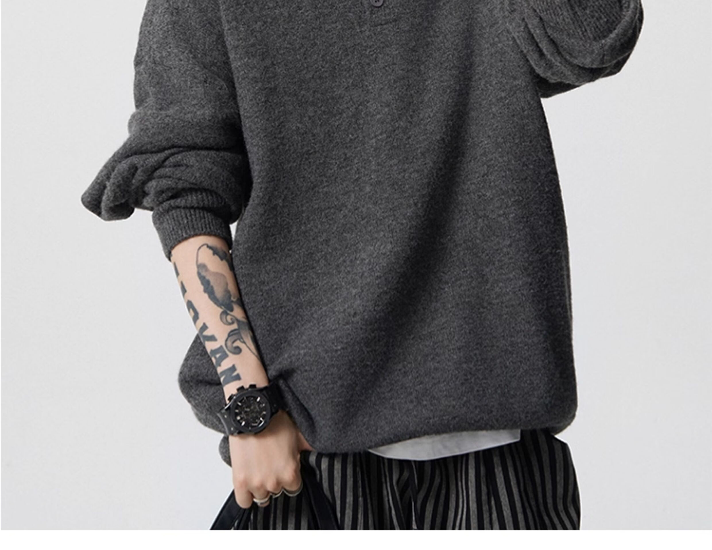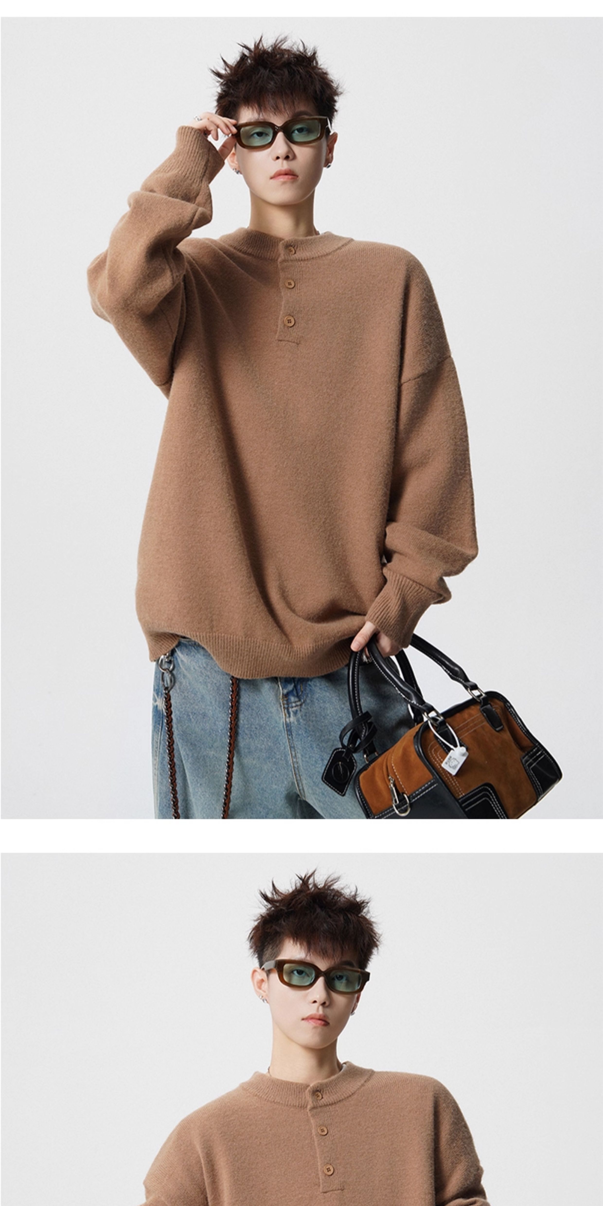 OEMG Henry collar bottoming sweater men's autumn and winter top warm sweater trendy brand lazy style high-end jacket Gray XL recommended 110-130Jin Jin equals 0.5 kg