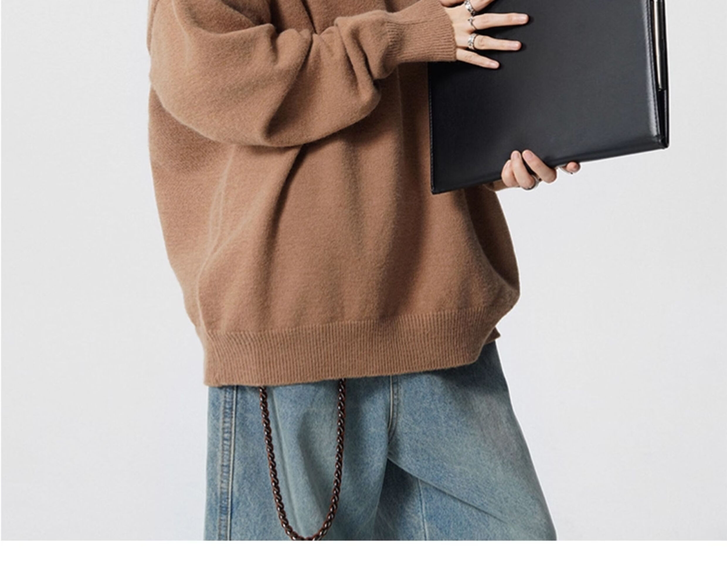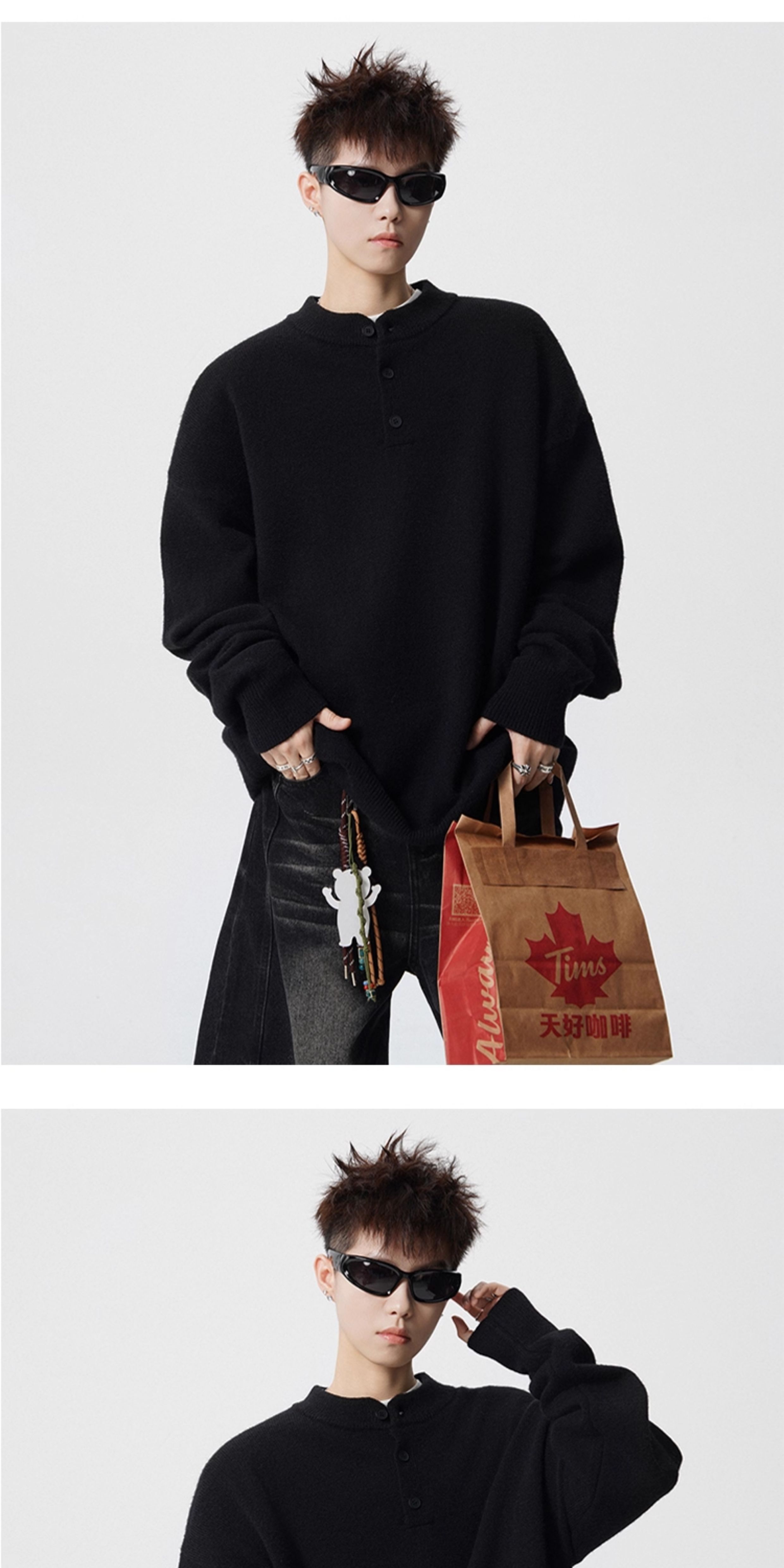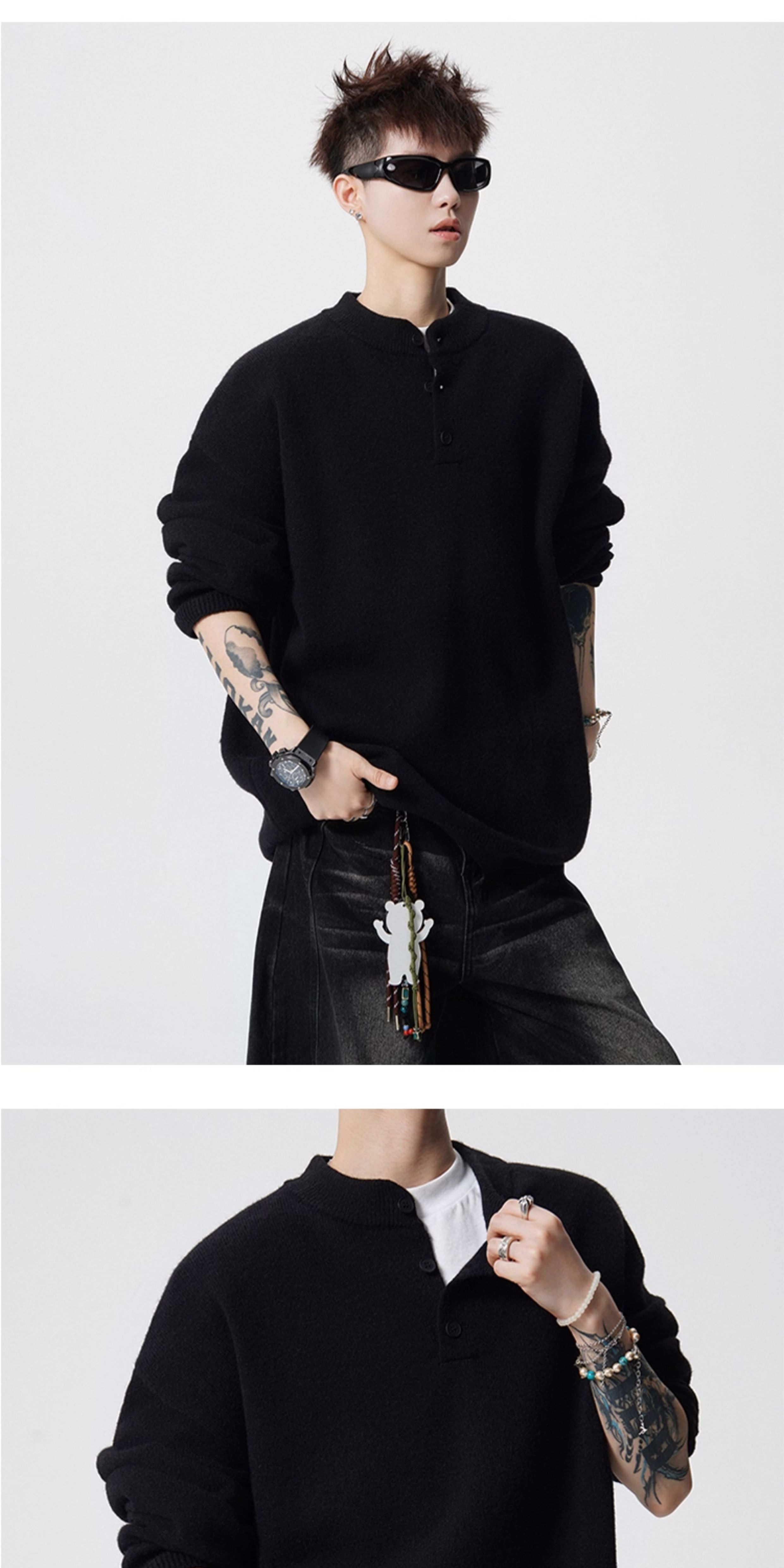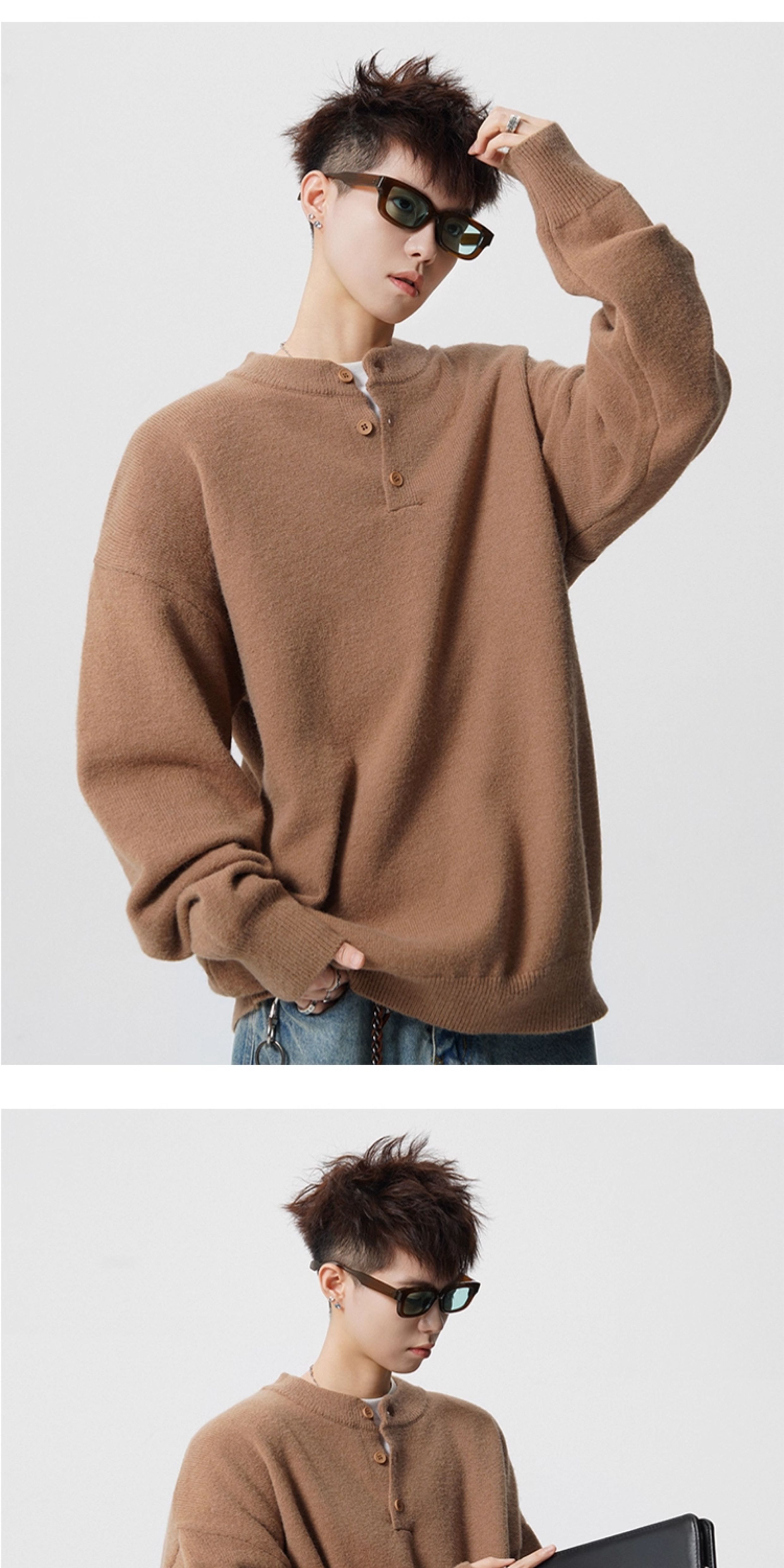 OEMG Henry collar bottoming sweater men's autumn and winter top warm sweater trendy brand lazy style high-end jacket Gray XL recommended 110-130Jin Jin equals 0.5 kg