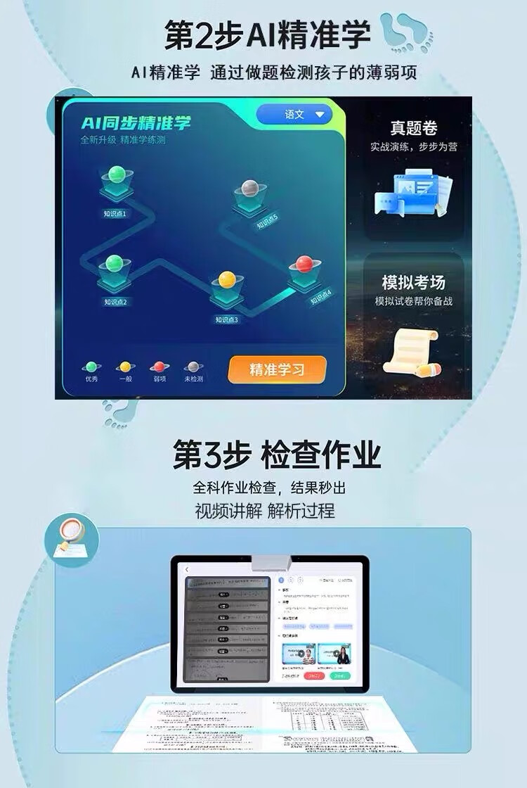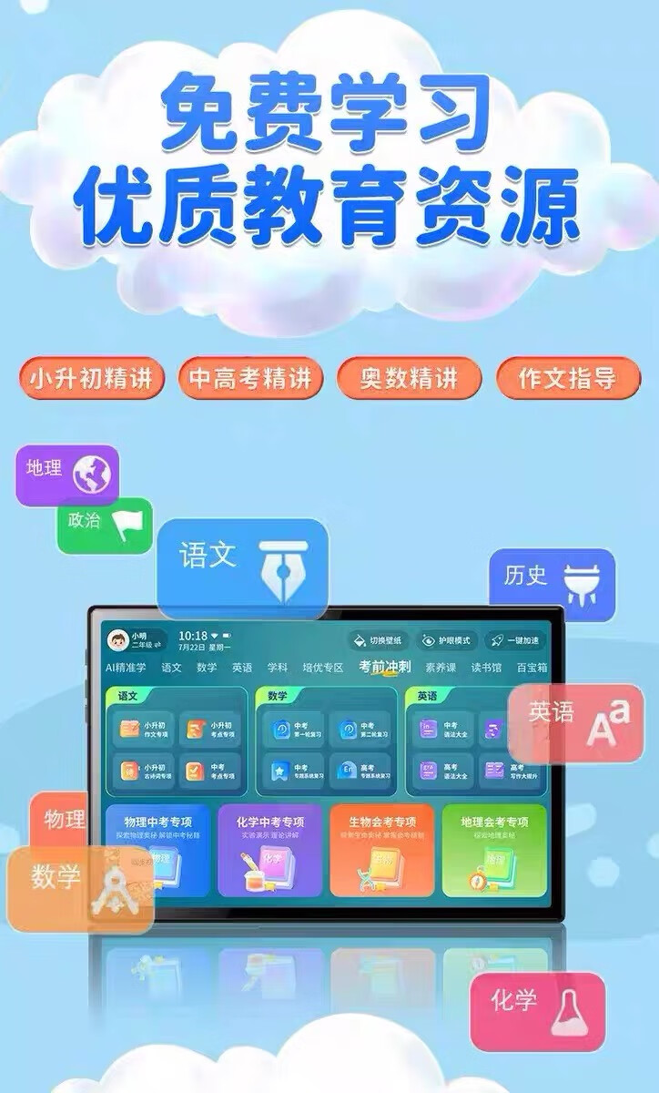 PUBGO 2025 New AI Intelligent Learning Machine Primary School Junior High School High School Universal Children's Tablet Early Education Machine English Reading Machine Champagne Gold Qingbei Famous Teacher Lectures + Genuine Reading Genius Edition Full Science + Homework Correction 512GB