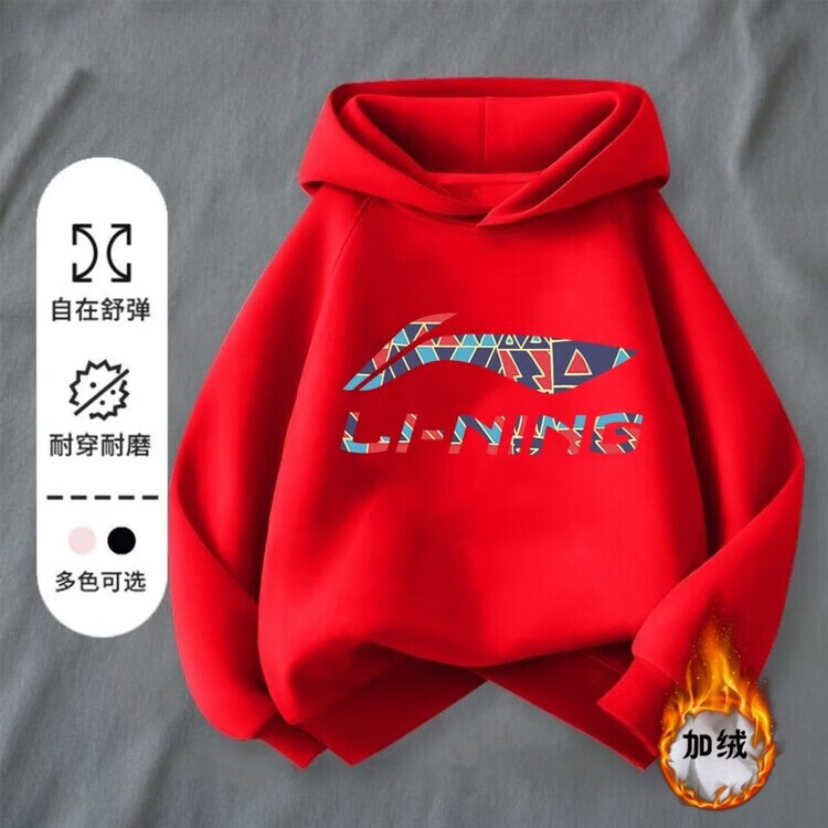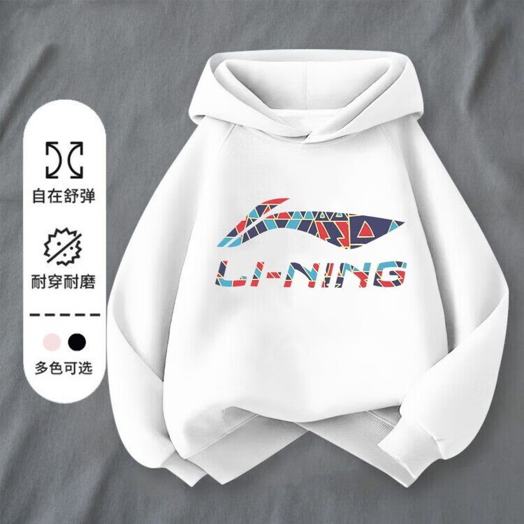LI NING Li Ning pure cotton boys sweatshirt 2025 hooded new girls hoodie casual children spring and autumn pullover thin top white LI velvet hooded sweatshirt 140
