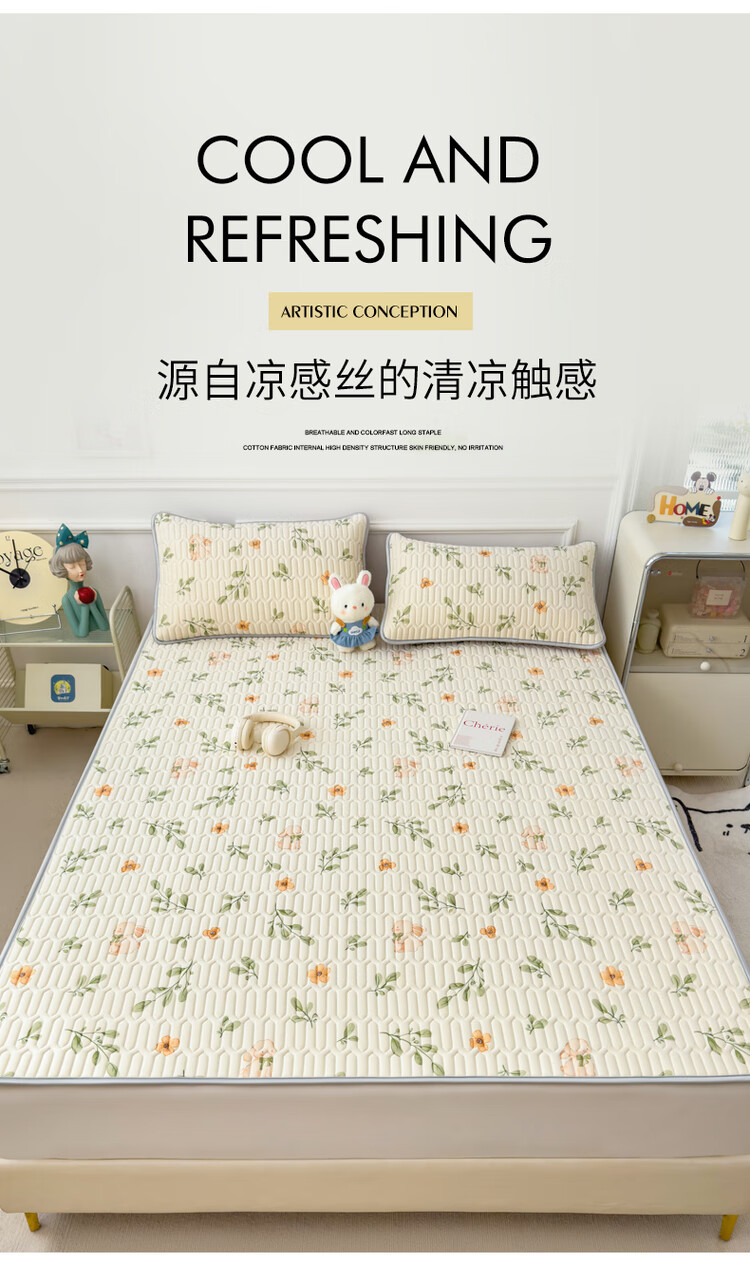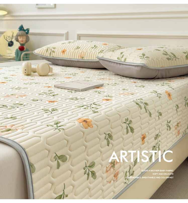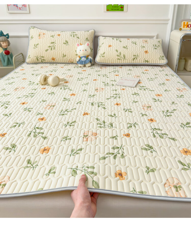 Yusenyi 2025 new latex mat three-piece summer ice silk sheet single machine washable air-conditioned soft mat summer Panda Baby Class A maternal and infant grade natural latex filling 2.0m6.6 feet bed