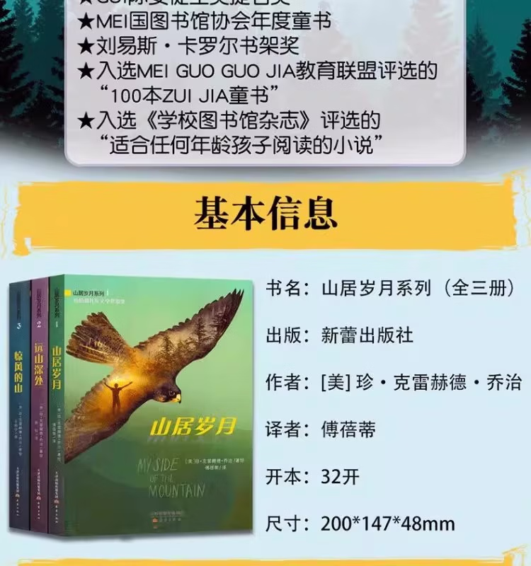 Newbery Gold Medal for Children's Literature, 3 volumes of the Mountain Dwelling Years trilogy, 3 volumes of the Stormy Mountains, Deep Wilderness Survival, fifth grade extracurricular book for primary school students, foreign children's literature, 3 volumes, 3 volumes of the Mountain Dwelling Years series.