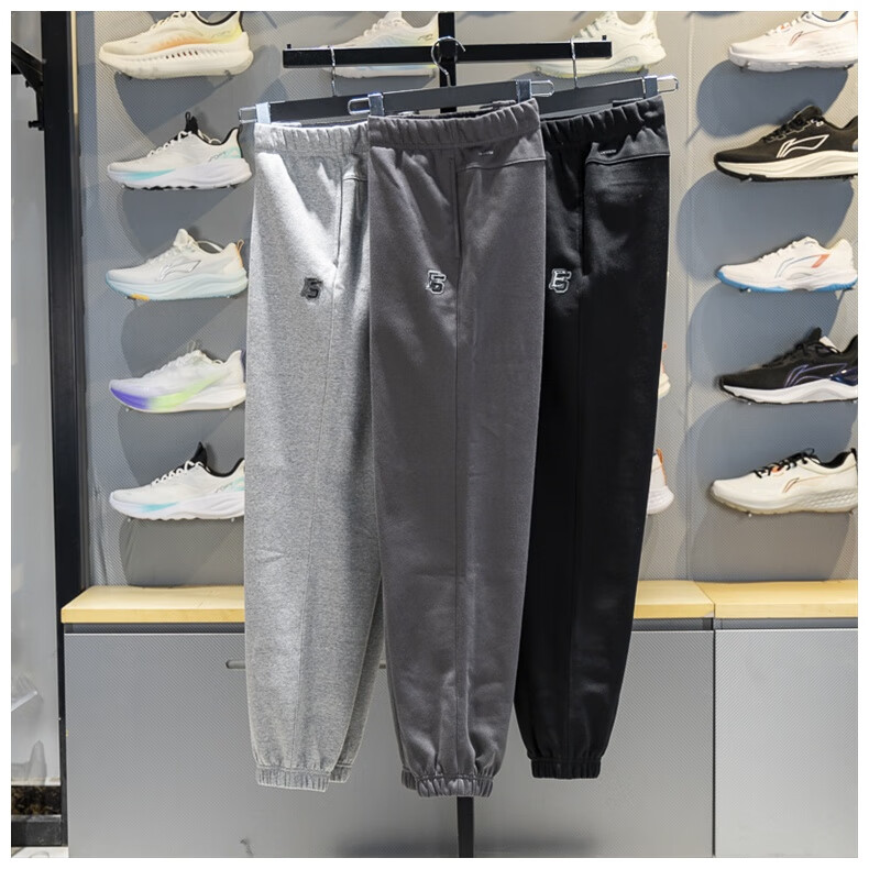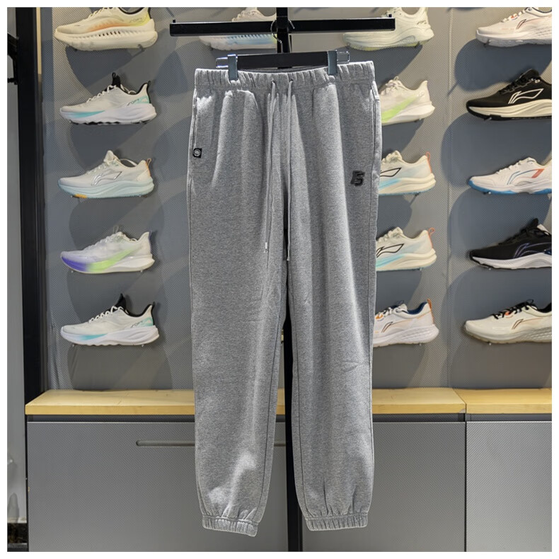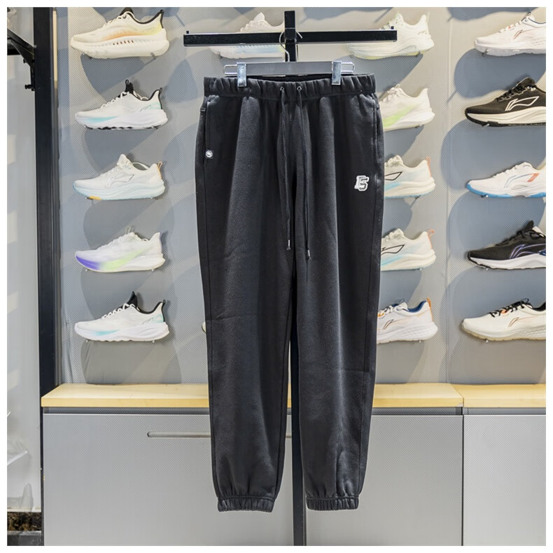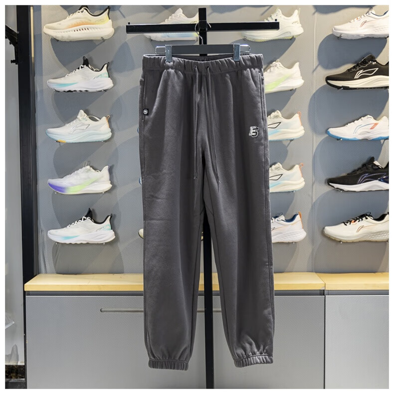 Li Ning men's sweatpants 2025 winter anti-Wu BADFIVE leg-warming plus velvet warm loose sports pants AKLV779 soot gray AKLV779-3 S
