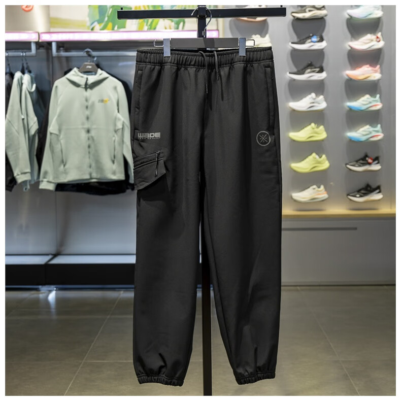Li Ning Wade Series Men's 2025 New Style Tie-Leg Plus Velvet Warm Water-Repellent Loose Sports Pants AYKV435 Black AYKV435-1 S