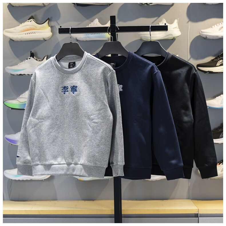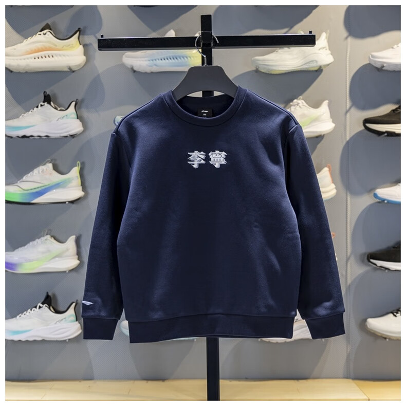 Li Ning Children's Fleece Sweatshirt 2025 Winter Boys and Teenagers Loose Fleece Warm Sweatshirt YWEV047 Dark Navy YWEV047-2 175