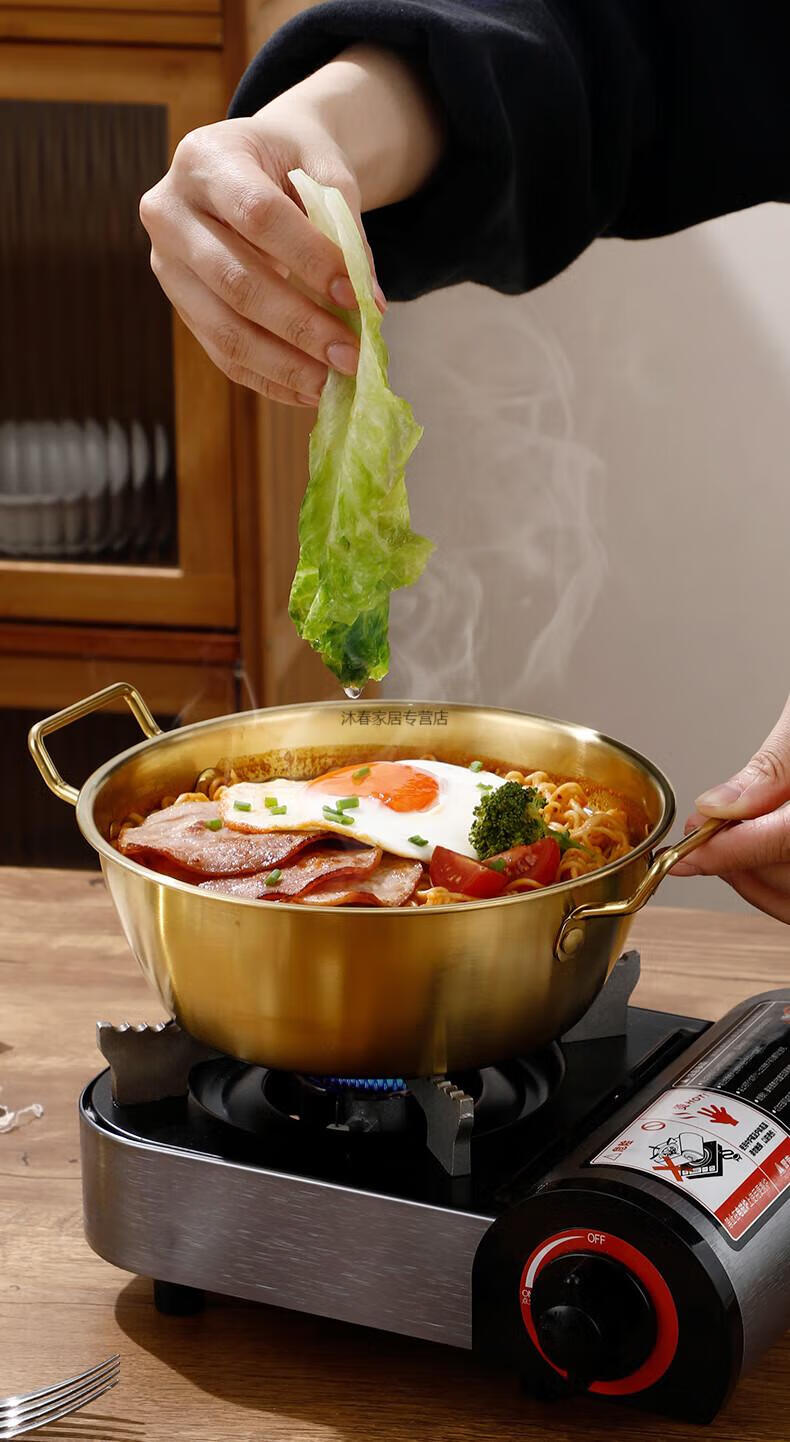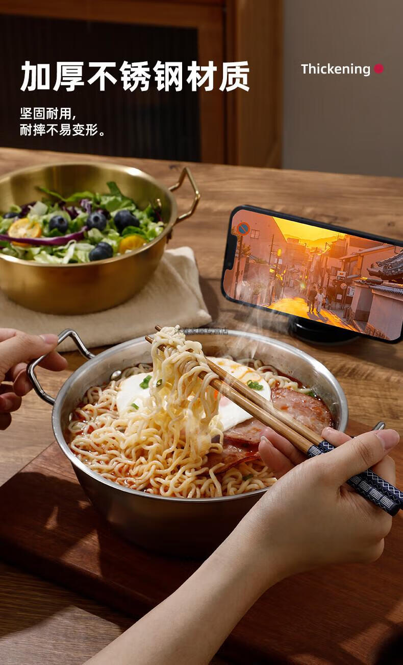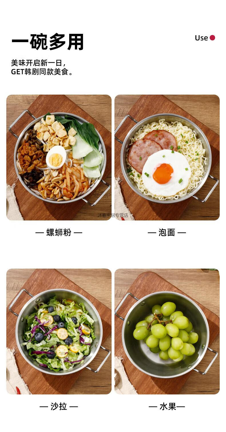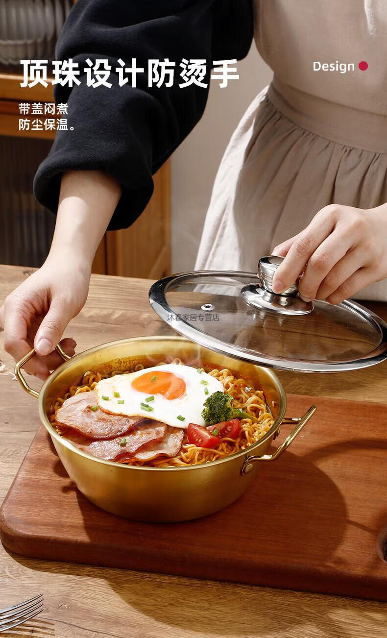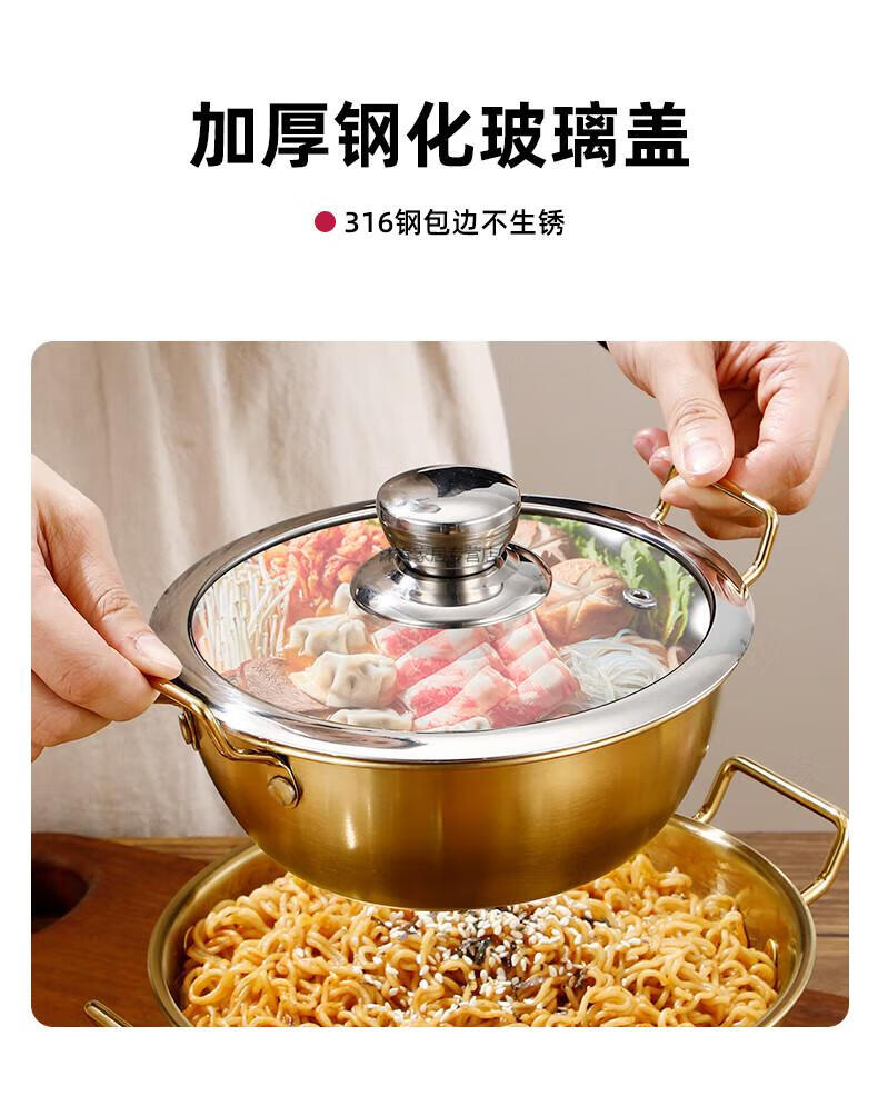 MIEHONE South Korea imported high-quality Korean-style instant noodle bowl 316 stainless steel large bowl with lid household double-ear ramen bowl snail noodles 17CM double-ear instant noodle bowl - gold + glass lid