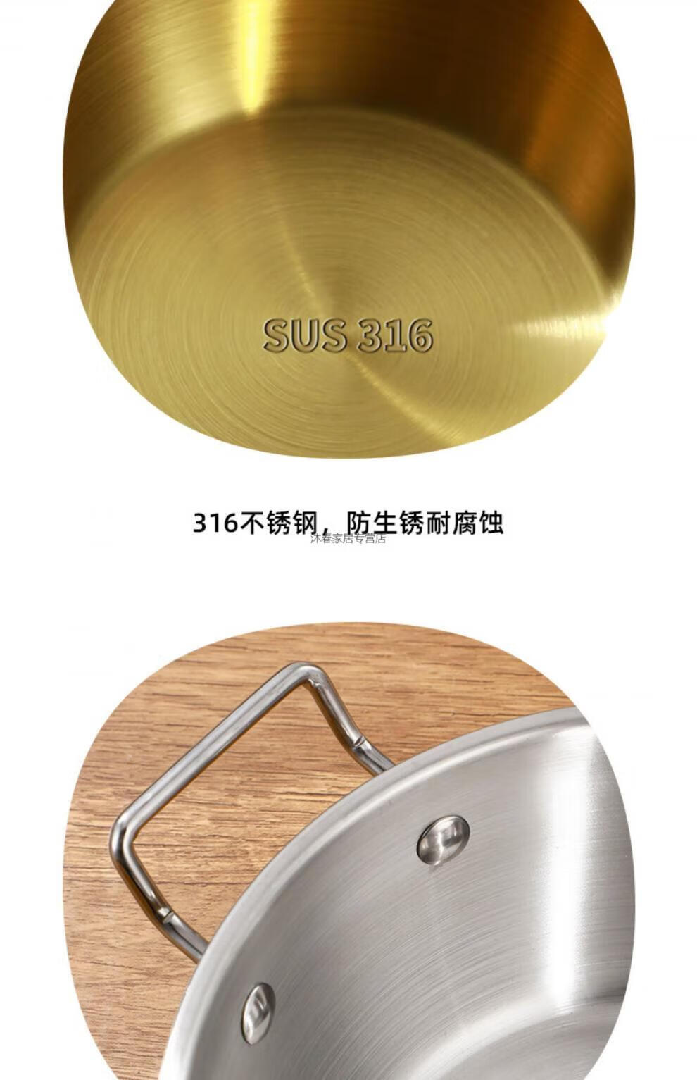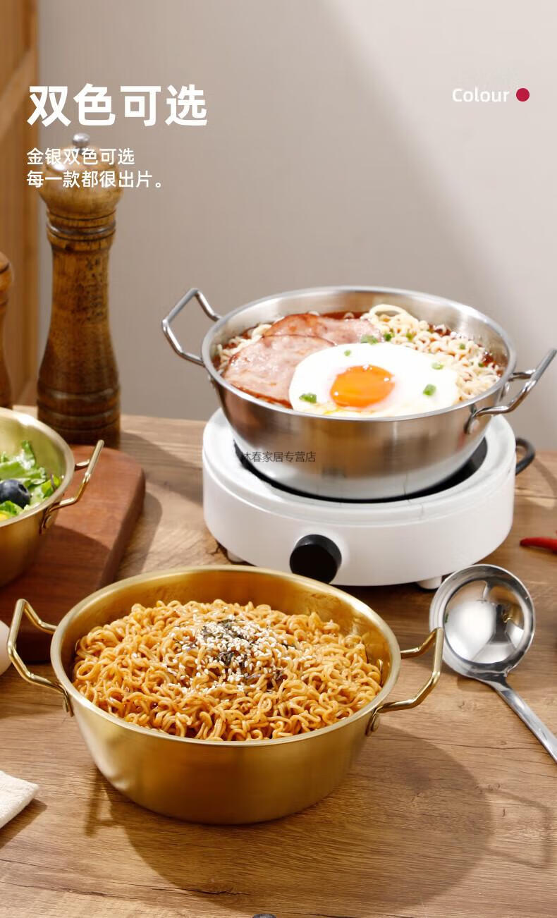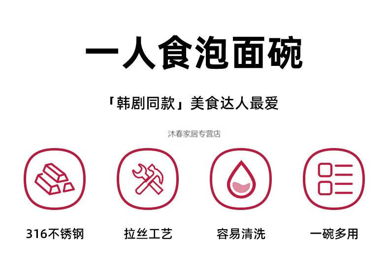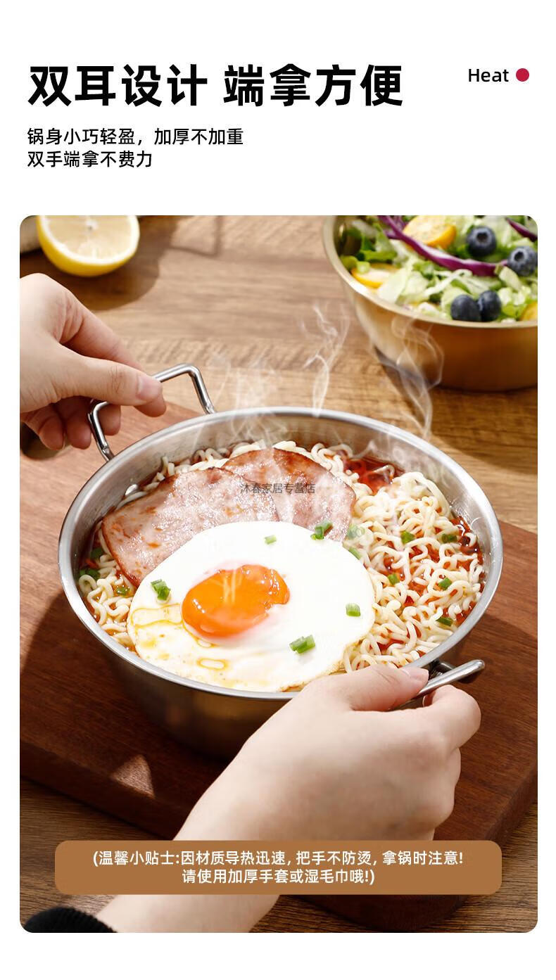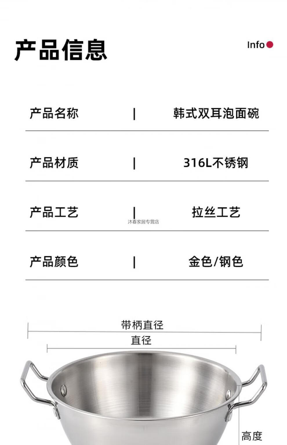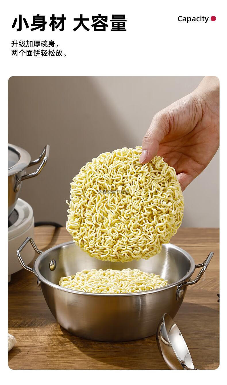 MIEHONE South Korea imported high-quality Korean-style instant noodle bowl 316 stainless steel large bowl with lid household double-ear ramen bowl snail noodles 17CM double-ear instant noodle bowl - gold + glass lid
