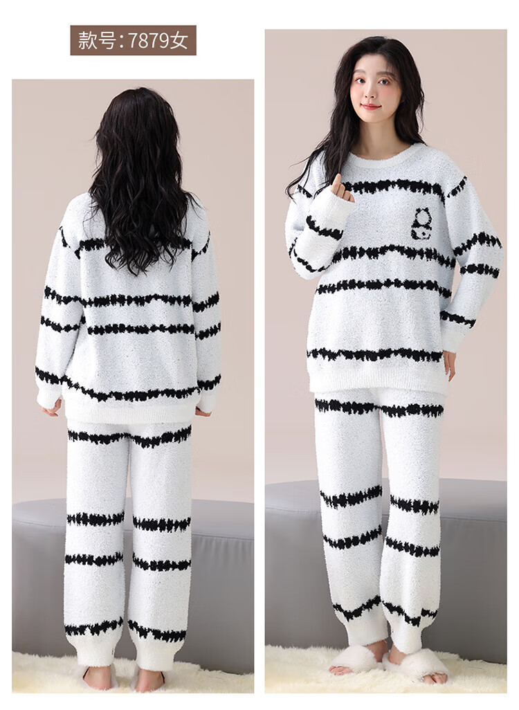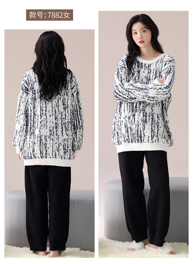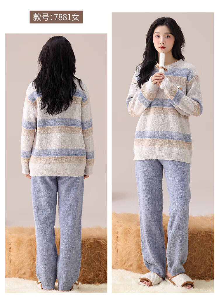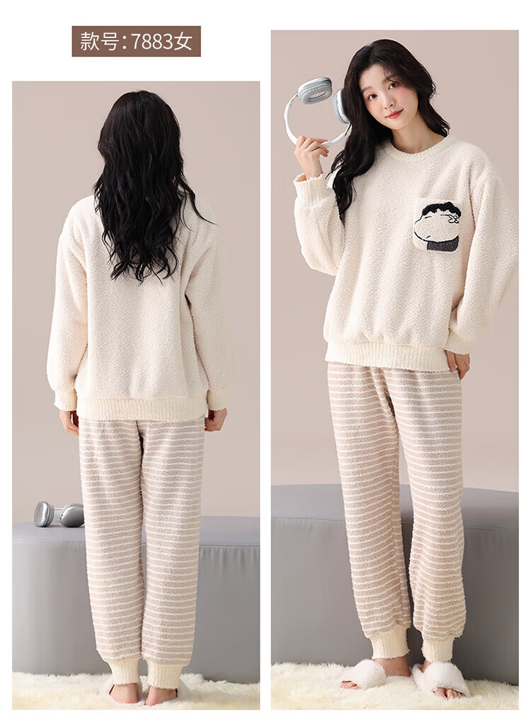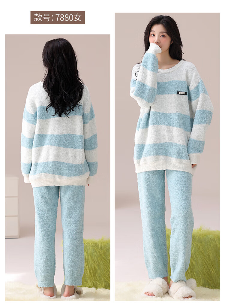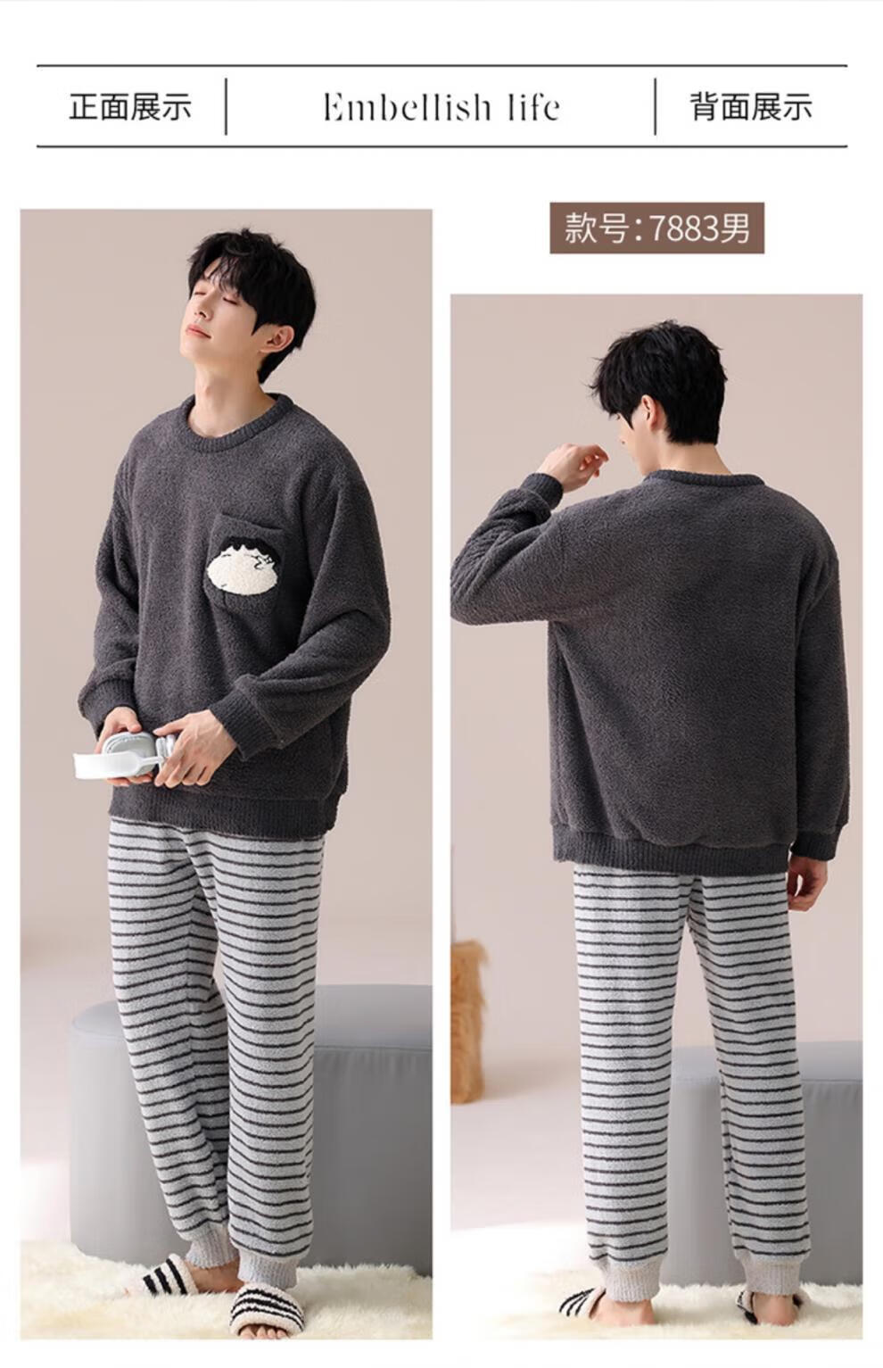 LangSha Couple Pajamas Women's Autumn and Winter Coral Velvet 2025 New Warm Men's Half Velvet Home Clothes 7880 M Women's Suitable for 80-100 Jin Jin equals 0.5 kg