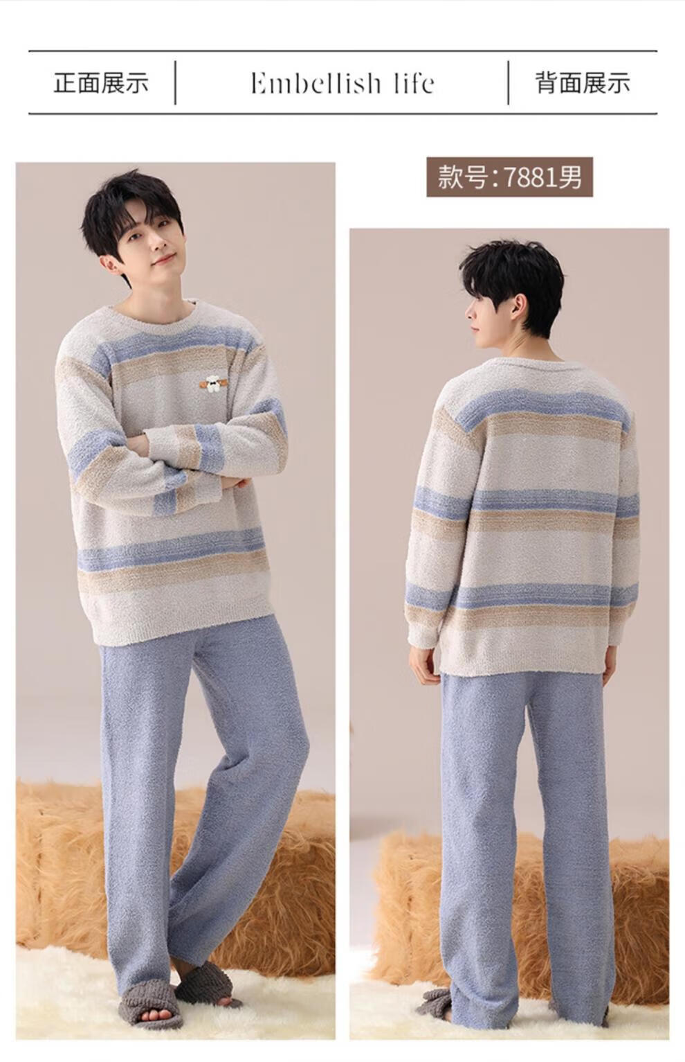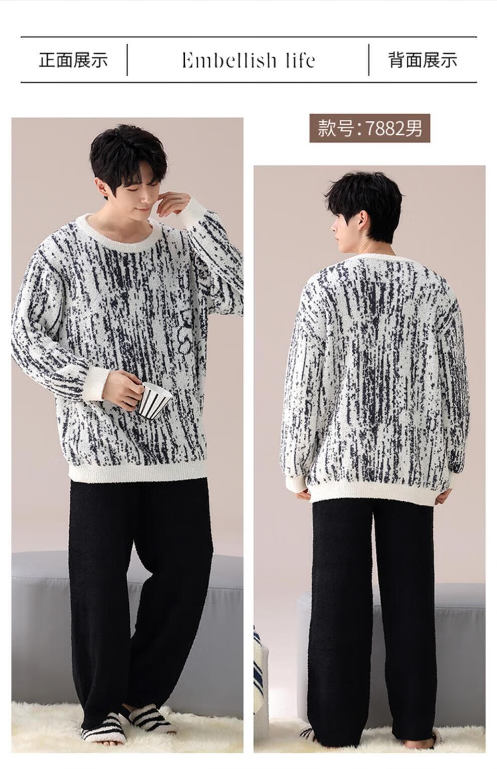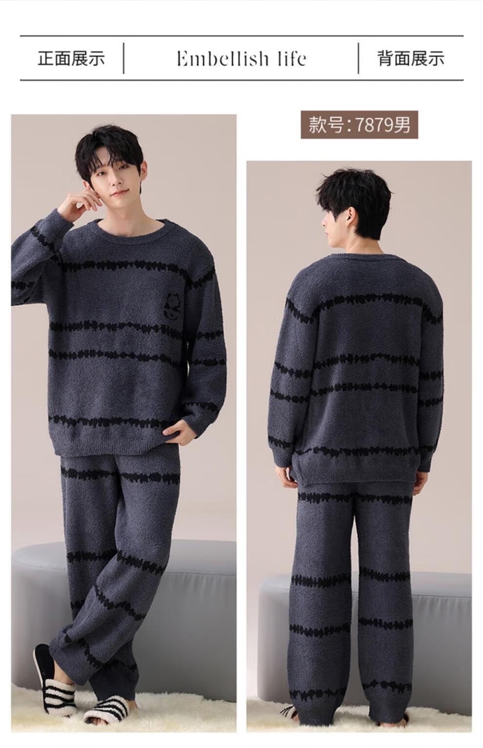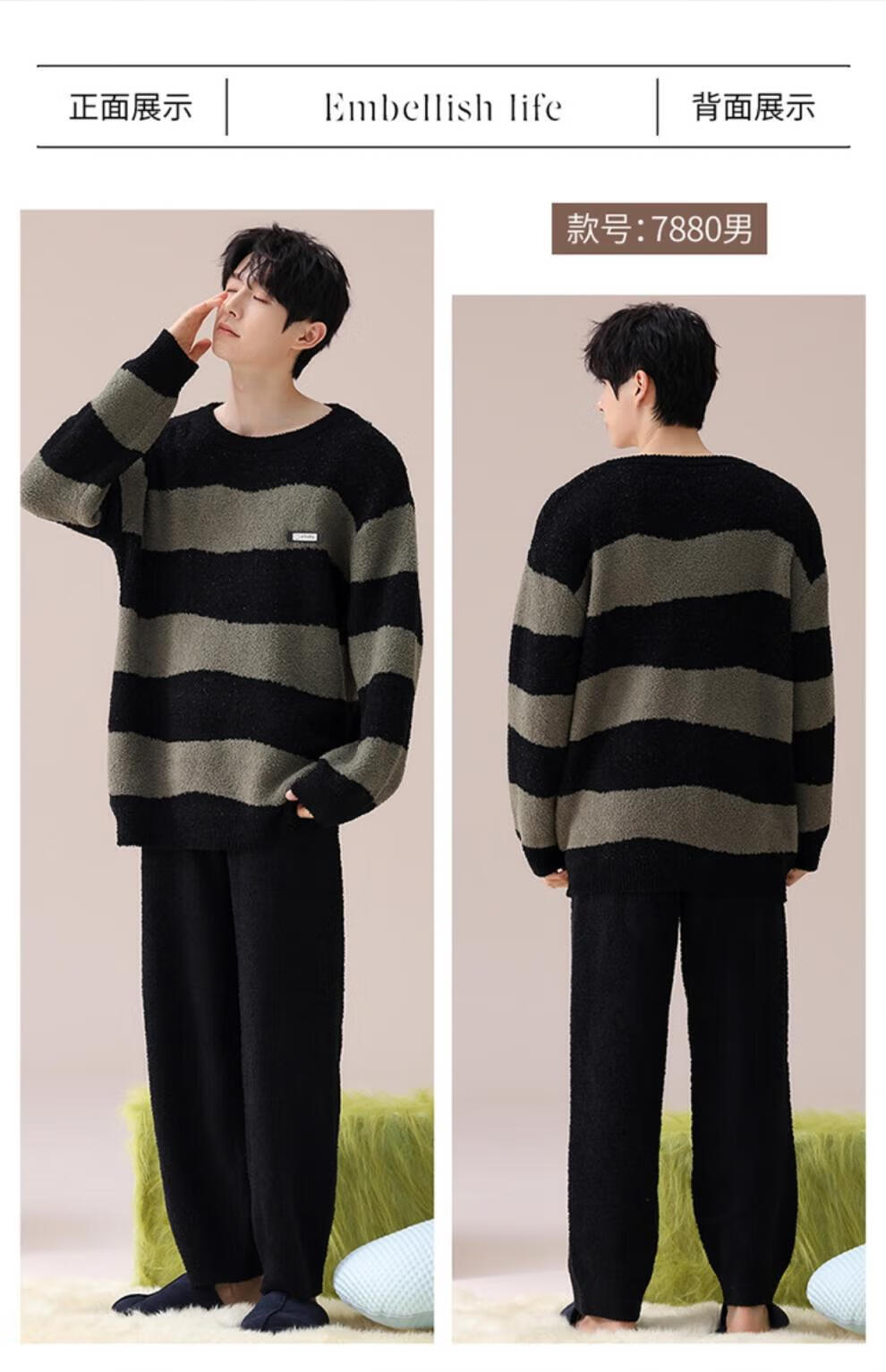 LangSha Couple Pajamas Women's Autumn and Winter Coral Velvet 2025 New Warm Men's Half Velvet Home Clothes 7880 M Women's Suitable for 80-100 Jin Jin equals 0.5 kg