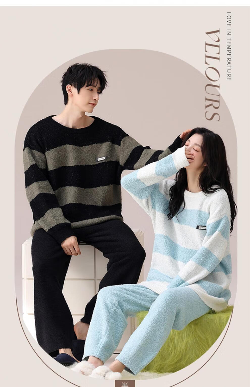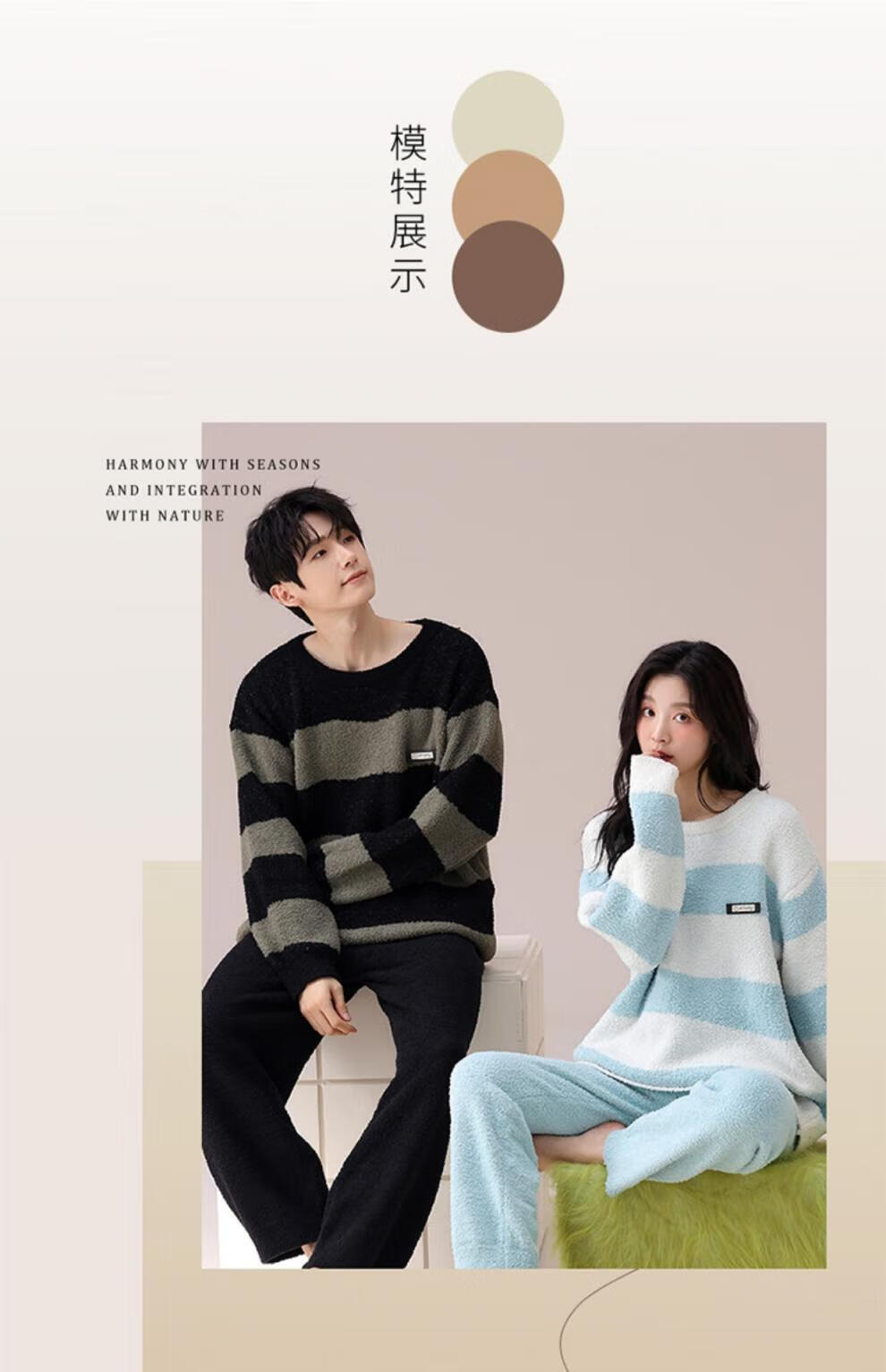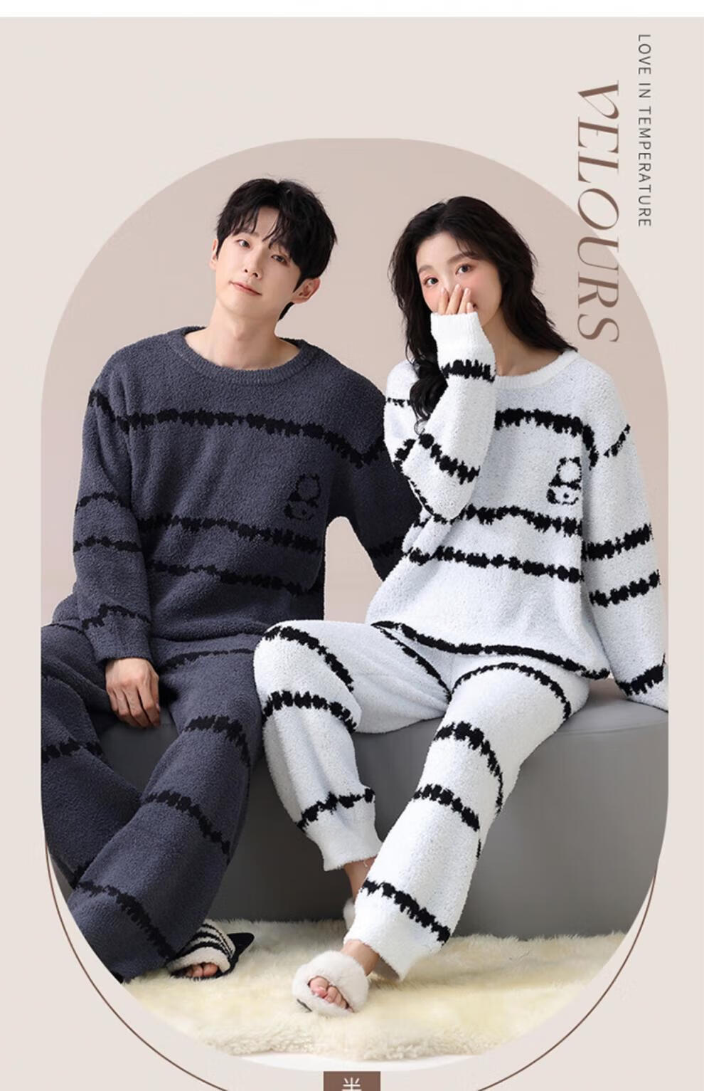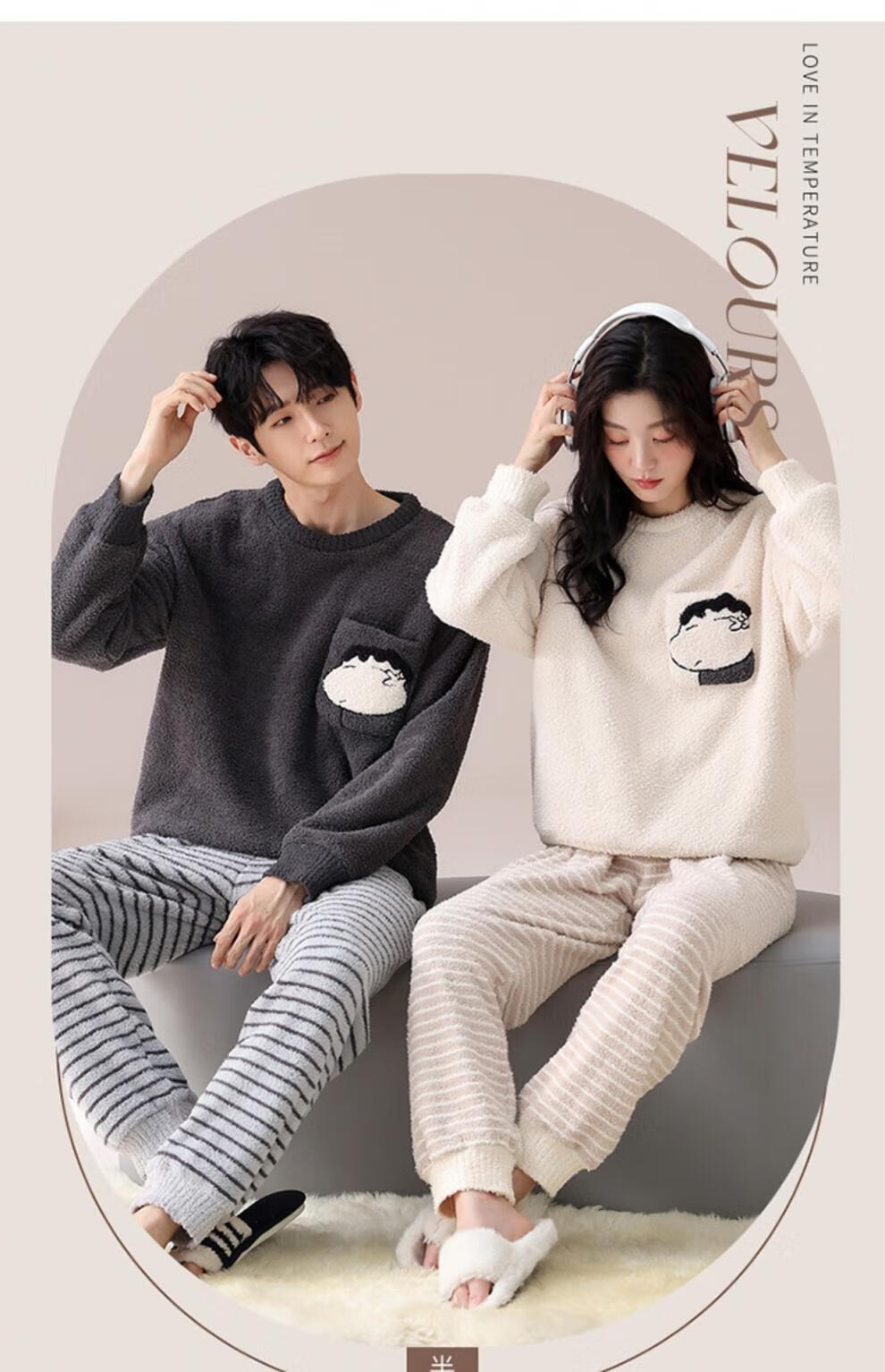 LangSha Couple Pajamas Women's Autumn and Winter Coral Velvet 2025 New Warm Men's Half Velvet Home Clothes 7880 M Women's Suitable for 80-100 Jin Jin equals 0.5 kg