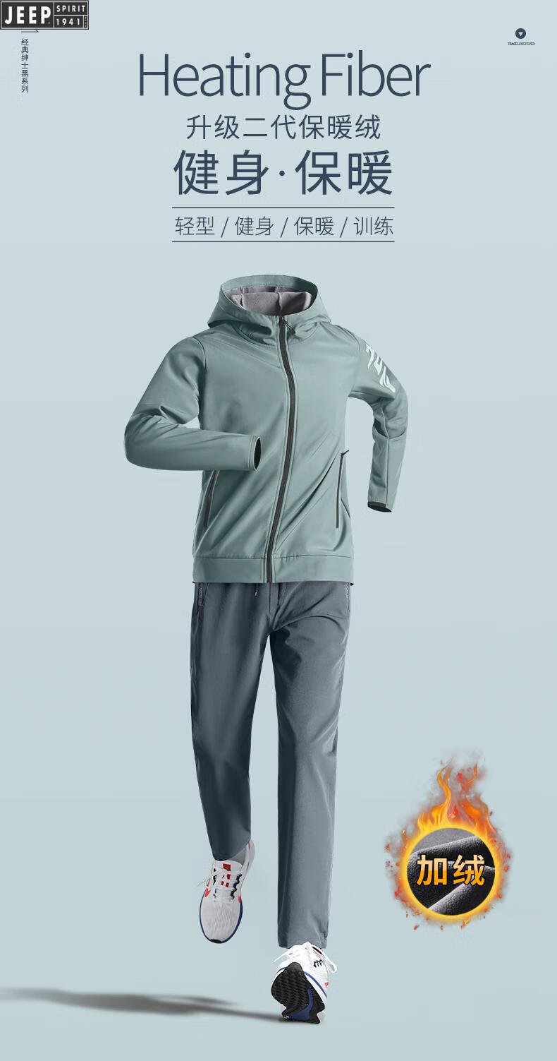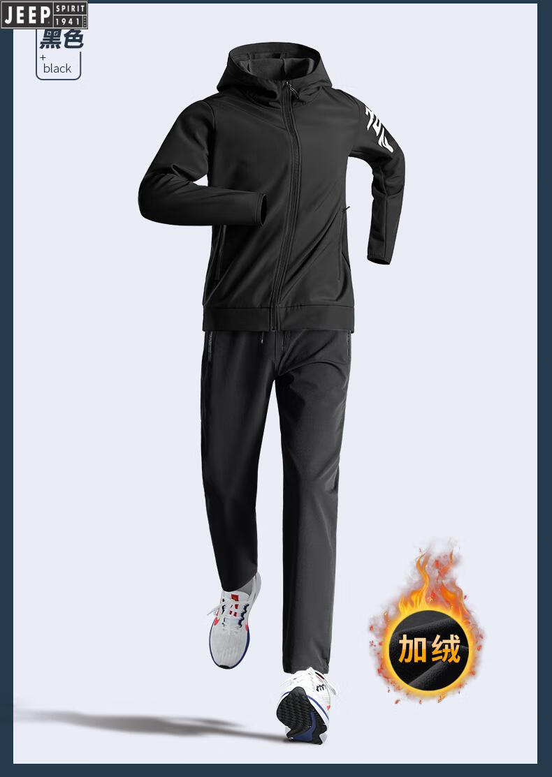 JEEP SPIRIT Jeep International Brand Running Sports Suit Men's Autumn and Winter Windproof Cycling Clothing Plus Velvet Warm Fitness Training Clothing Three-piece Set Light Green Velvet Warmth Windproof M 110-130Jin Jin is equal to 0.5 kg