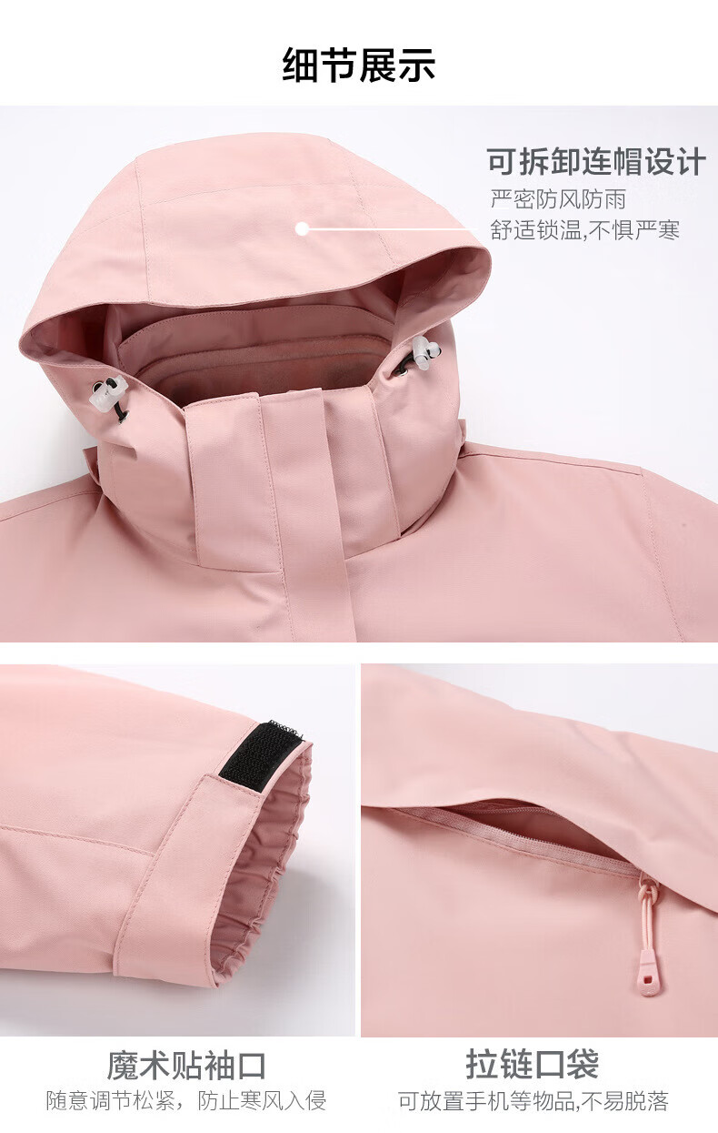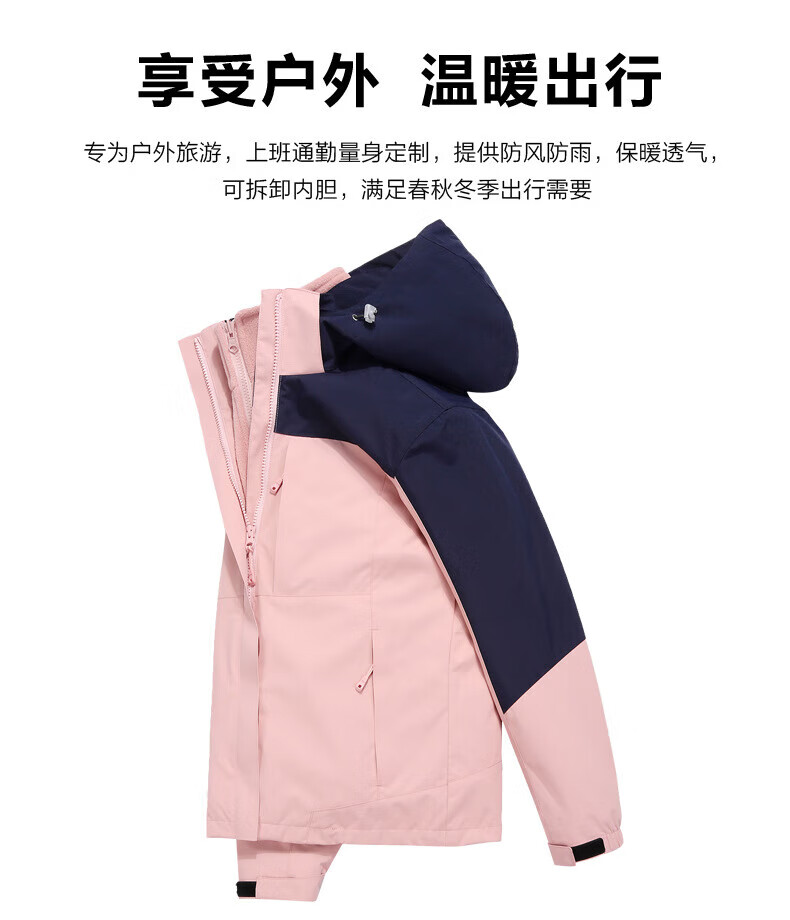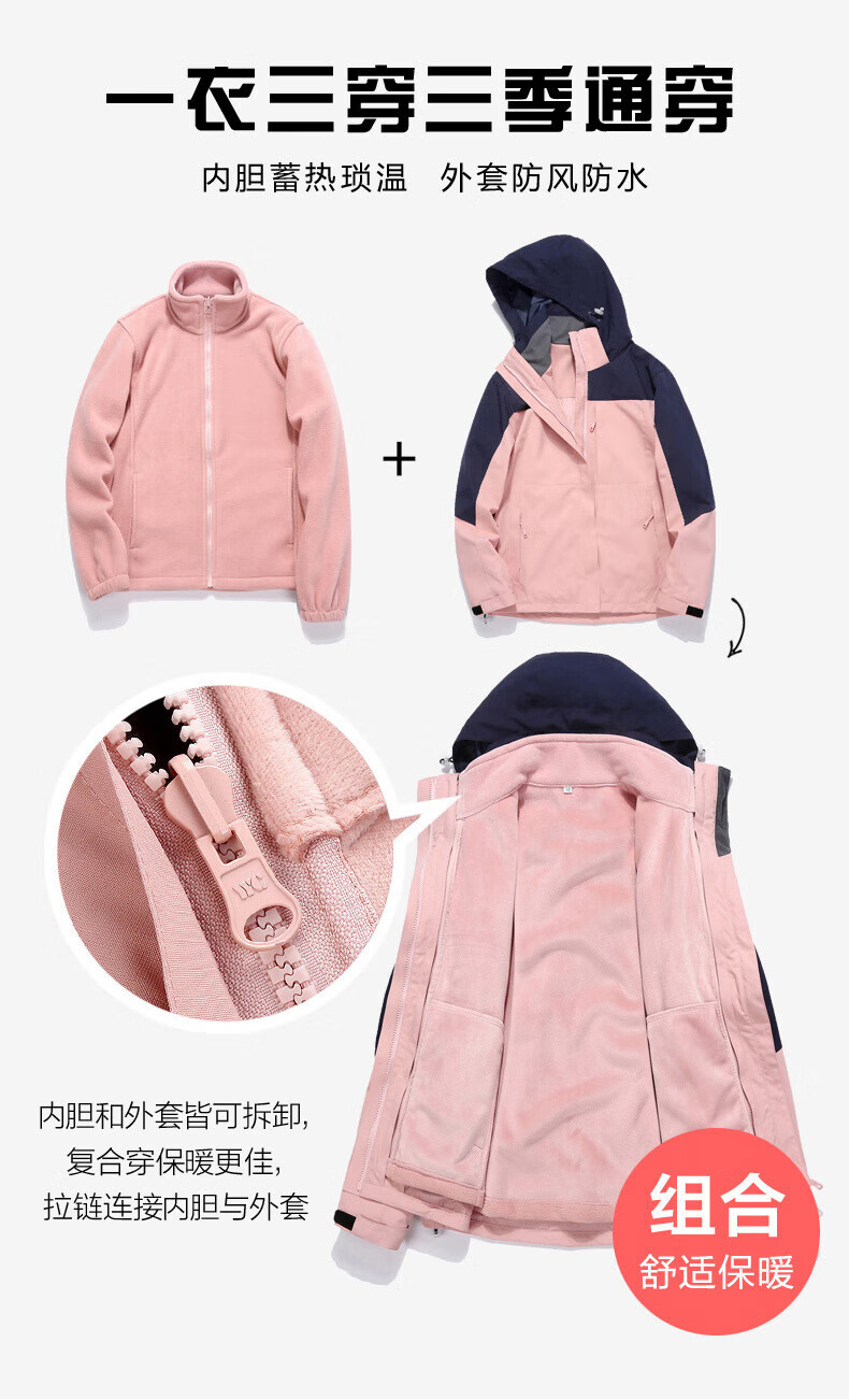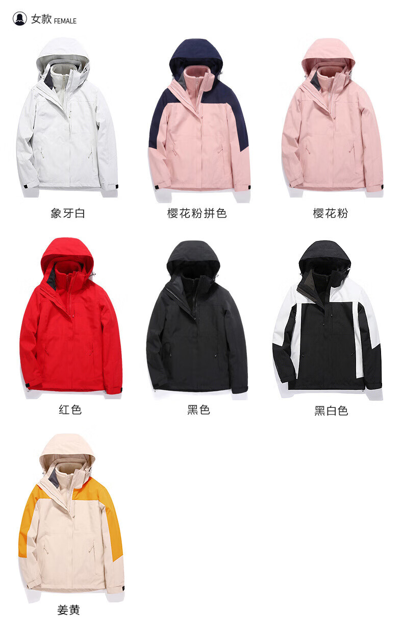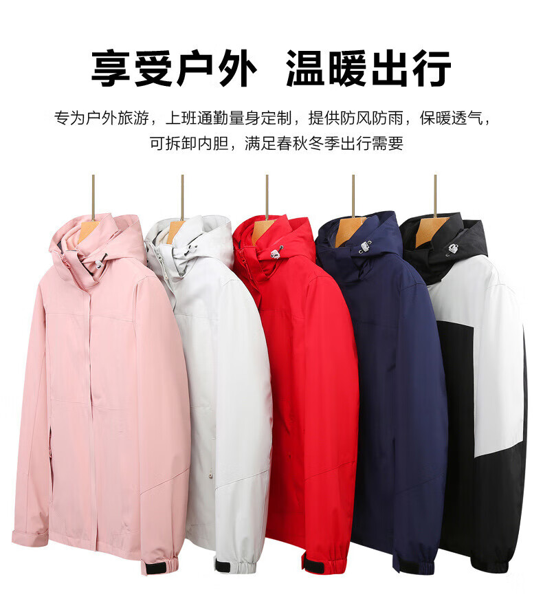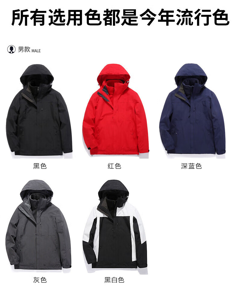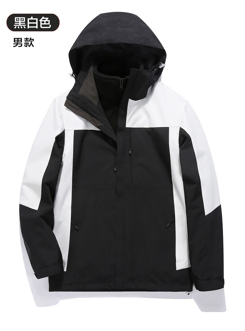Taizhou Xichuang clothing jacket couple YKK zipper men's three-in-one detachable two-piece set women's fishing men's black and white XS