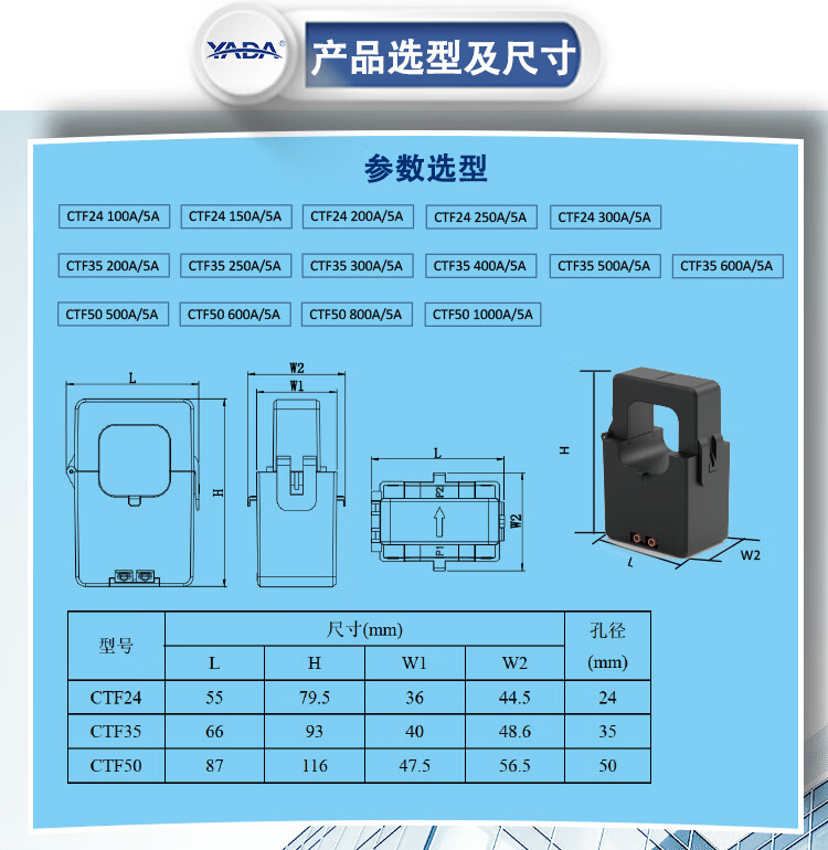 YADA/24/35/50/Micro opening current transformer snap-in transformer CTF50-1000A_5A