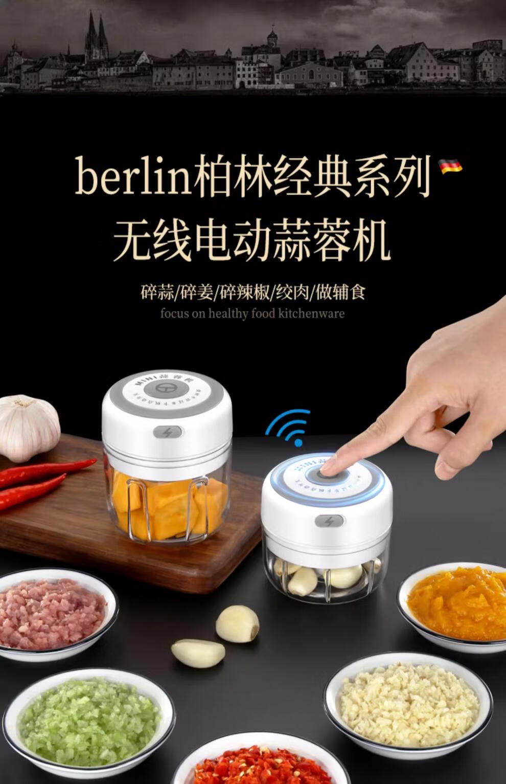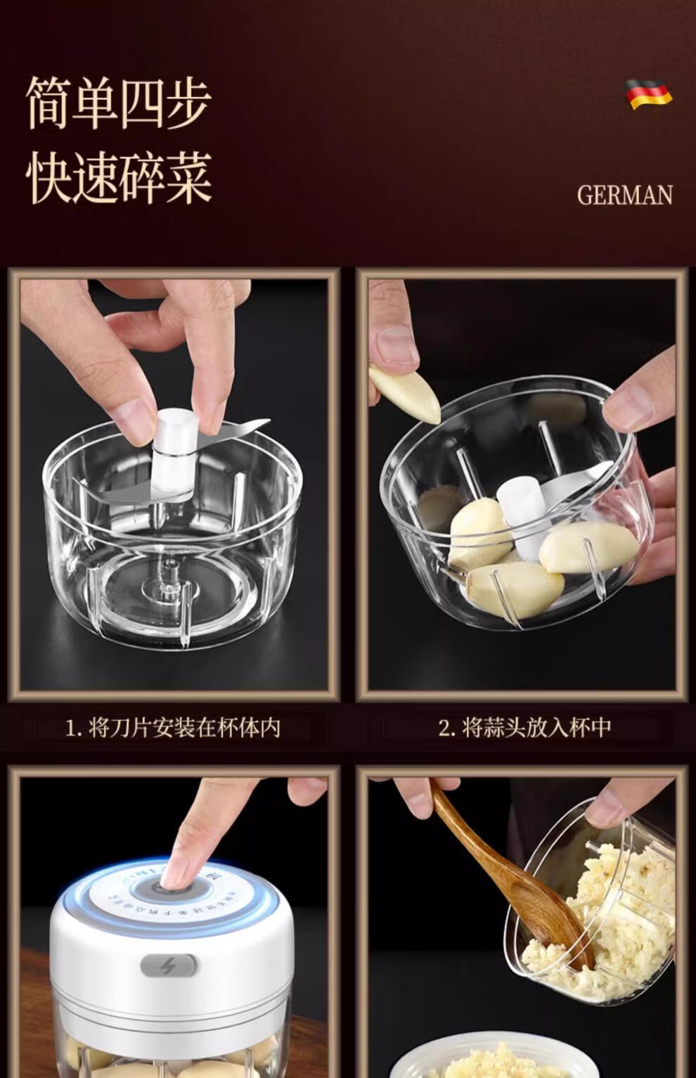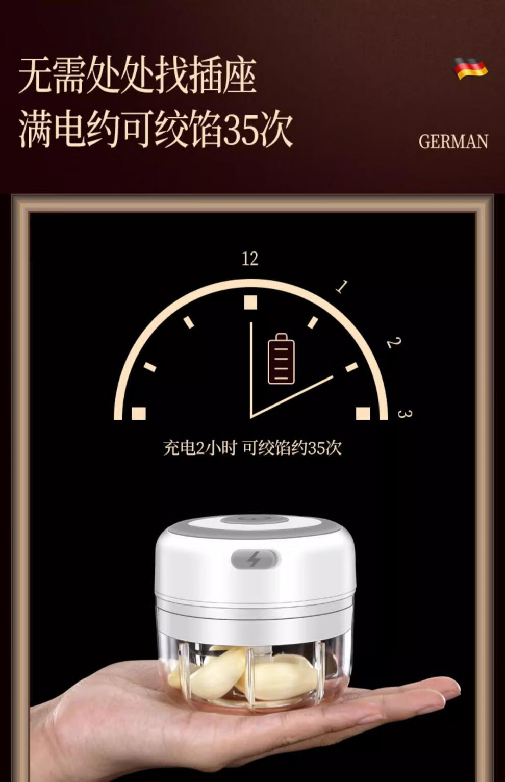 JCZS German electric garlic masher garlic artifact household minced meat pepper grinder mini multi-function enhanced power + high borosilicate glass container green 150ml