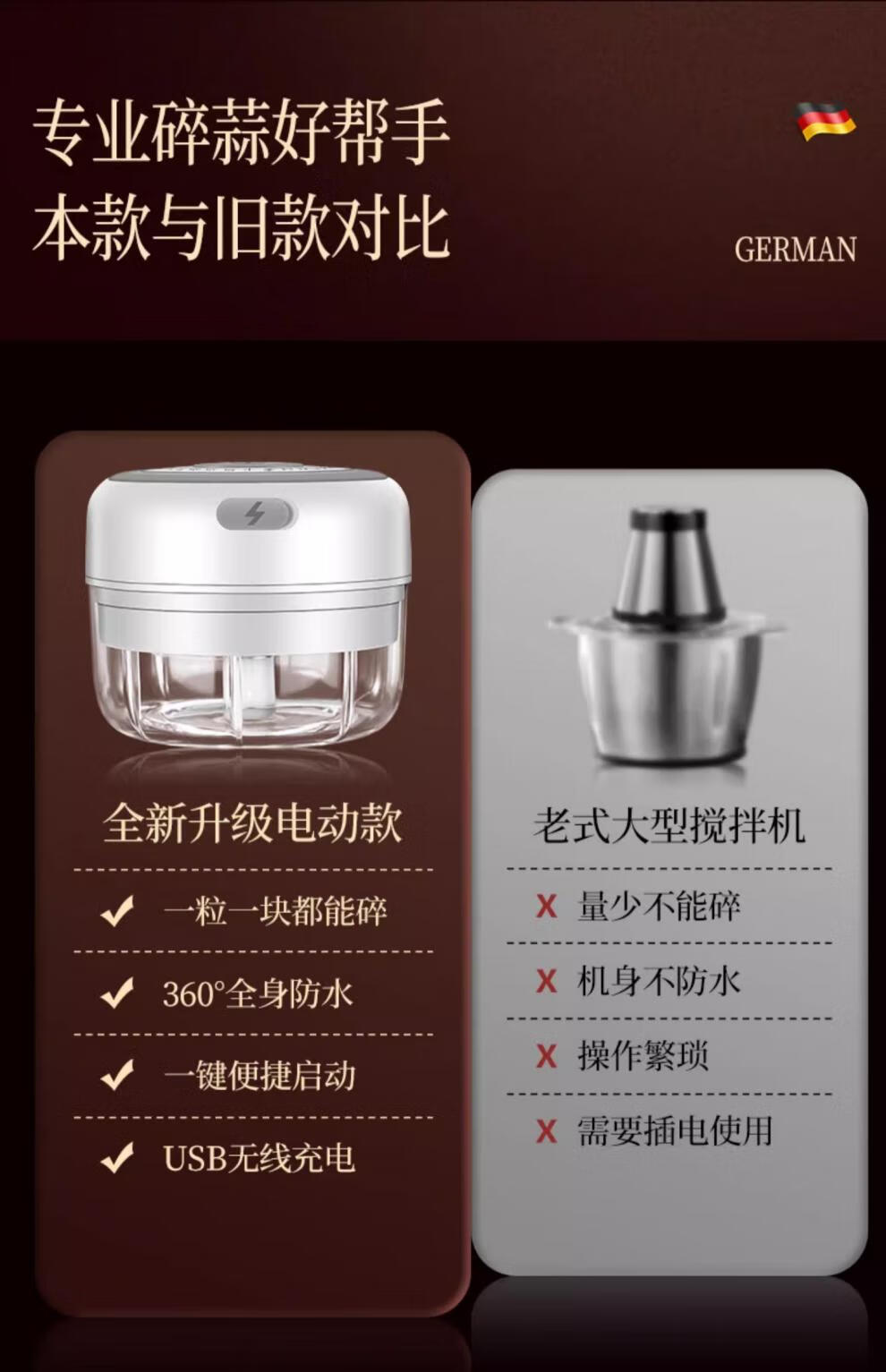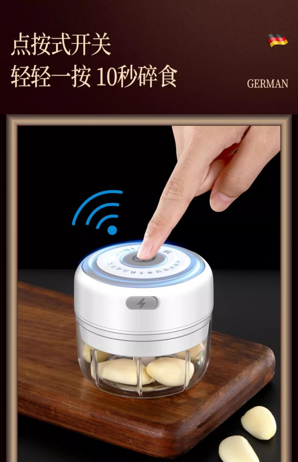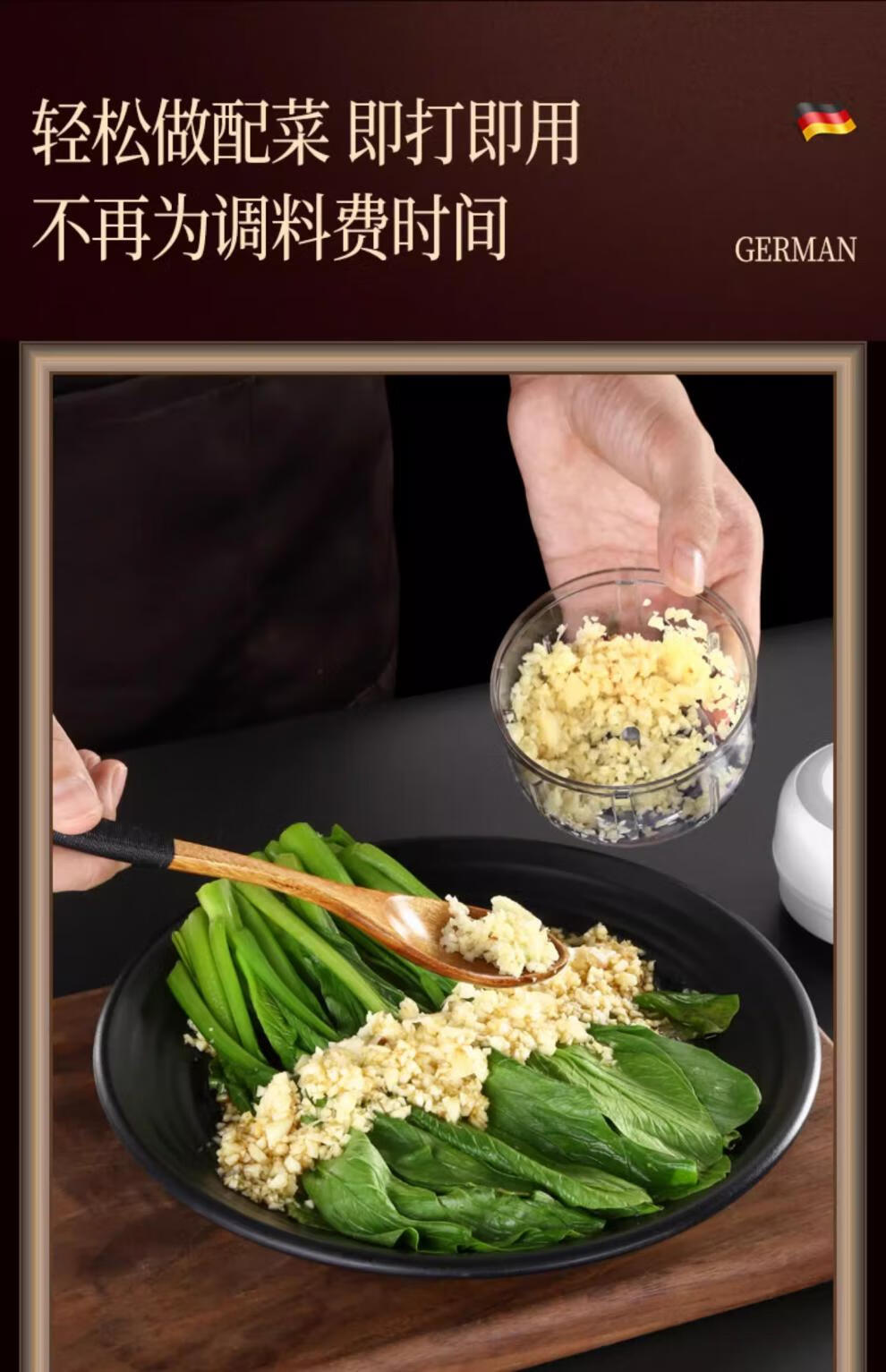 JCZS German electric garlic masher garlic artifact household minced meat pepper grinder mini multi-function enhanced power + high borosilicate glass container green 150ml