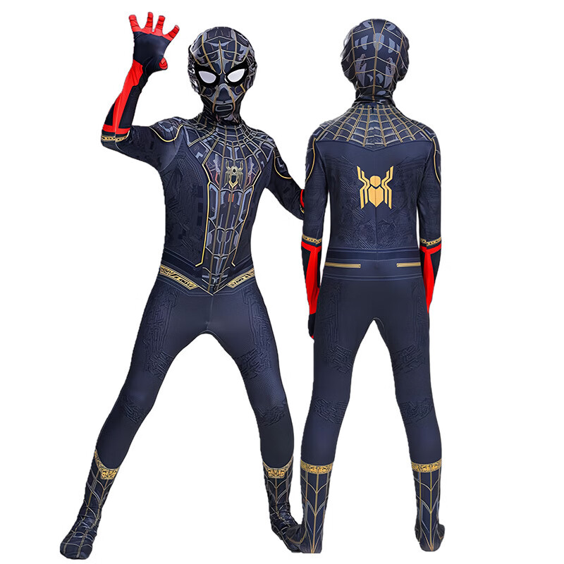 European and American Halloween costumes children's black Spider-Man jumpsuit adult Miles tights co Heroes Expedition mesh style one size 110