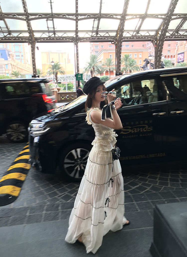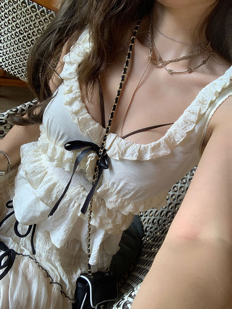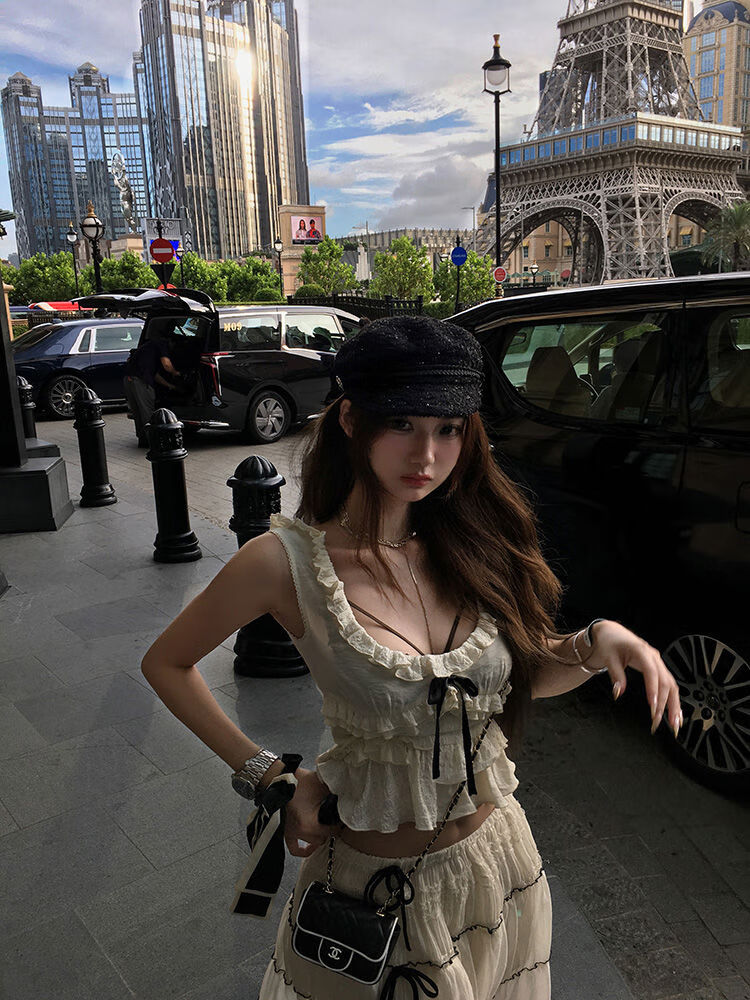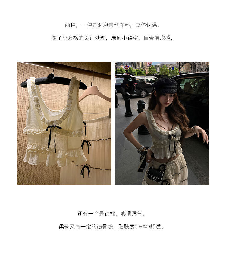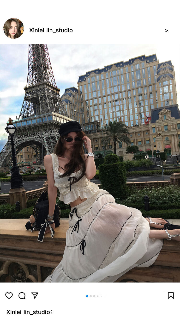 XinleiLin Hepburn's muse design lace splicing small top with bow tie long skirt top second batch 10-12 days hair XS XS