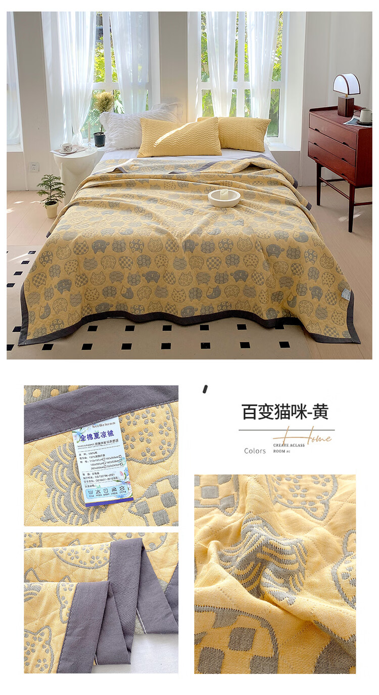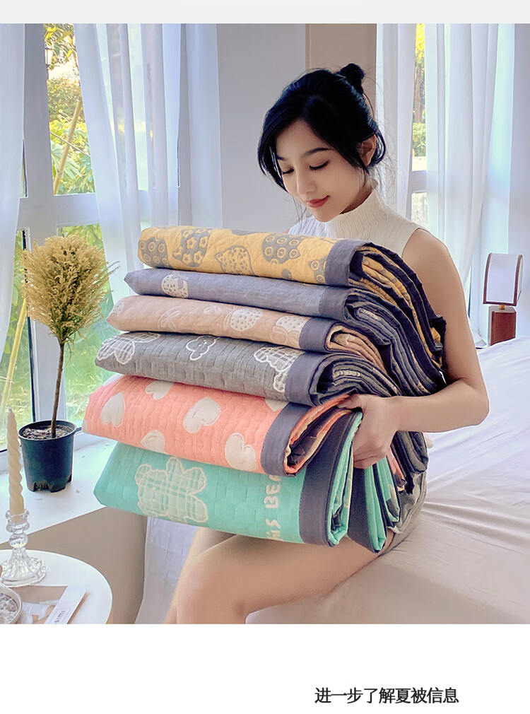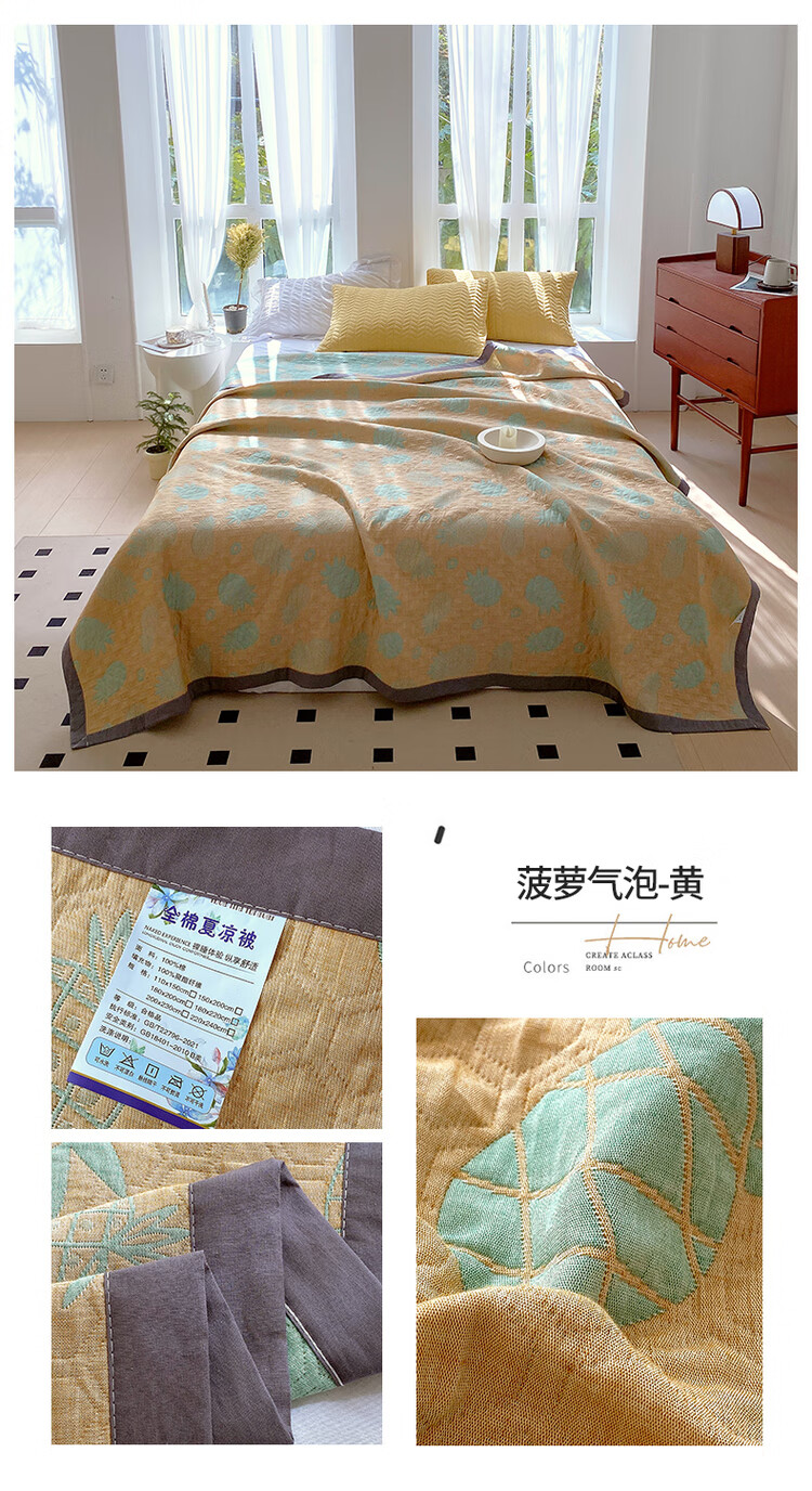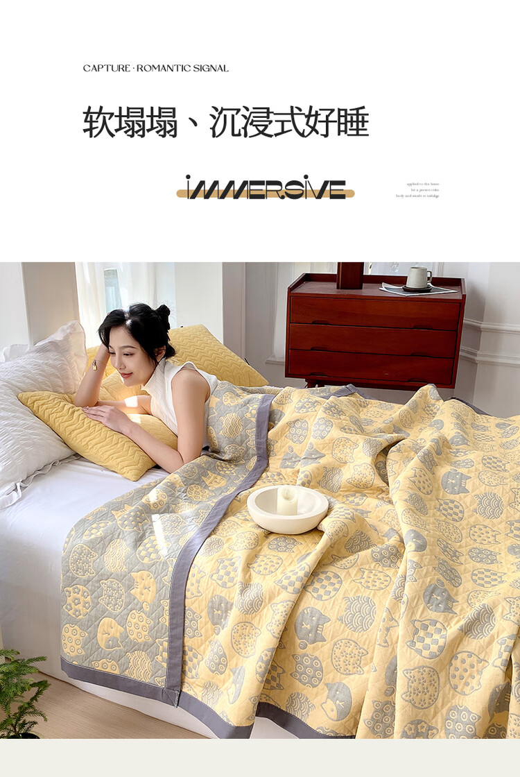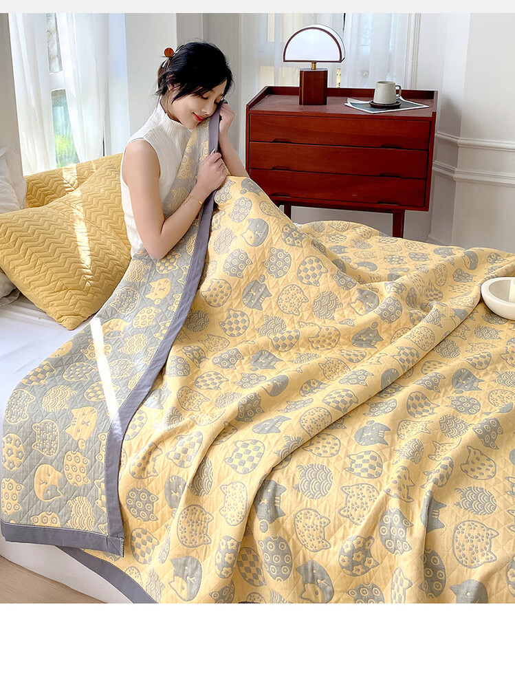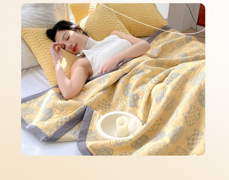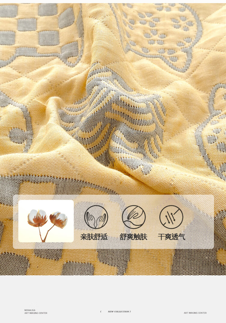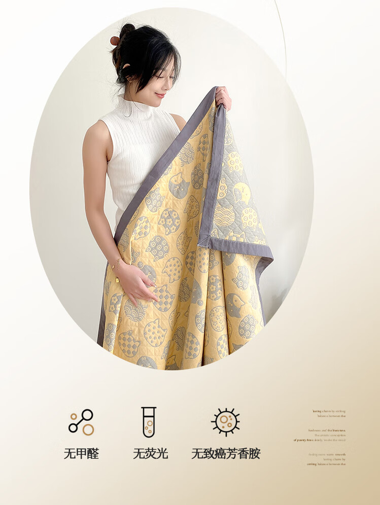 Yusenyi Class A cotton three-layer yarn multi-functional blanket quilt pure cotton summer quilt blanket air-conditioning quilt summer cooling quilt Cotton Lanhuayang Yellow Class A cotton three-layer yarn multi-functional blanket quilt 180x220cm single large quilt