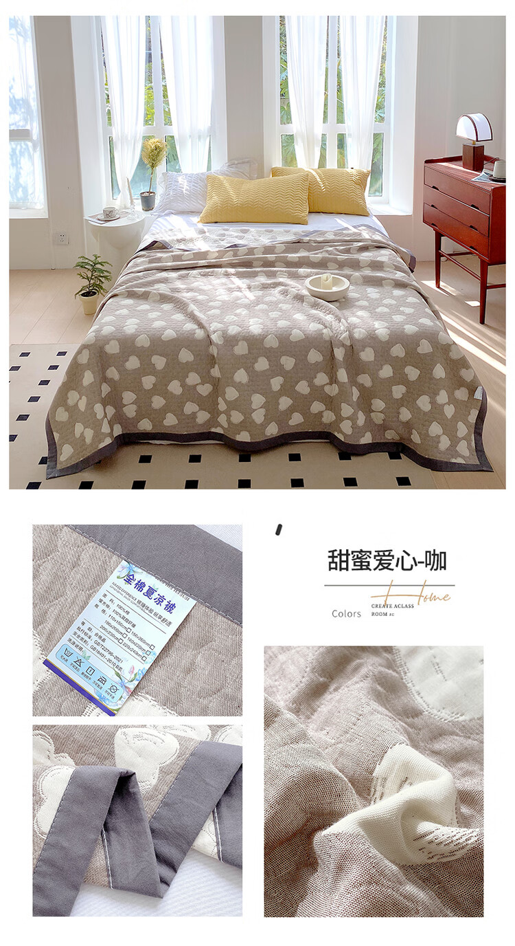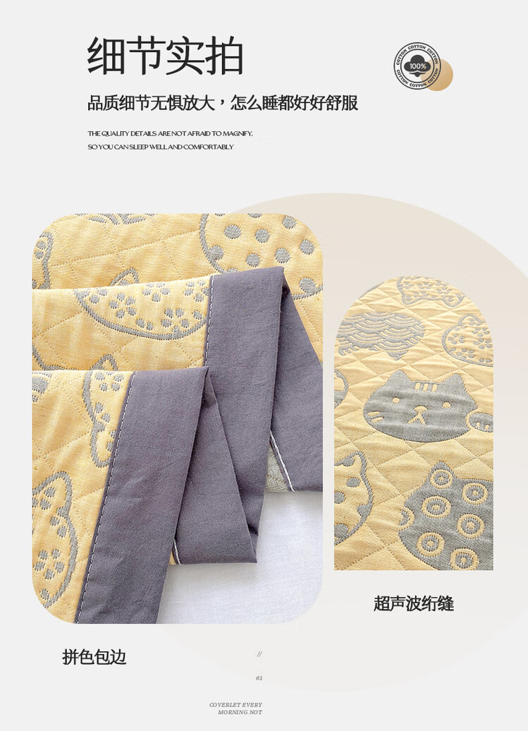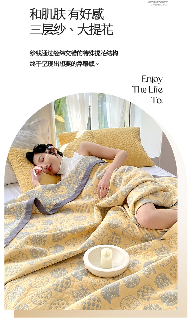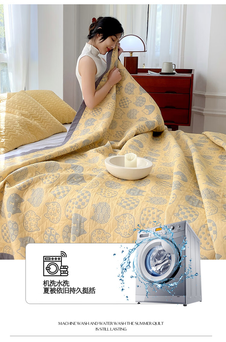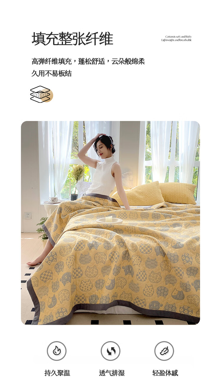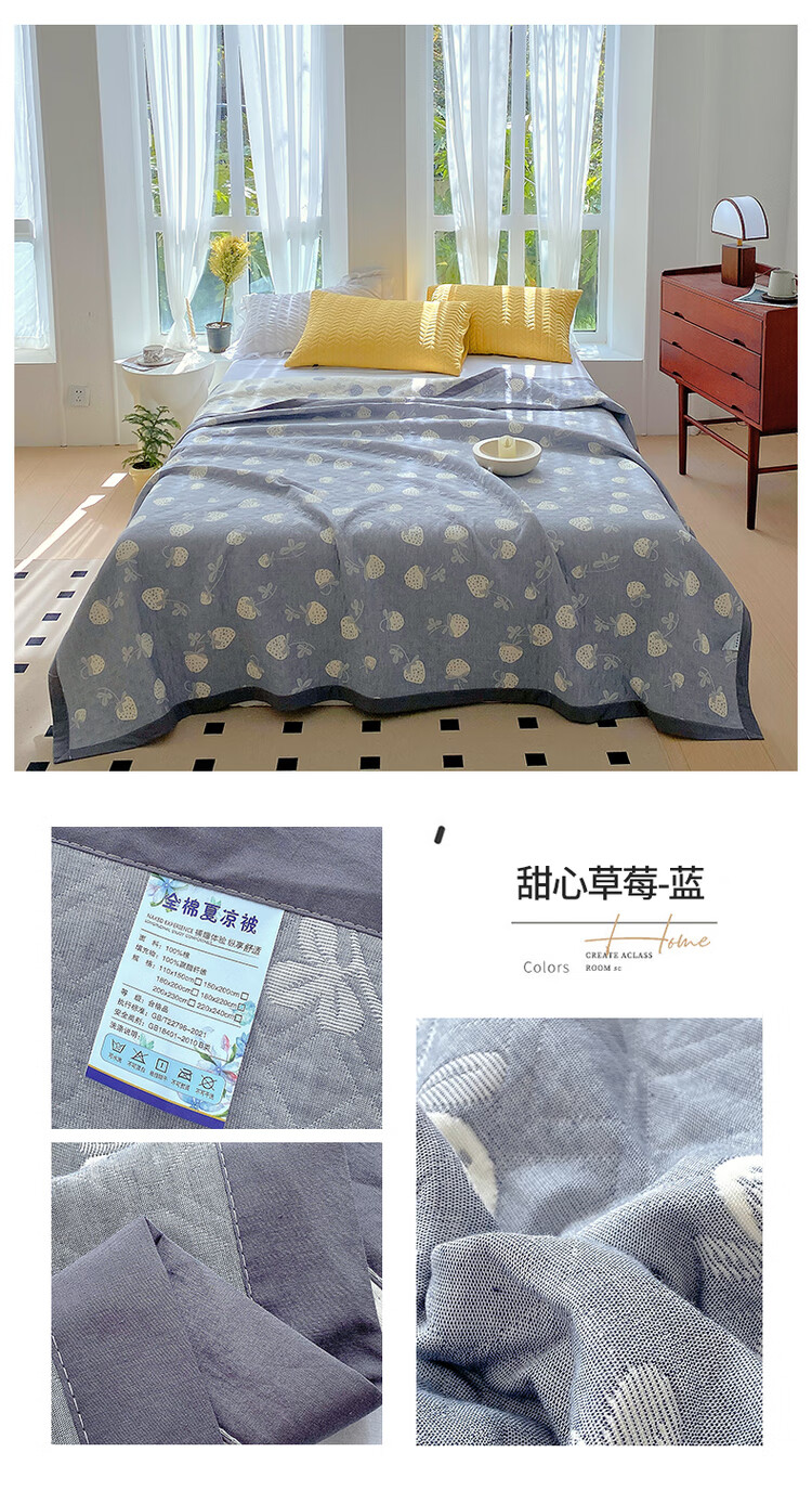 Yusenyi Class A cotton three-layer yarn multi-functional blanket quilt pure cotton summer quilt blanket air-conditioning quilt summer cooling quilt Cotton Lanhuayang Yellow Class A cotton three-layer yarn multi-functional blanket quilt 180x220cm single large quilt