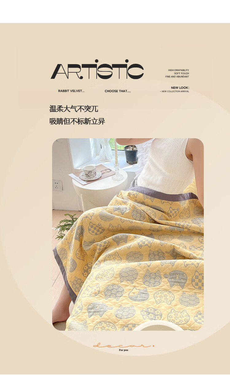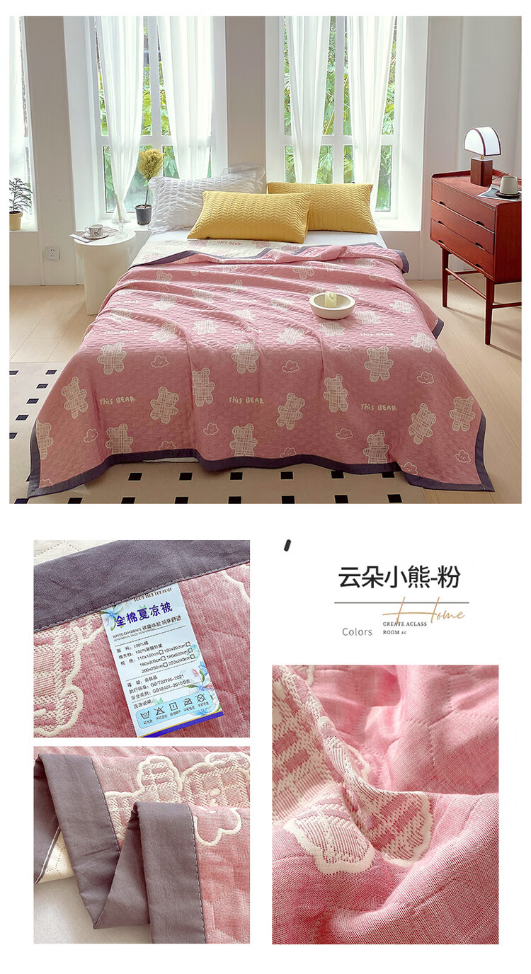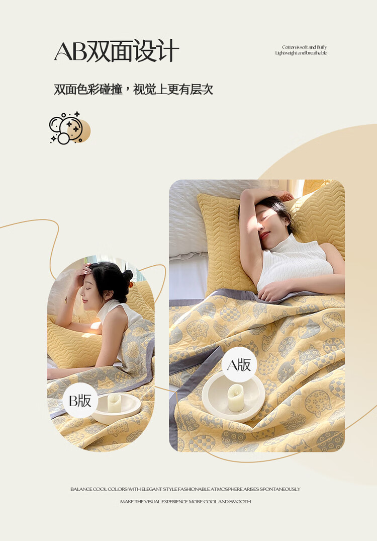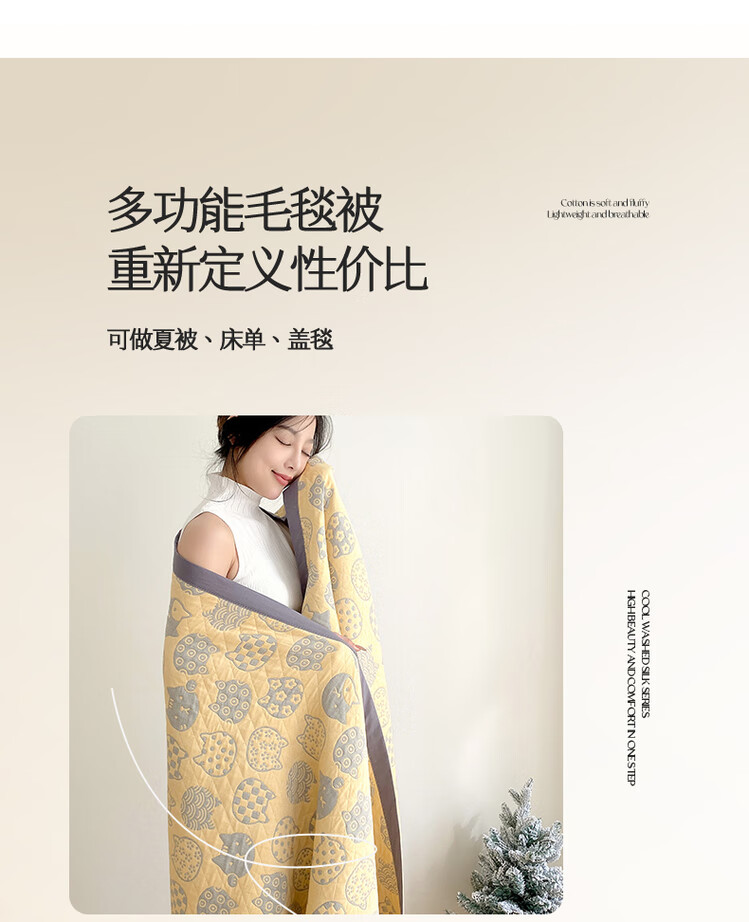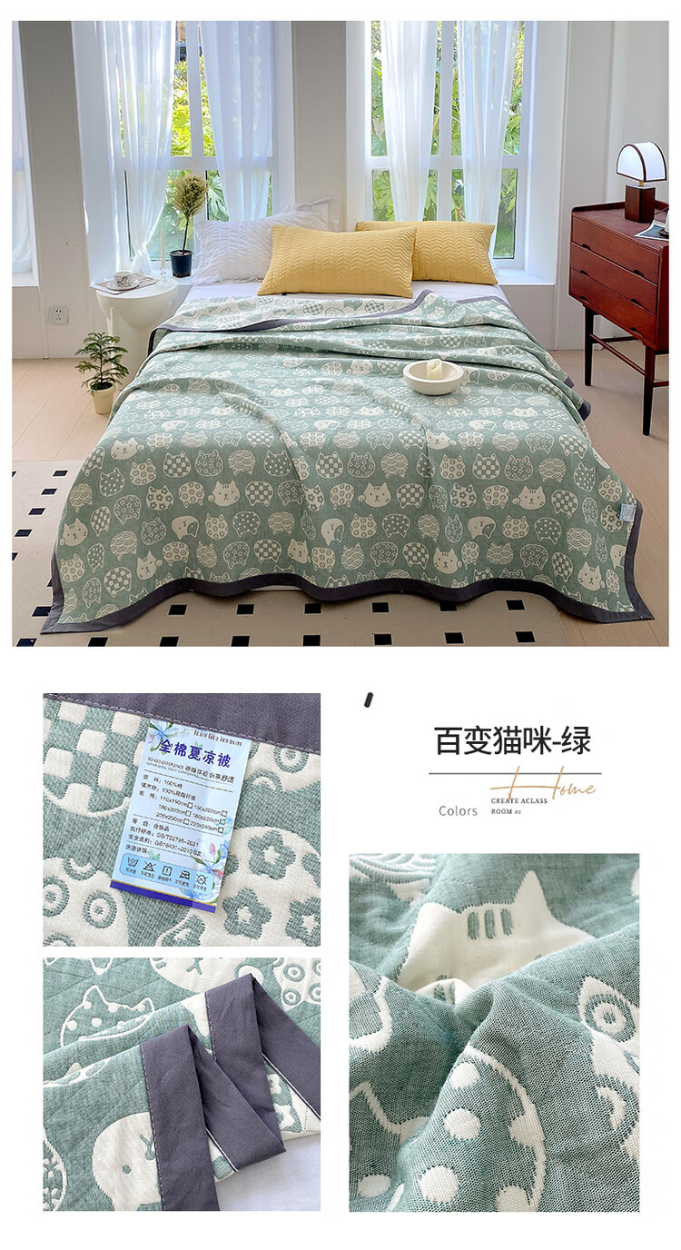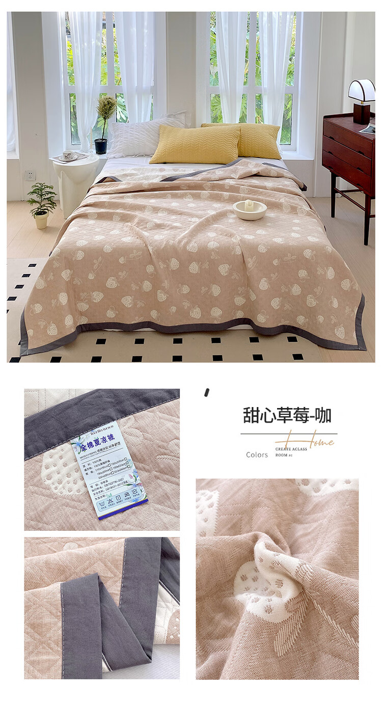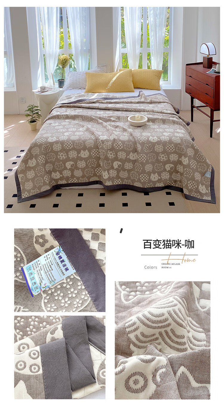 Yusenyi Class A cotton three-layer yarn multi-functional blanket quilt pure cotton summer quilt blanket air-conditioning quilt summer cooling quilt Cotton Lanhuayang Yellow Class A cotton three-layer yarn multi-functional blanket quilt 180x220cm single large quilt