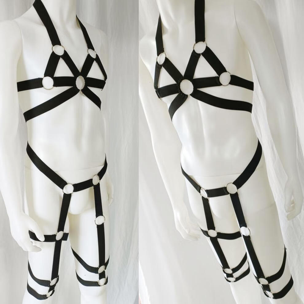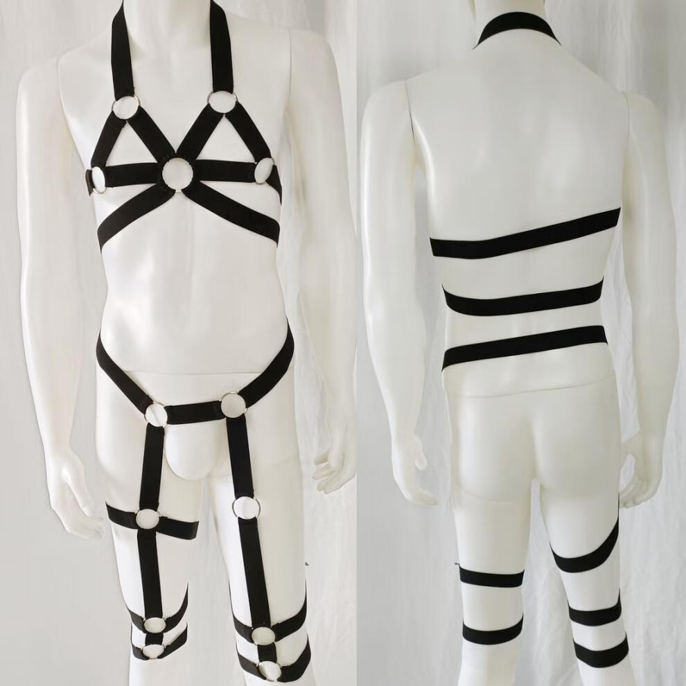 Men's performance clothing for gay men to show their muscles, chest underwear, thong, perverted straps, temptation, men only, white