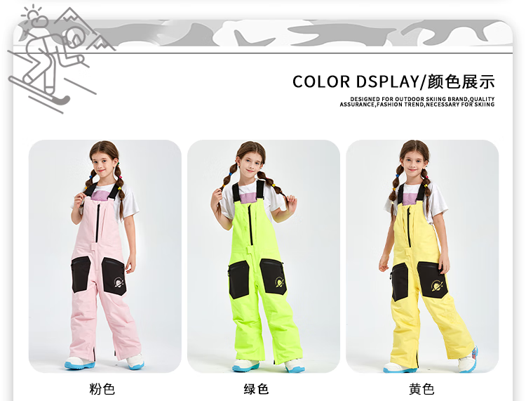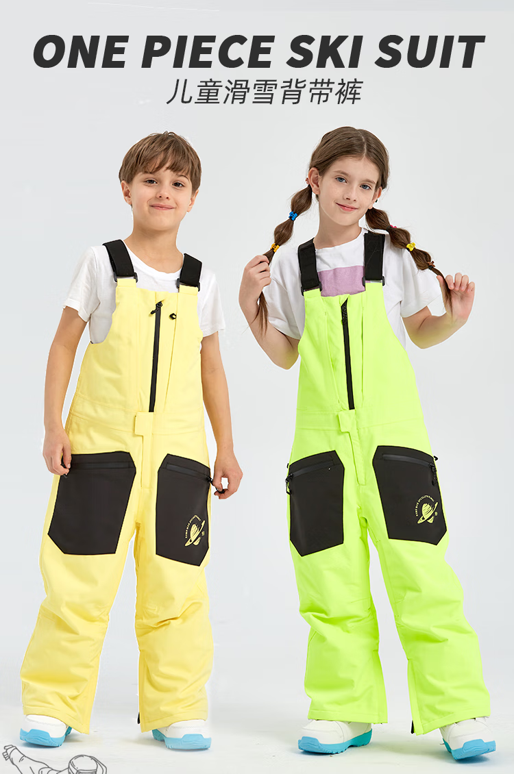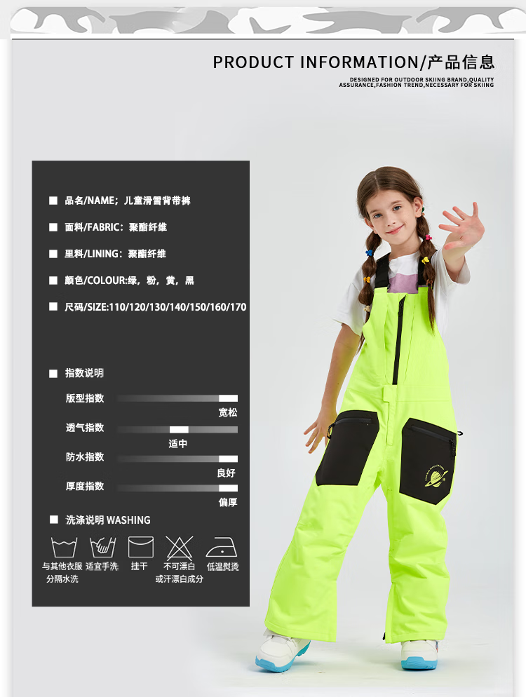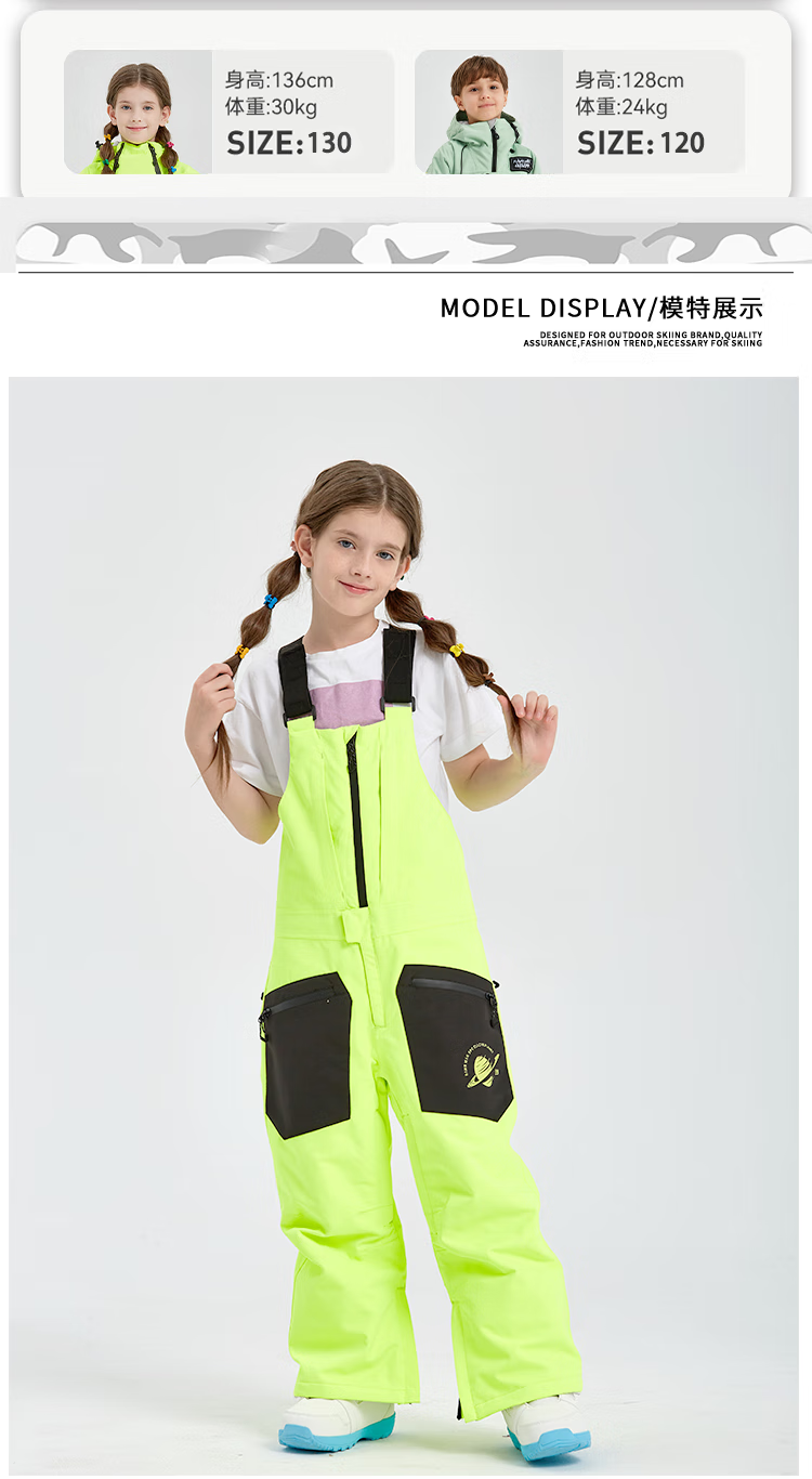 DOOK SNOW Waterproof, Warm and Wear-Resistant Children's Ski Wear for Men and Women Children's Overalls Fluorescent Green (Female) 120cm 120