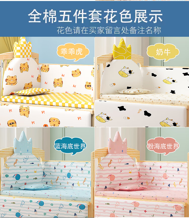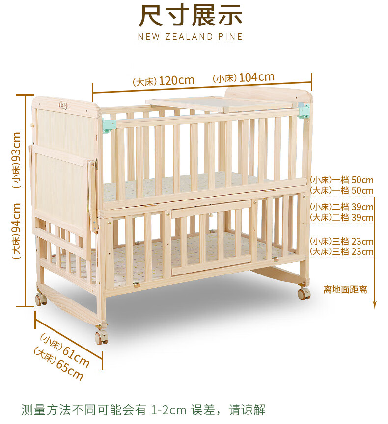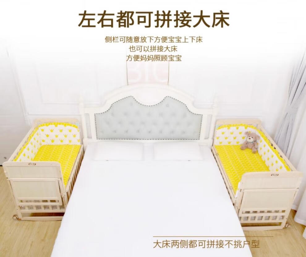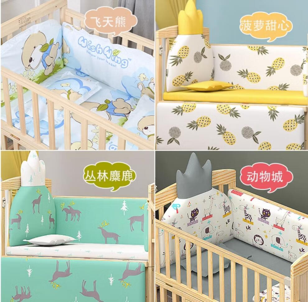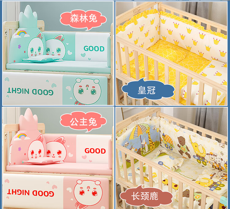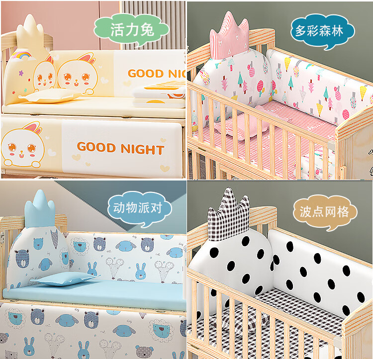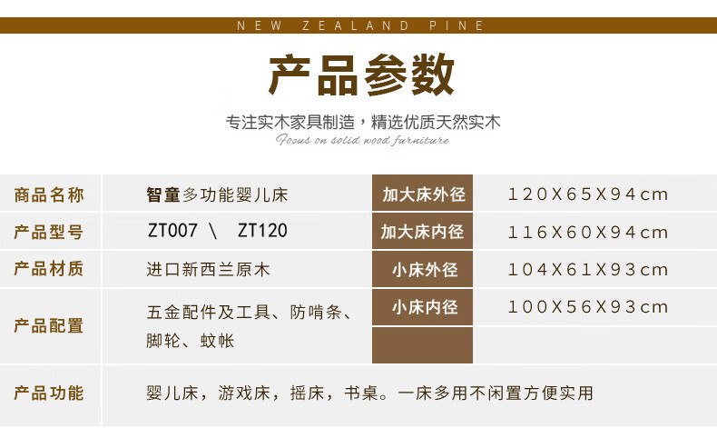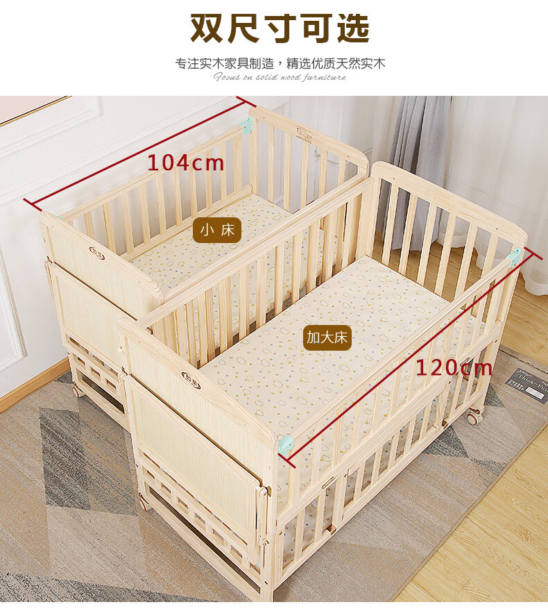 Intelligent pine solid wood liftable crib, simple modern multi-functional crib, brown cushion included and mosquito net included, bare bed, one-time package without shelf, diaper table, mosquito net, others_assembly_other structures