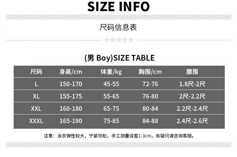 China (cm) 165 / 88-90 170 / 96-98 175 / 108-110 180 / 118-122 185 / 126-130