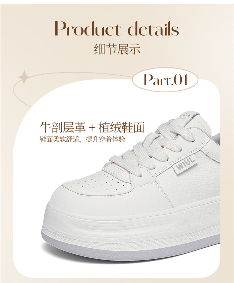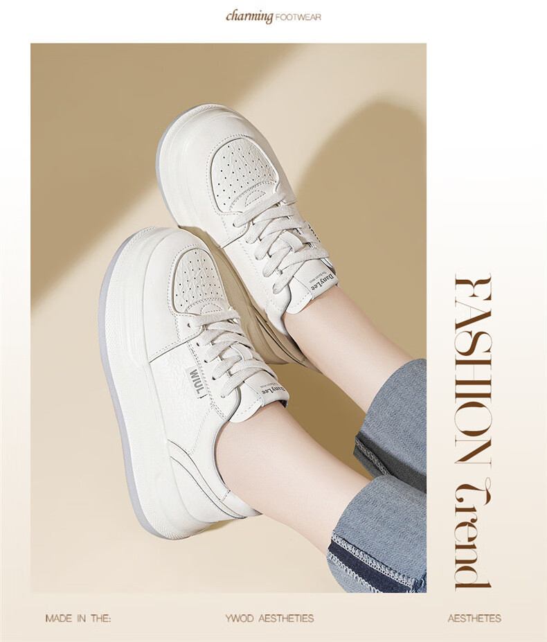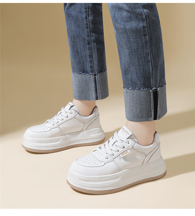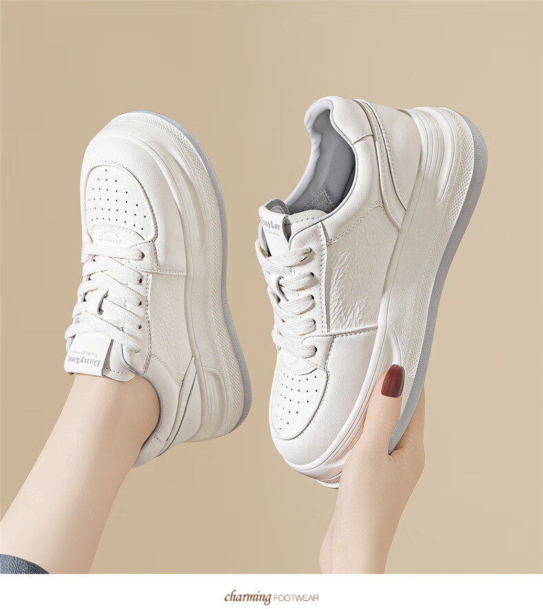 Kangnai spring girls' temperament white shoes, versatile casual 2025 new heightening and velvet sports sneakers 7051 Mi Xing 34
