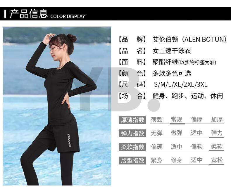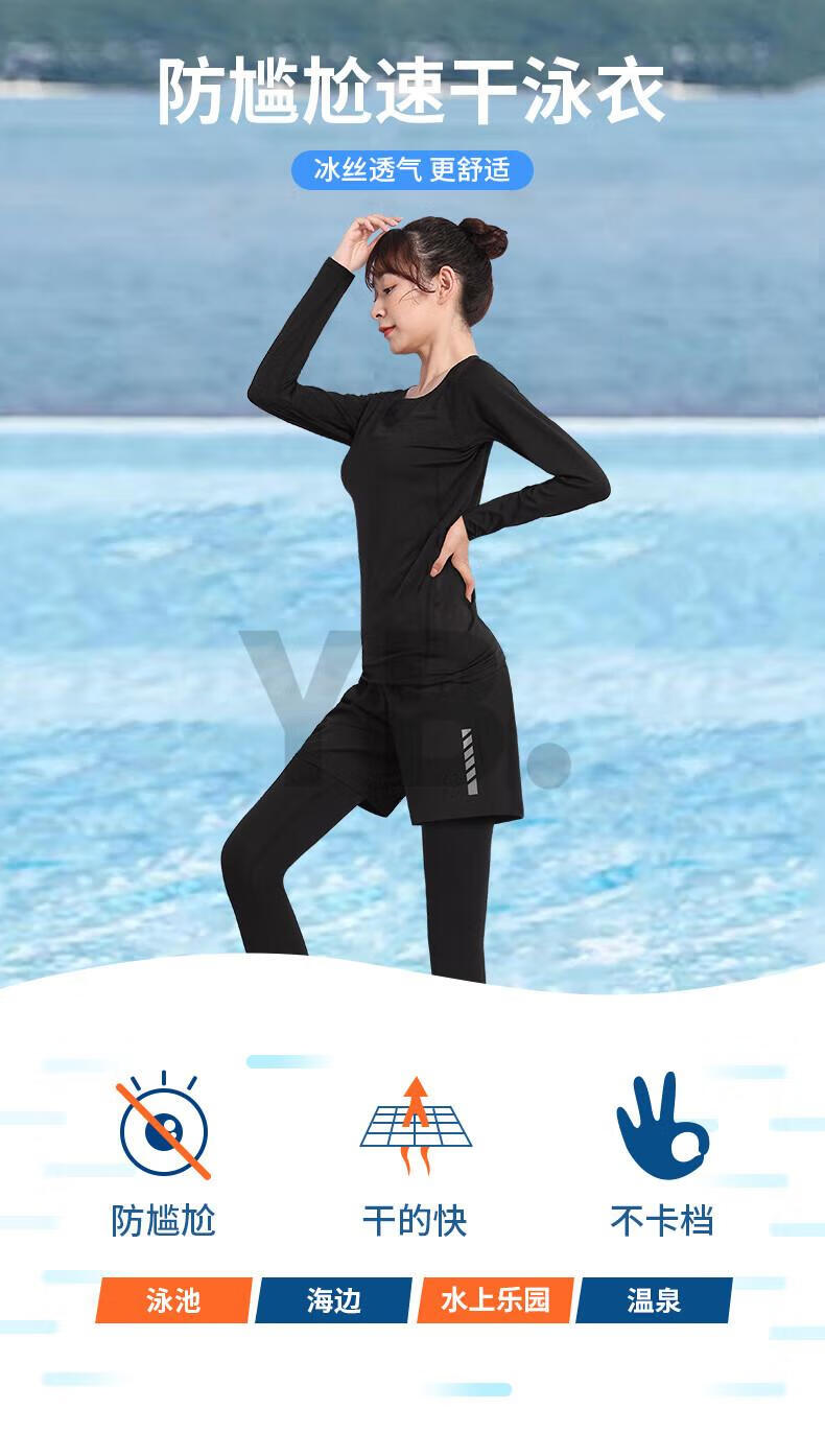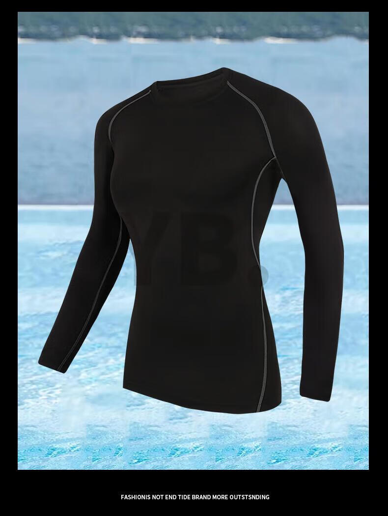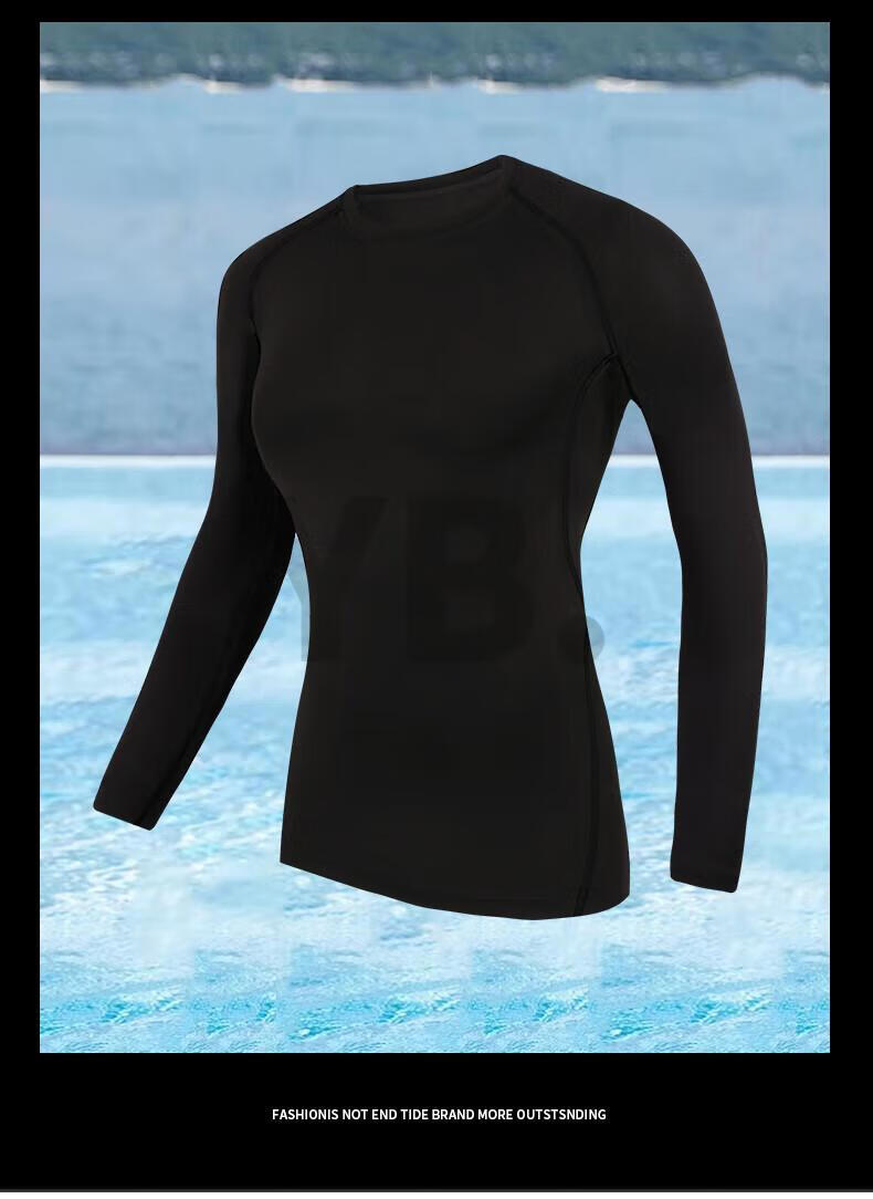 Swimwear Women's Sunscreen Long Sleeve Swim Suit Tight Quick Drying Top Women's Wet Suit Surfing Tight Three Piece Suit Black Sunscreen Quick Dry No Breast Pad S S80-100Jin Jin is equal to 0.5kg