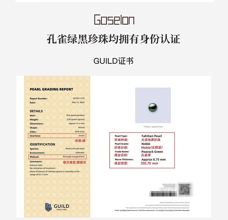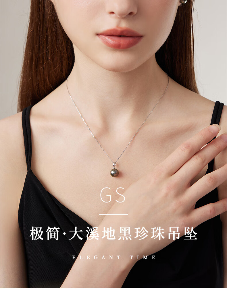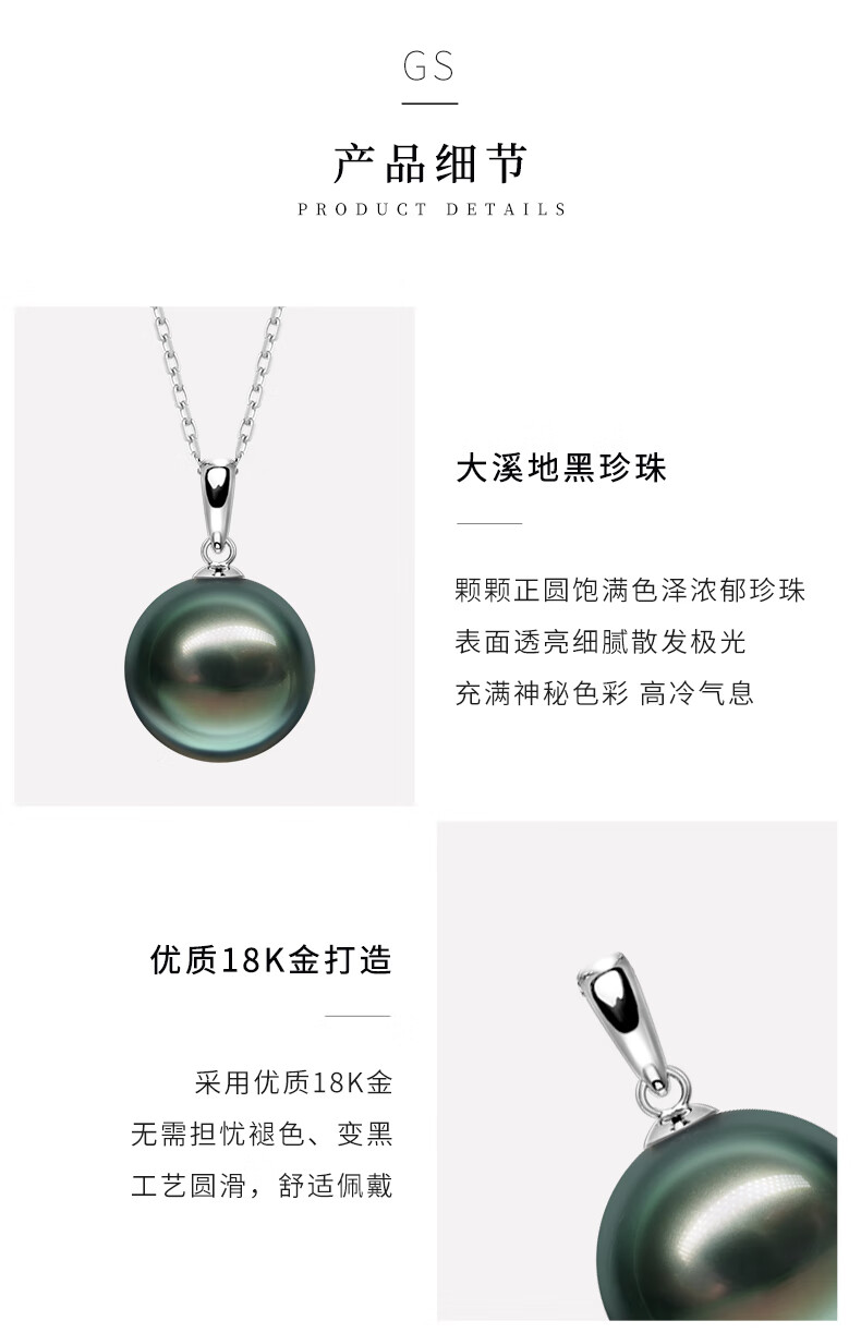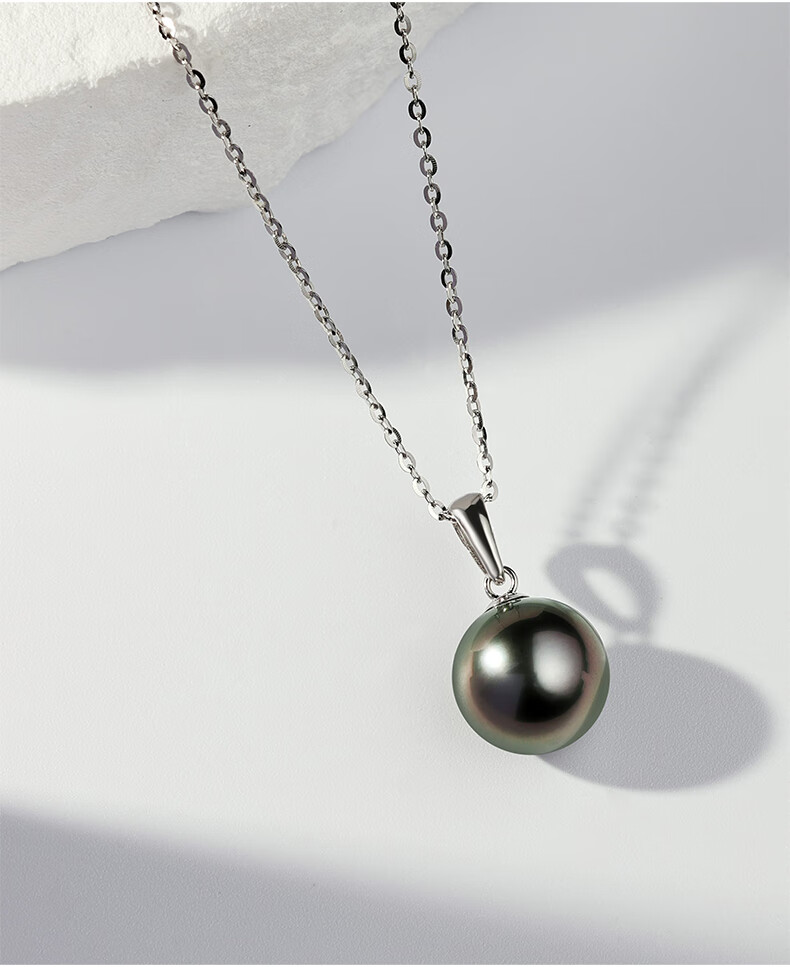Qianpei Black Pearl Pendant Necklace Seawater Pearl Clavicle Necklace Temperament Jewelry S-Class Perfect Round Flawless + Silver Chain 11-12mmx45cm