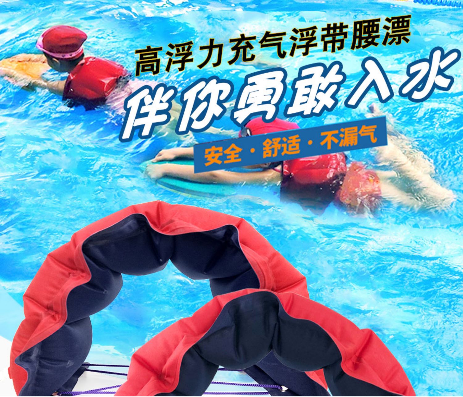 Zailu Floating Waist Beginner Swimming Equipment Children's Floating Sleeves Adult Inflatable Float Inflatable Buoyancy Strip Belt Rope Float Belt + Water Sleeve + Nose Clip Earplugs + Inflator