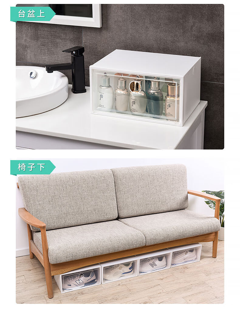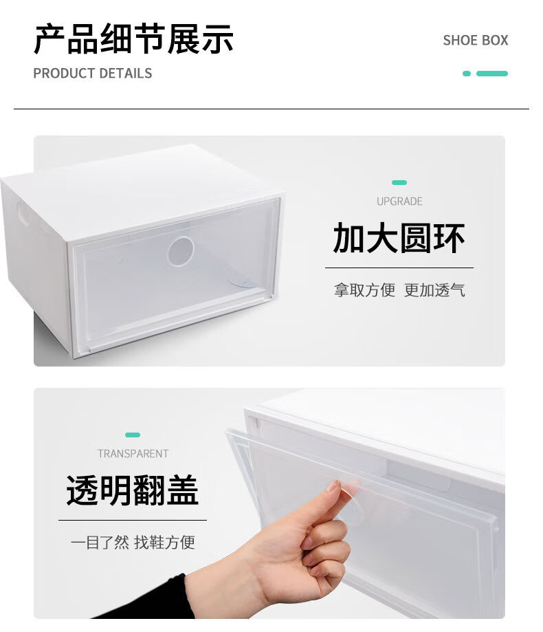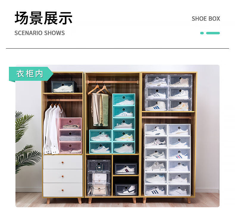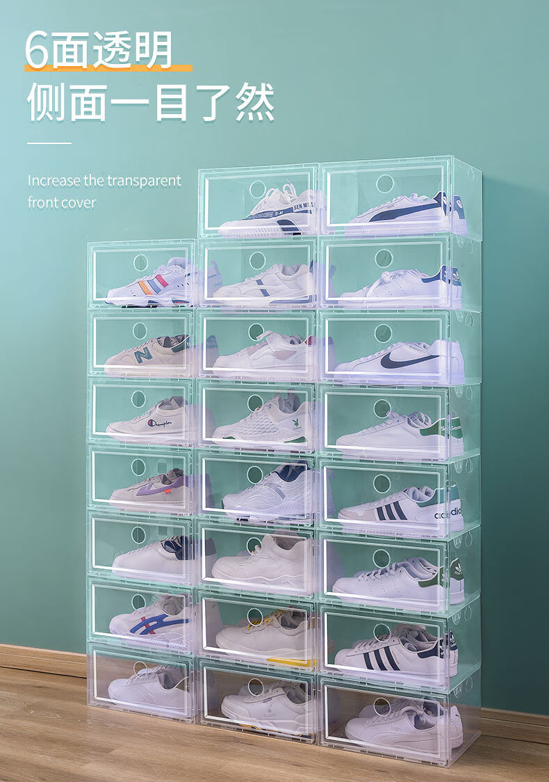 Pack of 20 thickened shoe box storage box, transparent drawer-type shoe artifact, space-saving plastic shoe cabinet, pull-out type 0x0x0cm, hard back cover with stronger load-bearing capacity, 46 points, 5 yards, transparent squares, 18 pieces in total