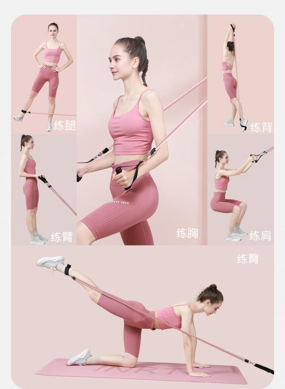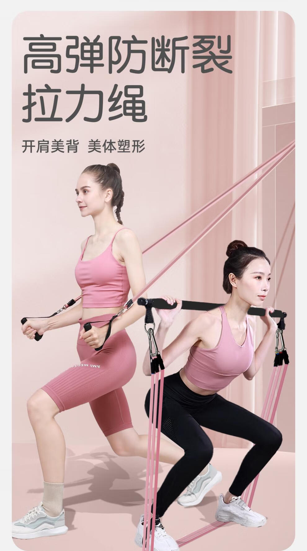 Yingruite New Product Tension Rope Home Fitness Elastic Belt Women's Elastic Rope Door Hanging Double Eleven Professional + Pilates Bar 14-piece Set Upgraded Anti-Break 180