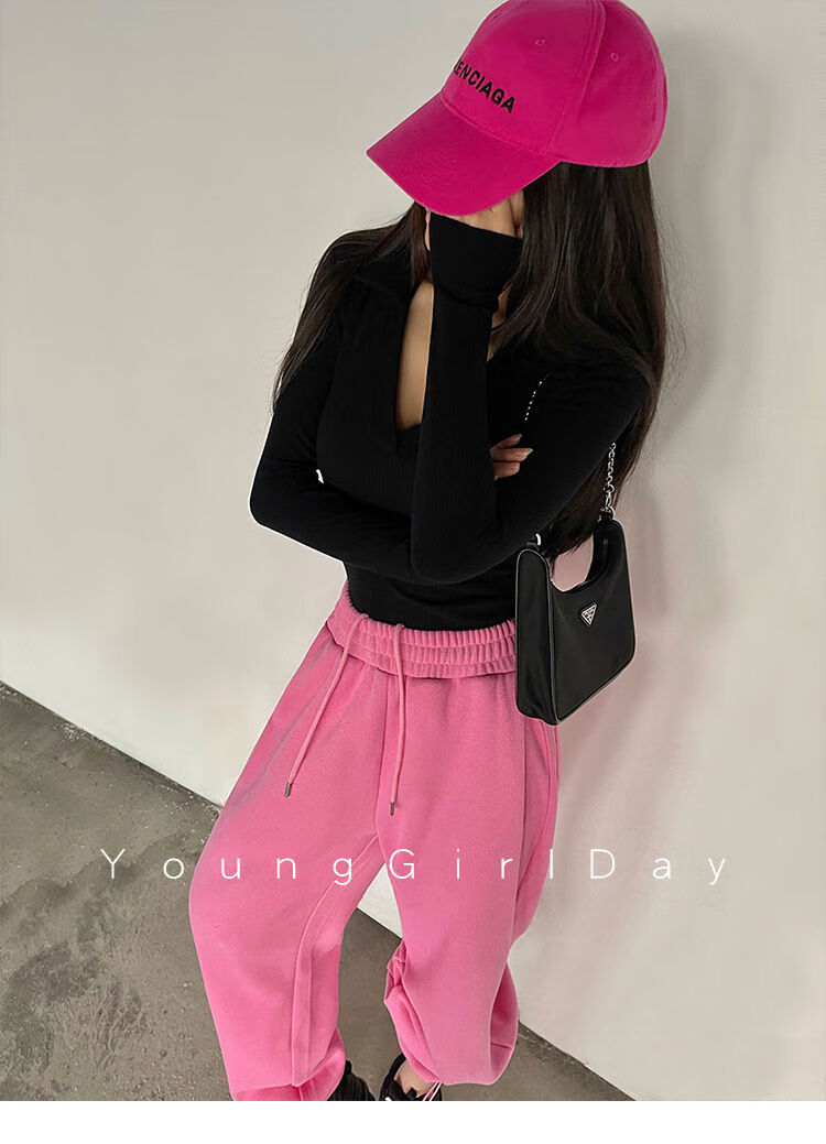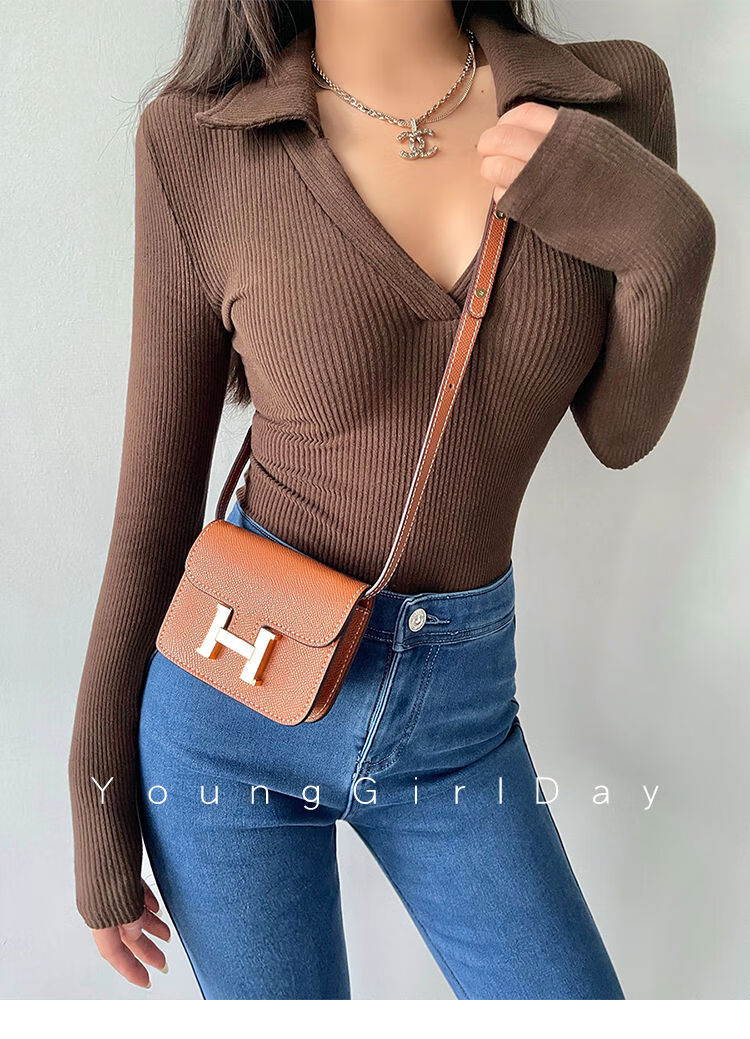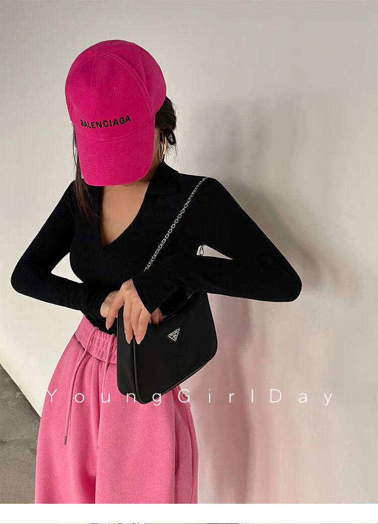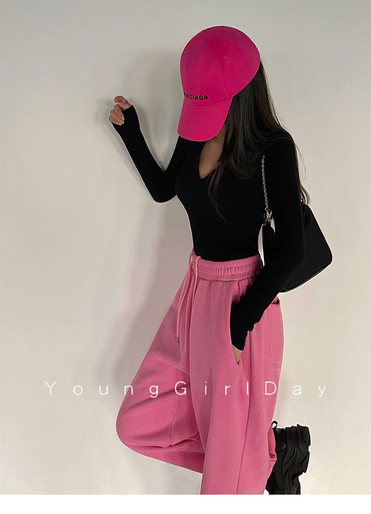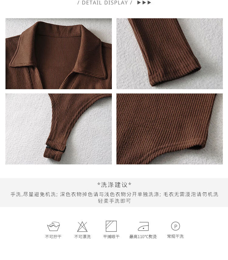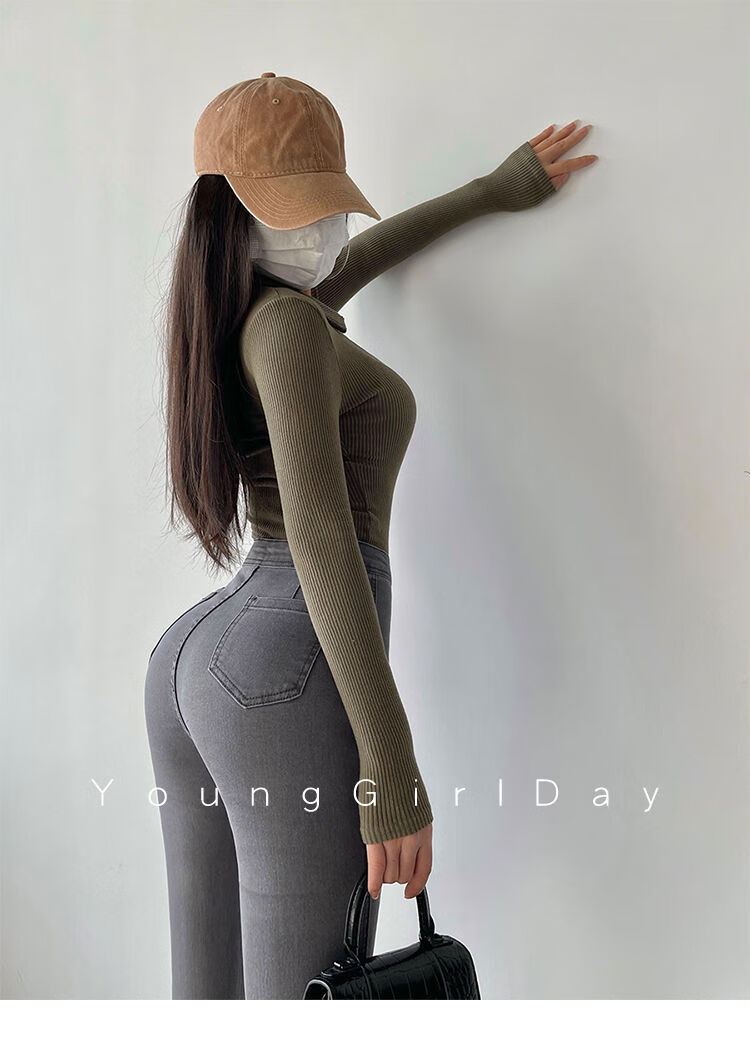 YoungGirlDay European and American hot girls sexy V-neck elastic tight slimming long-sleeved bottoming T-shirt jumpsuit top baby blue autumn and winter brushed version regular style S S