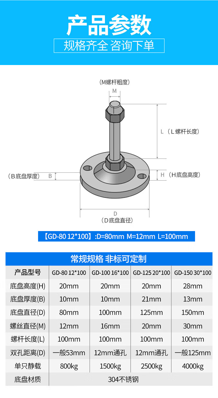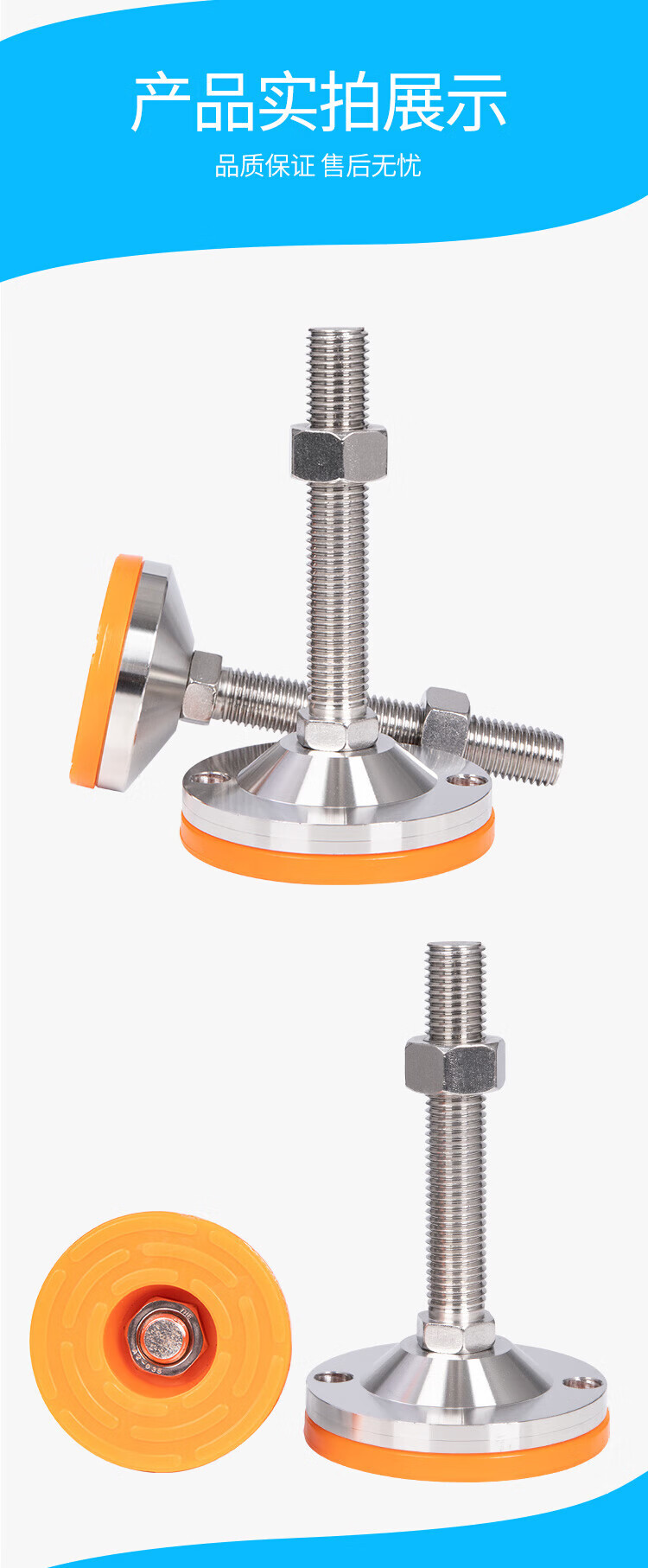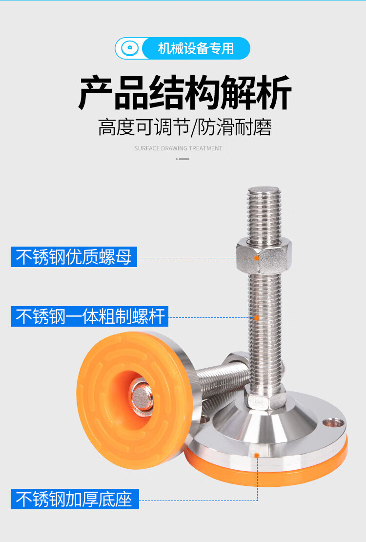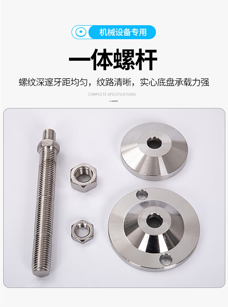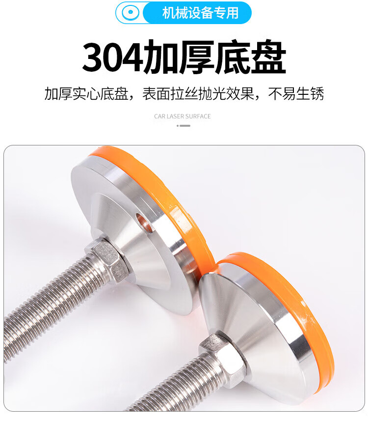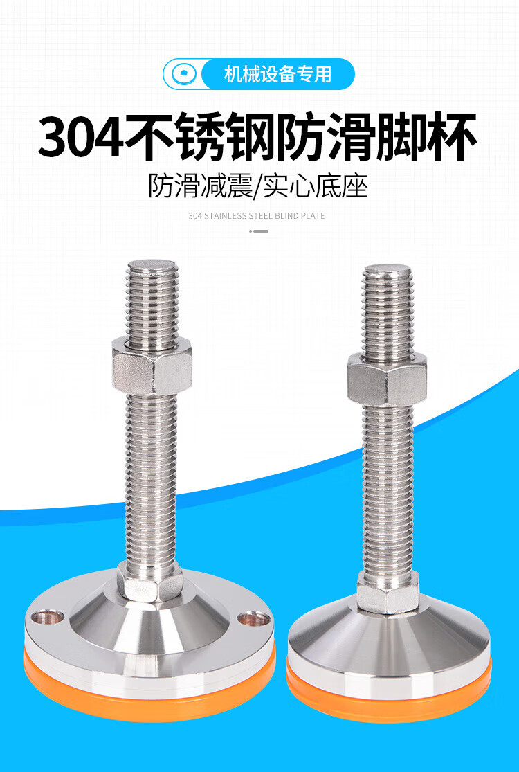He Jian Gong 304 stainless steel foot cup fixed anchor screw heavy-duty anti-slip shock-absorbing adjustable support foot pad m12m16m20 D80-M20*200 yellow pad