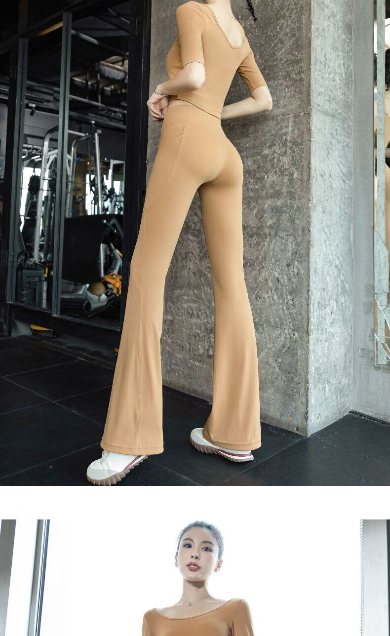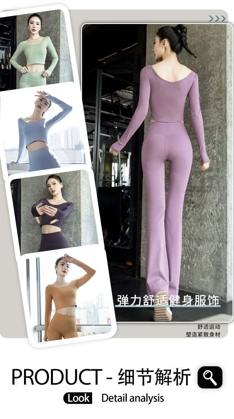 NAOISKEY Naoski yoga suit for women in autumn and winter new style running sports fitness long-sleeved Pilates training top single piece long-sleeved chocolate color does not include chest pad S recommended 80-95 Jin Jin equals 0.5 kg