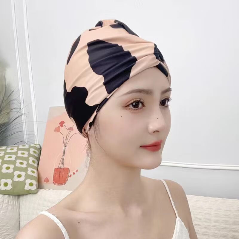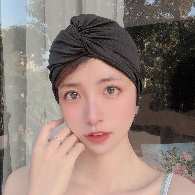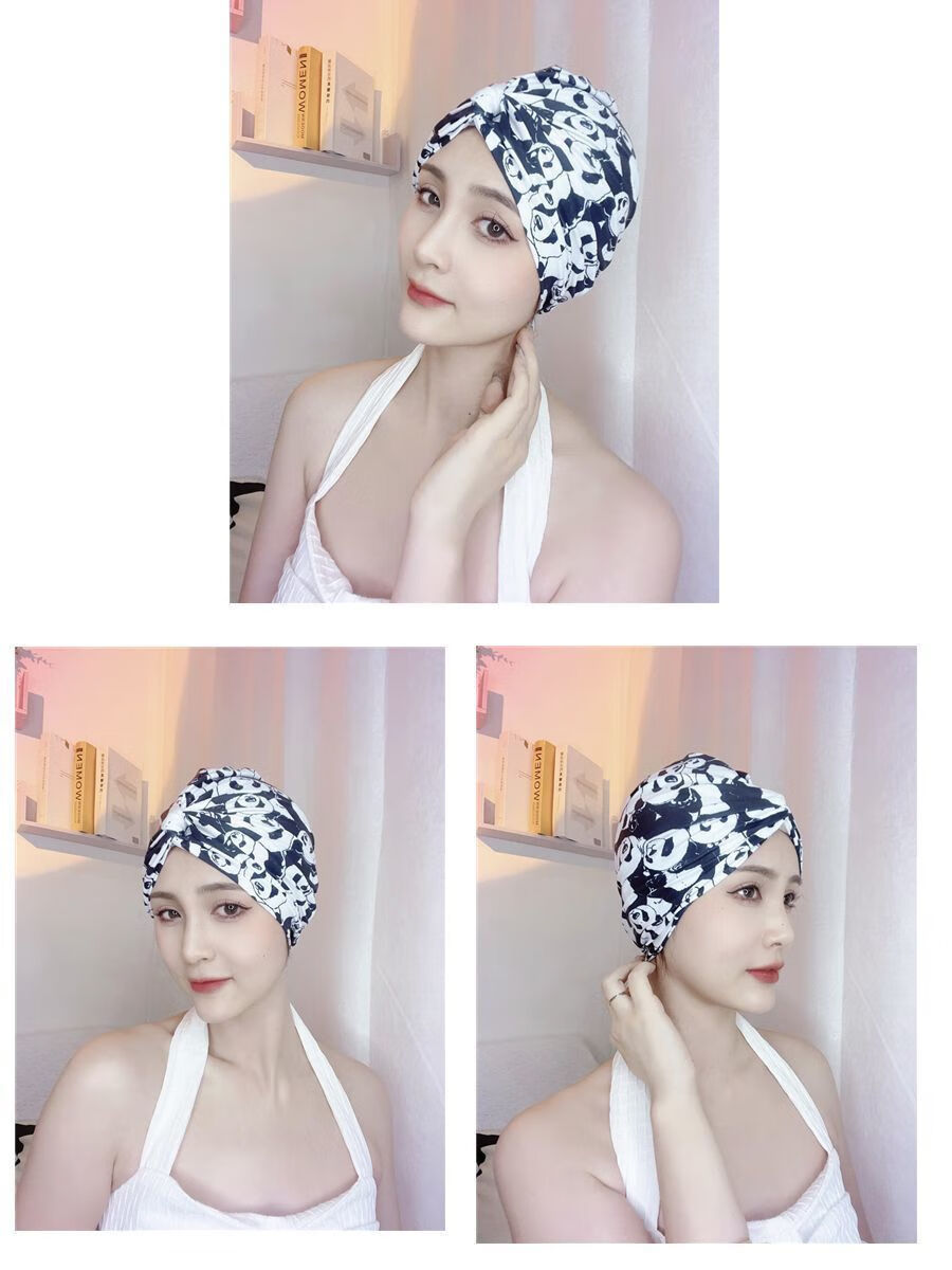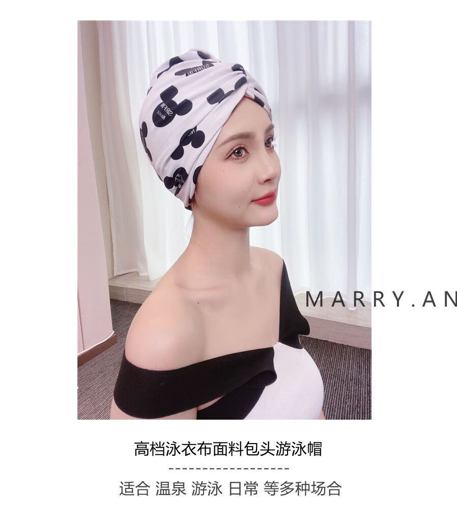 Zailu long and short hair, fashionable and cute ear-protecting fabric swimming cap, good-looking, hot spring swimming cap for women with small face, 2001 black Mickey hat + nose clip earplugs