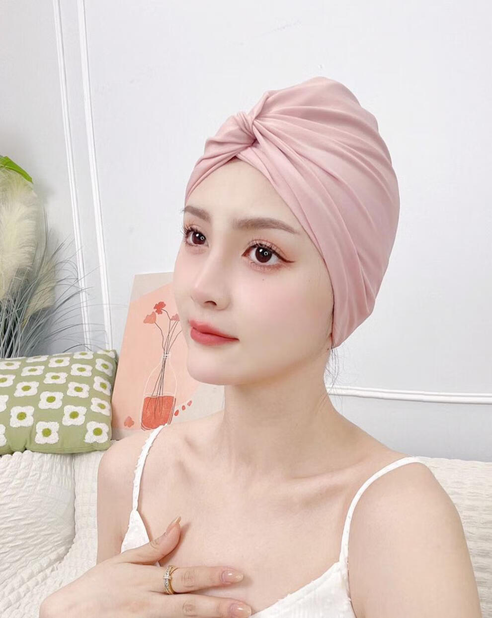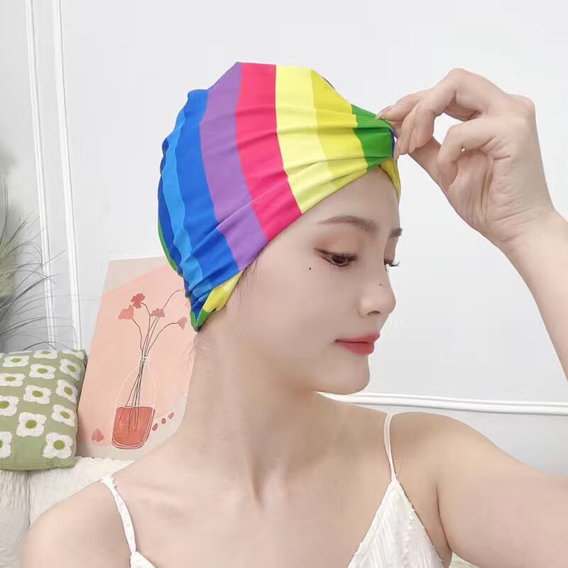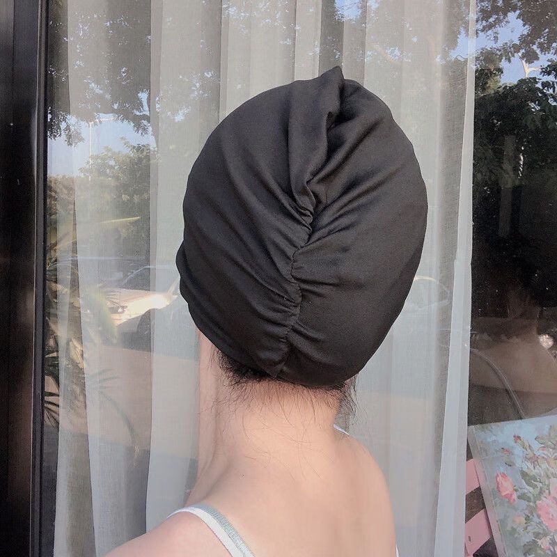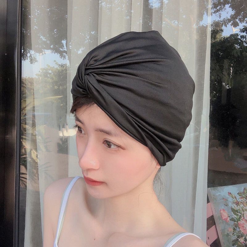 Zailu long and short hair, fashionable and cute ear-protecting fabric swimming cap, good-looking, hot spring swimming cap for women with small face, 2001 black Mickey hat + nose clip earplugs