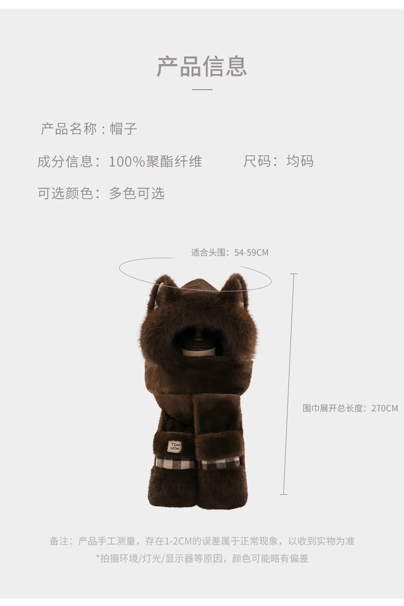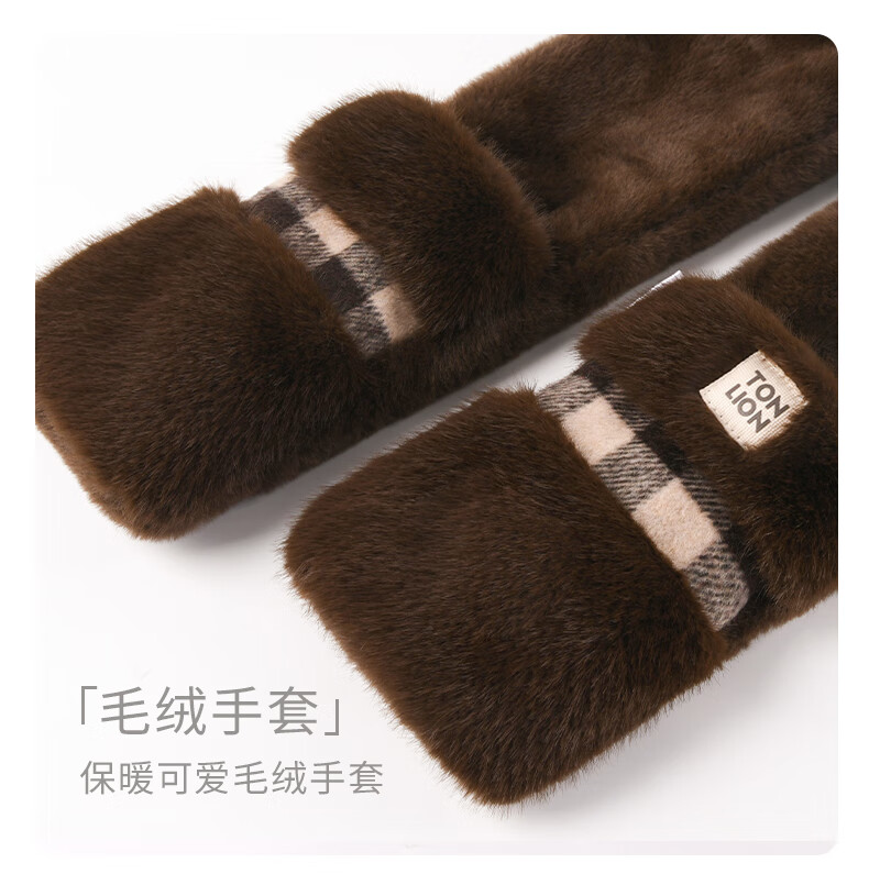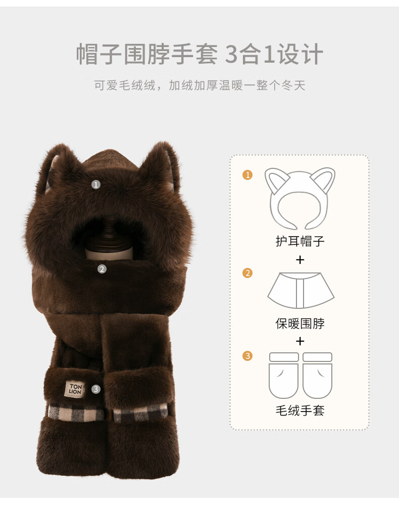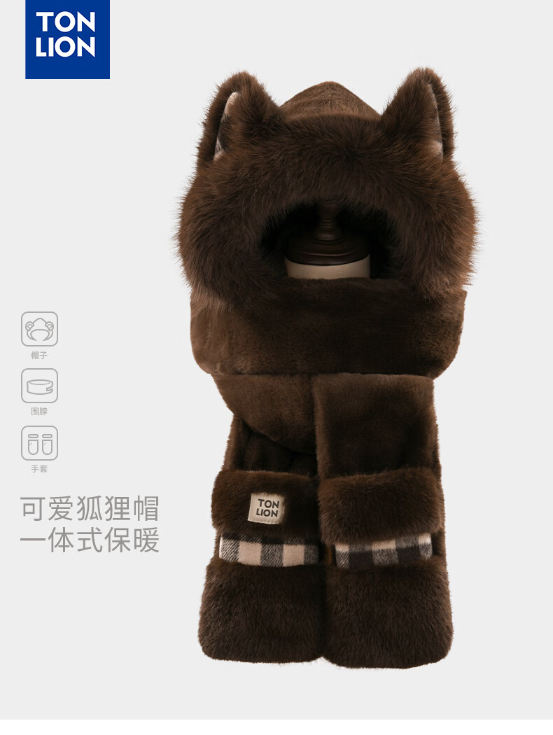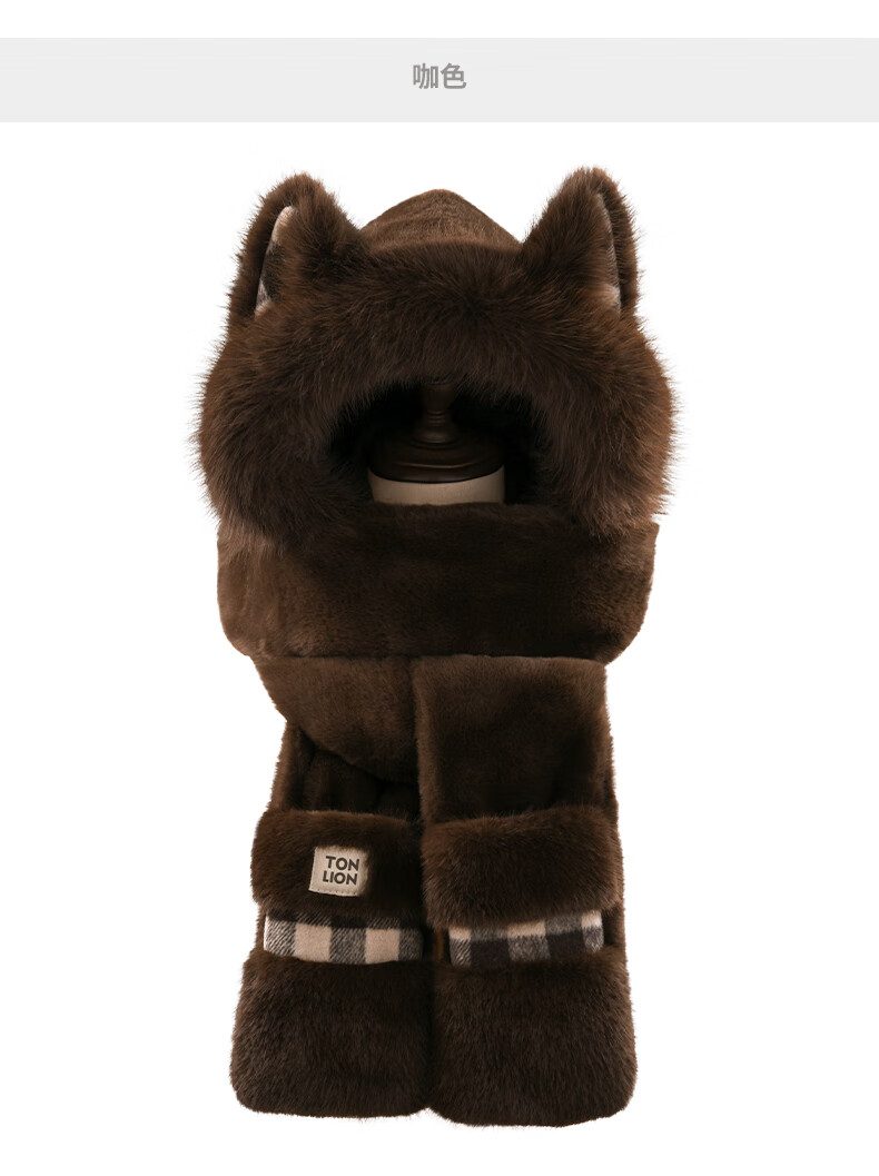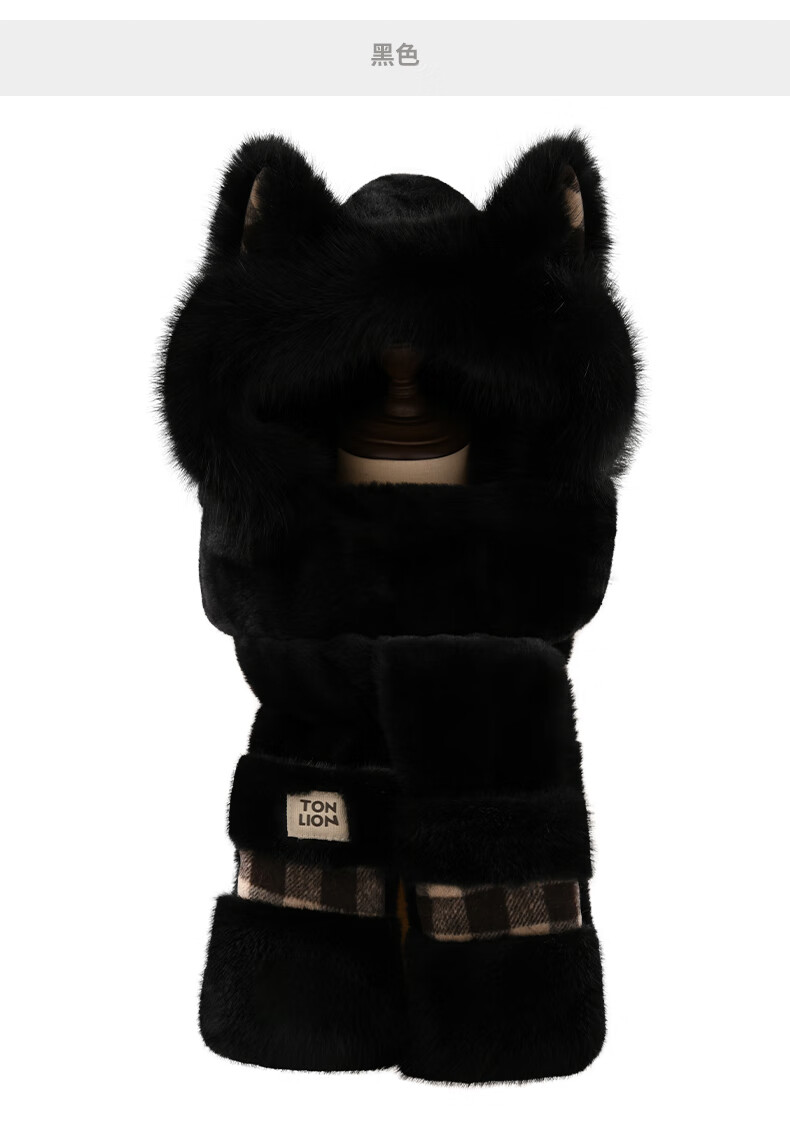 TonLion thickened plush hat and scarf all-in-one men's winter student outdoor cycling scarf to prevent cold and warm Lei Feng hat for women black